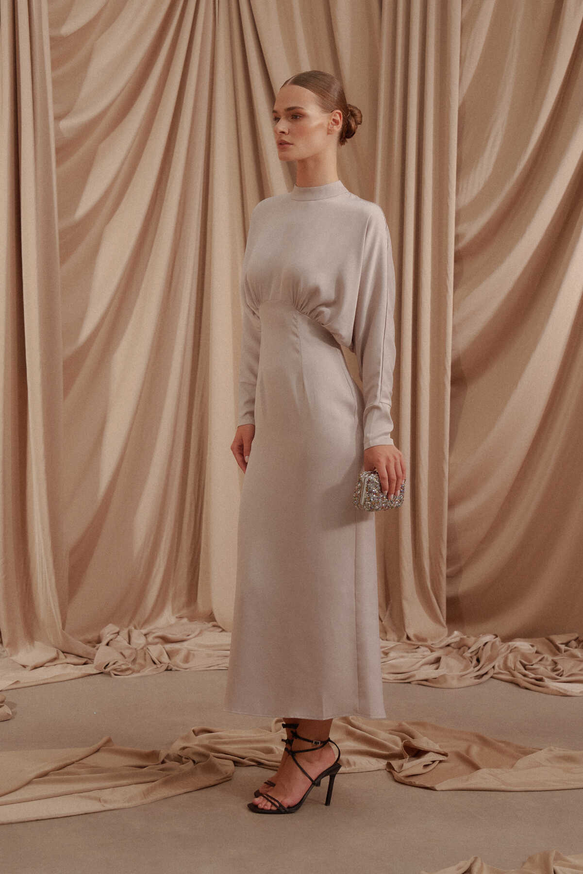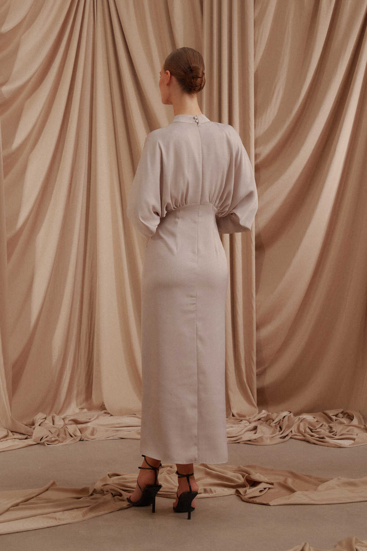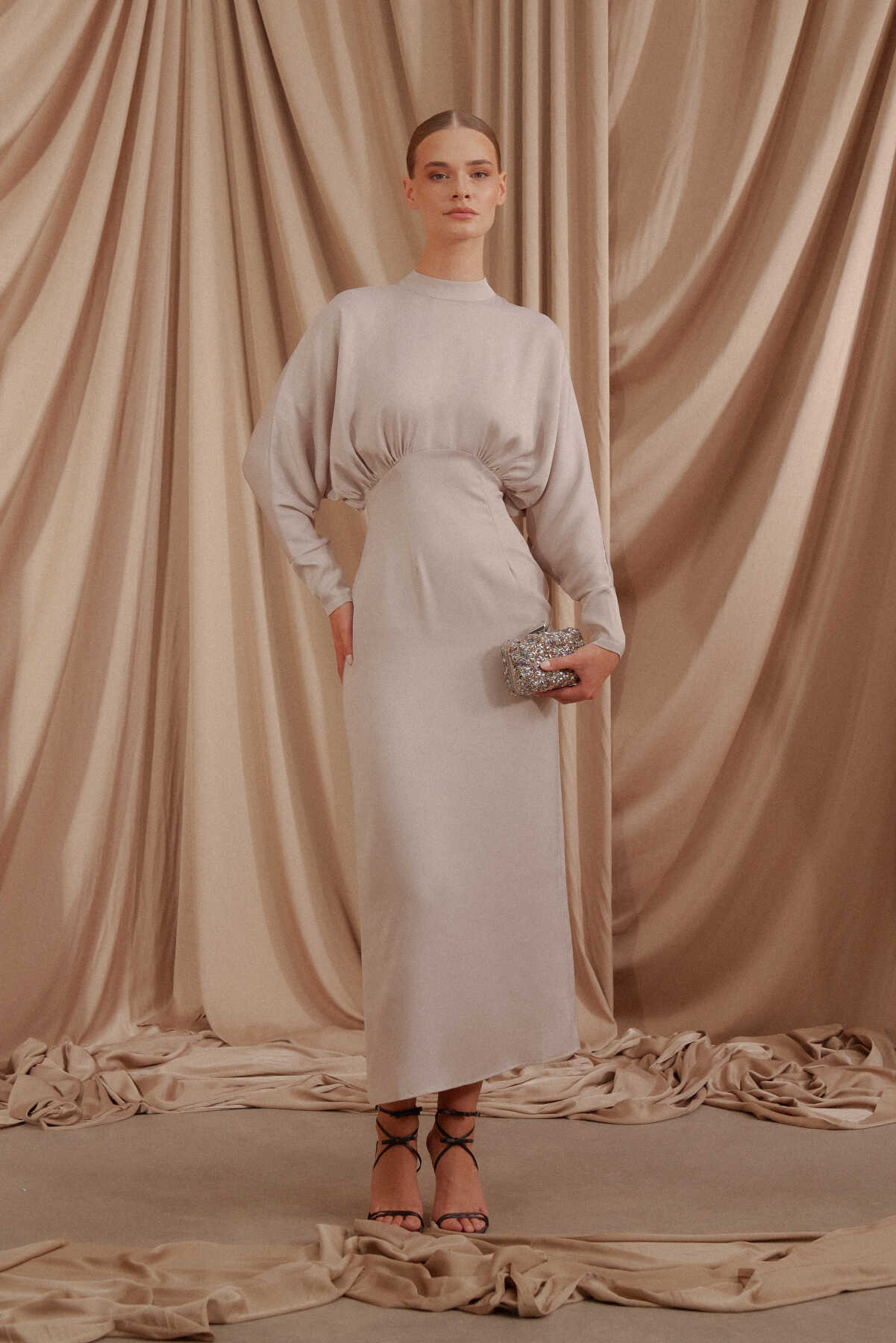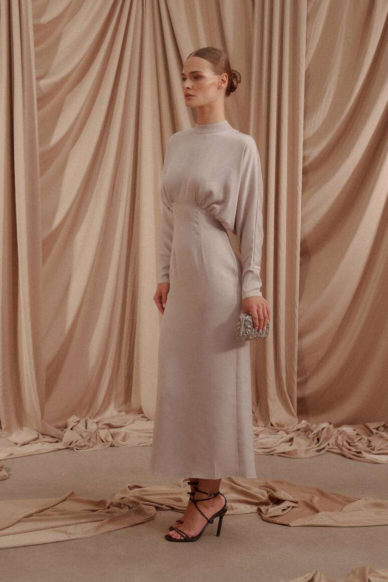 • Arkası gizli fermuar kapamalı, saten kumaş