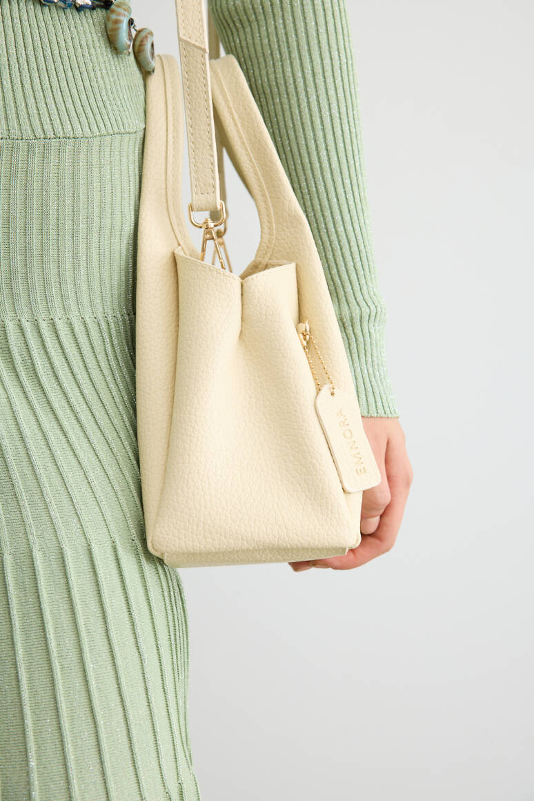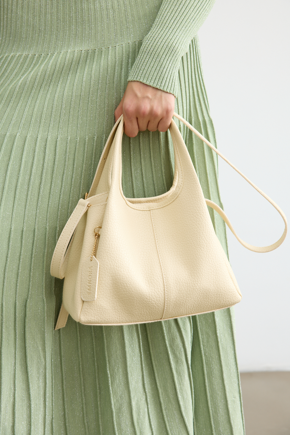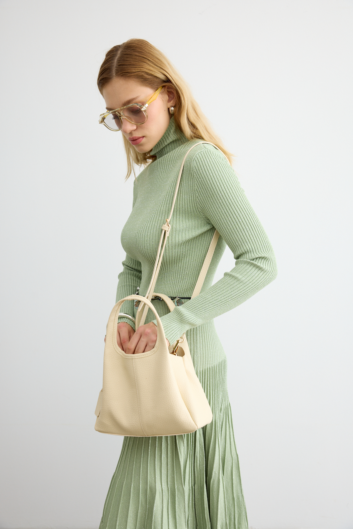 Minimal tasarımı ve yumuşak dokusuyla öne çıkan çanta. Günlük kombinlere zarif bir dokunuş katarken, kullanışlı iç hacmiyle stil ve işlevselliği bir araya getirir. Çıtçıt kapamalıdır. Ayarlanabilir uzun askısı mevcuttur.