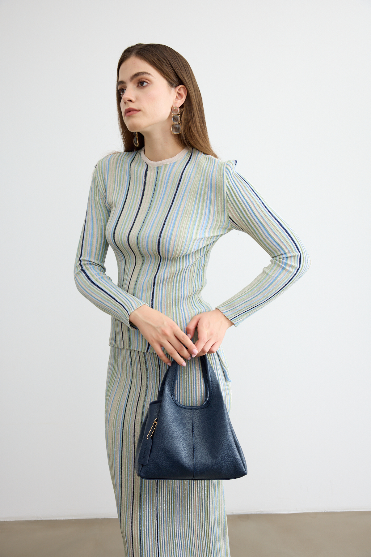 Minimal tasarımı ve yumuşak dokusuyla öne çıkan çanta. Günlük kombinlere zarif bir dokunuş katarken, kullanışlı iç hacmiyle stil ve işlevselliği bir araya getirir. Çıtçıt kapamalıdır. Ayarlanabilir uzun askısı mevcuttur.