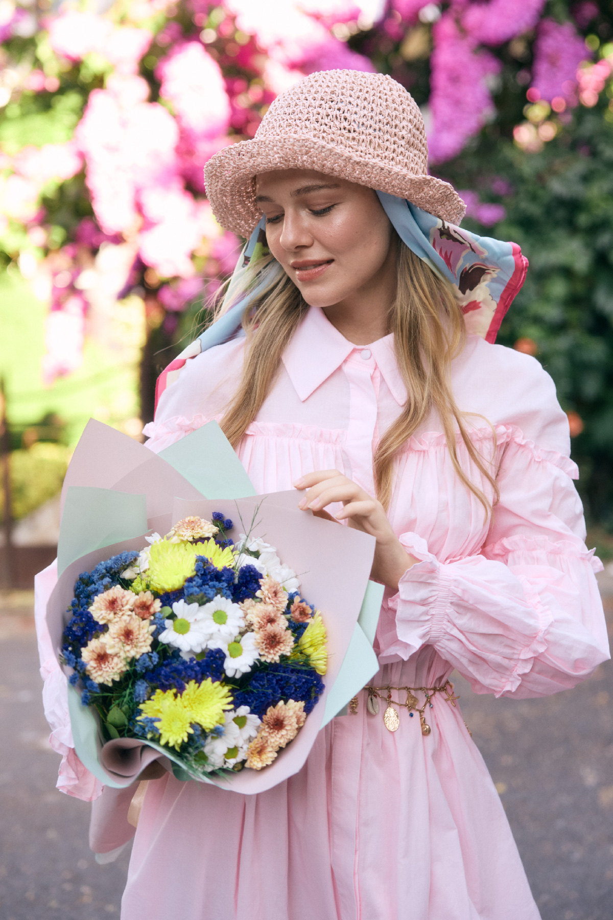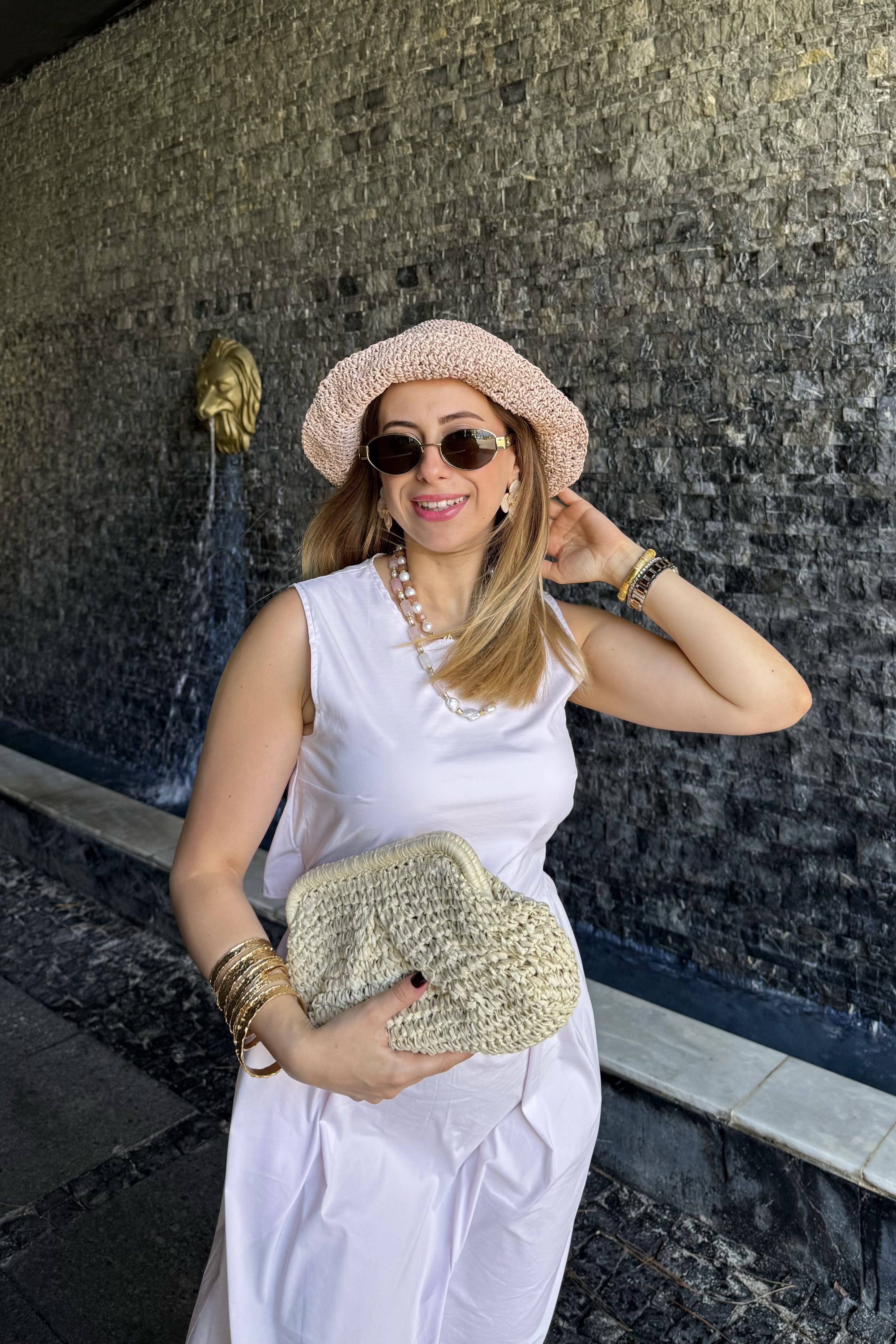Basic Örgü Bucket Hasır Şapka Pudra - 12