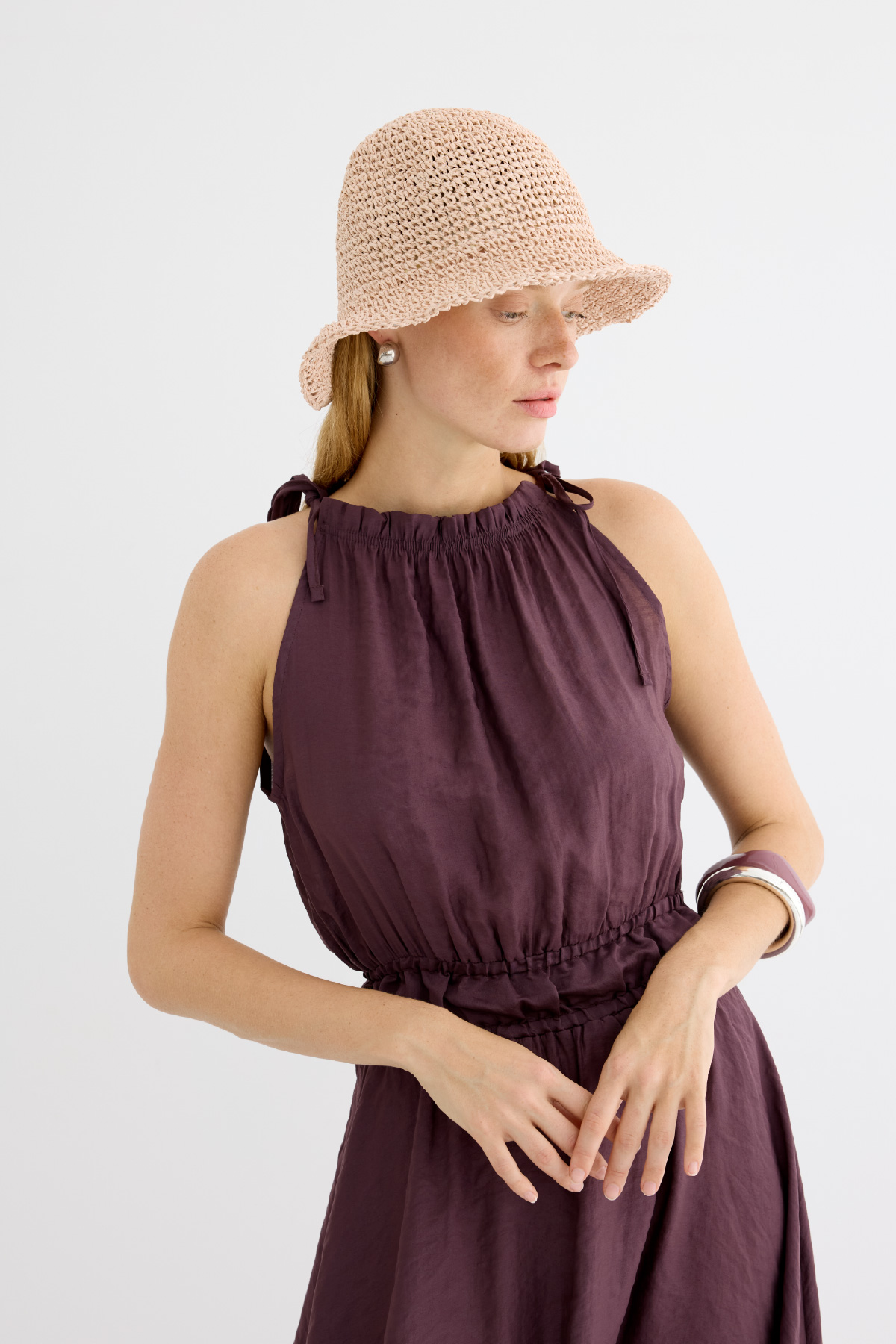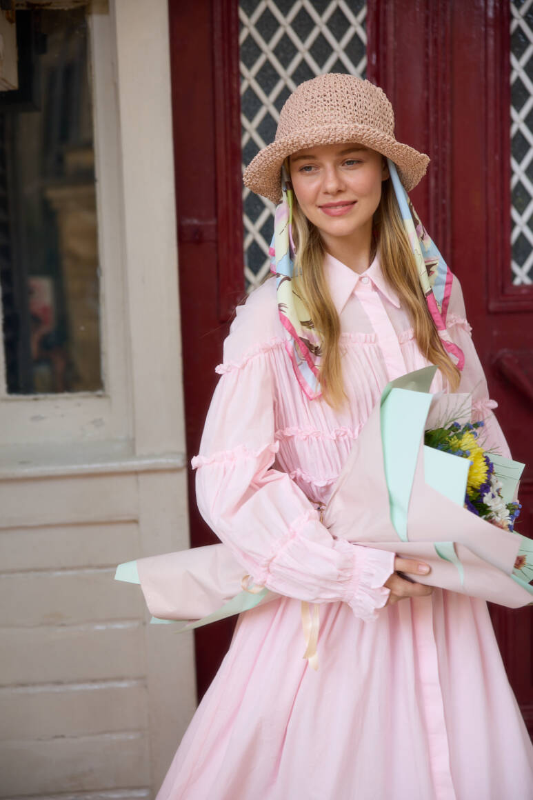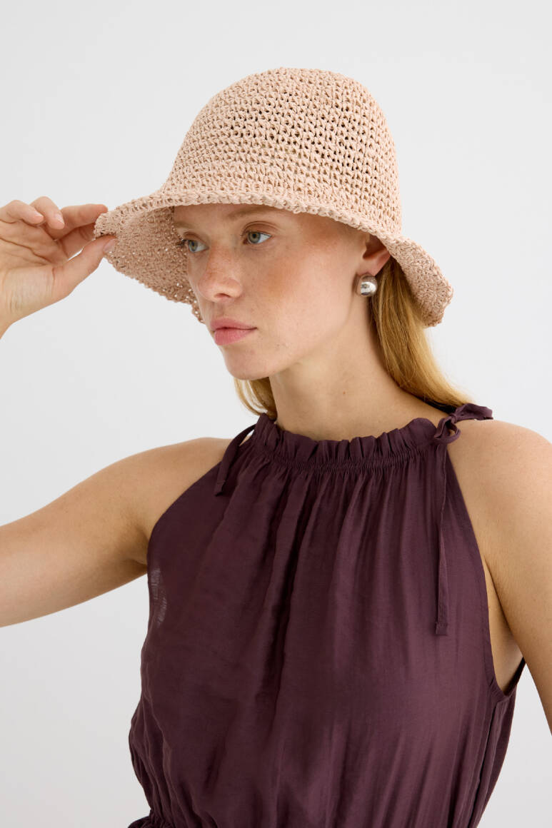 Basic Örgü Bucket Hasır Şapka Pudra - 10