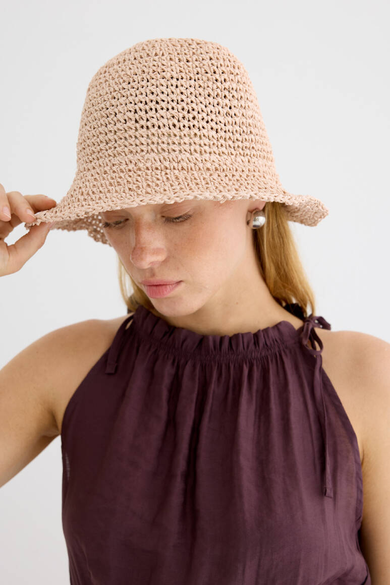 Basic Örgü Bucket Hasır Şapka Pudra - 1