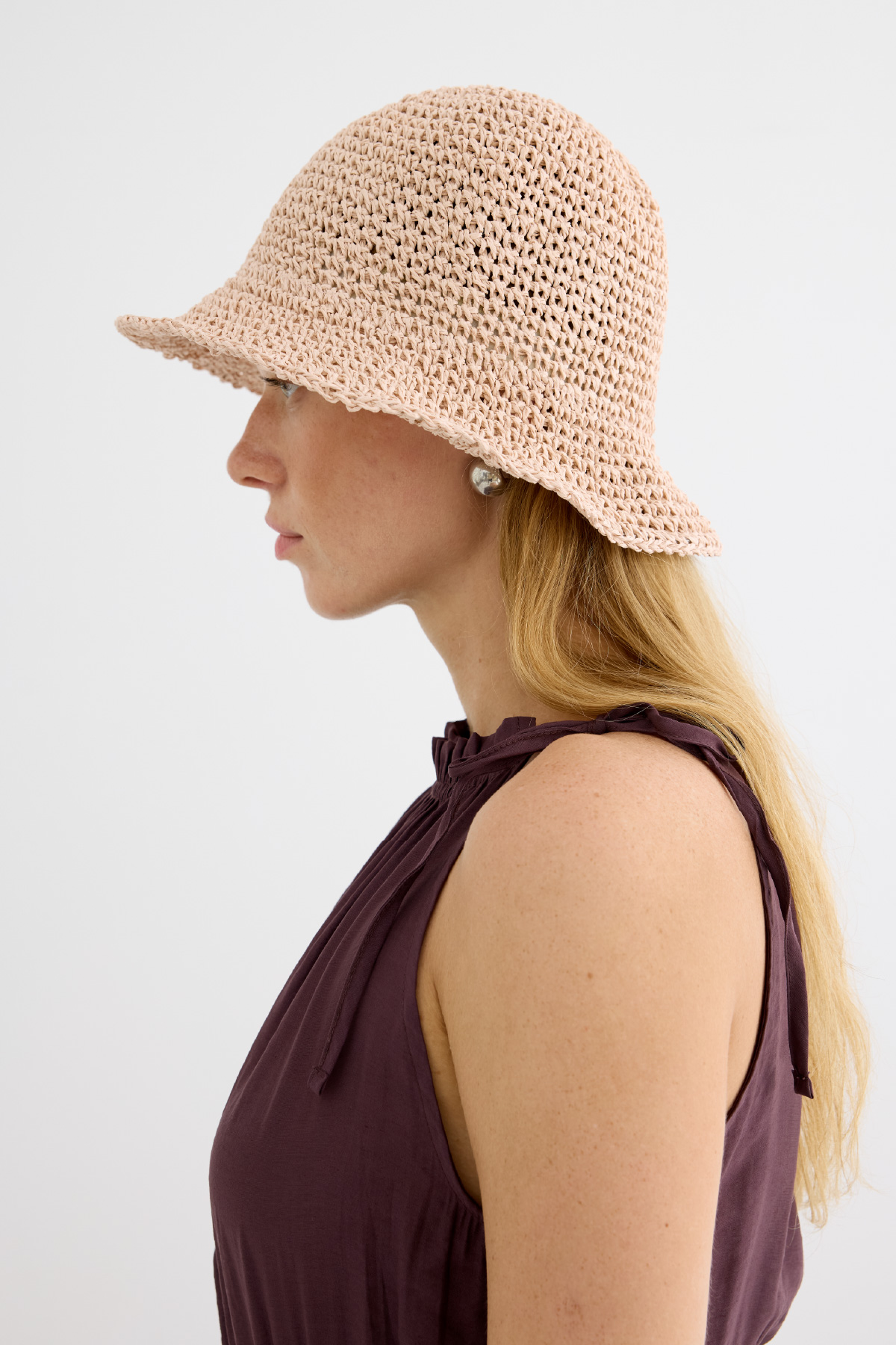 Basic Örgü Bucket Hasır Şapka Pudra - 8