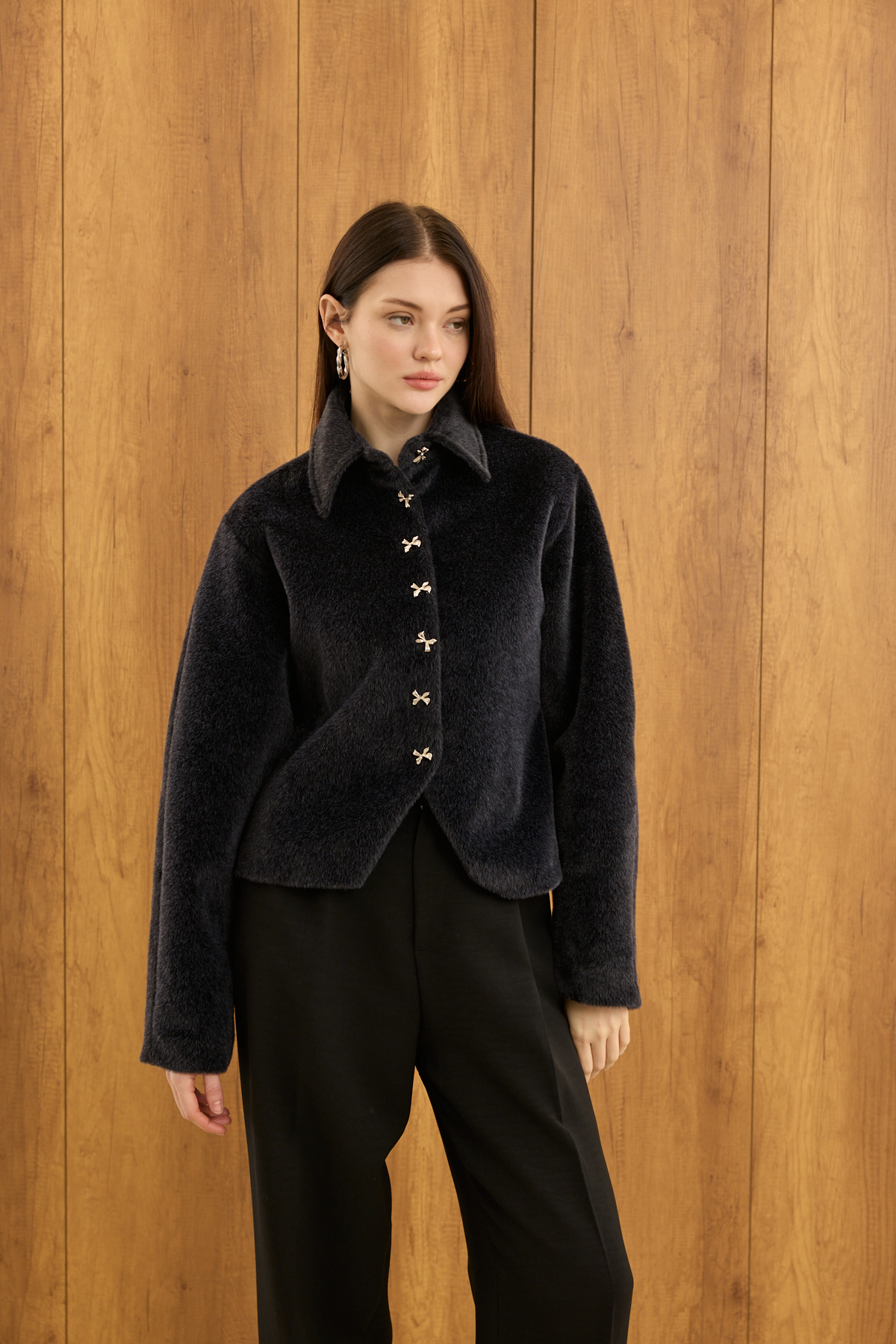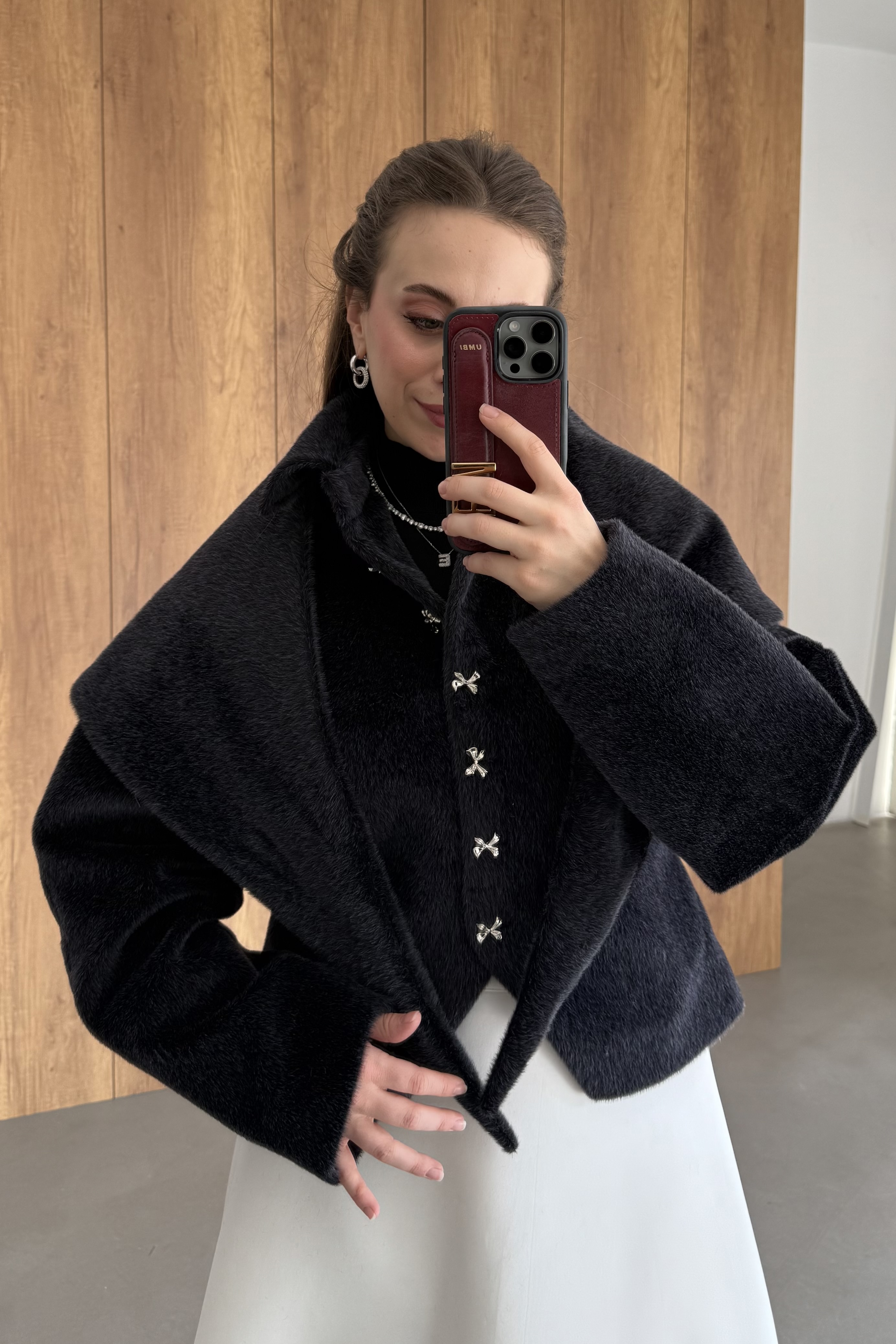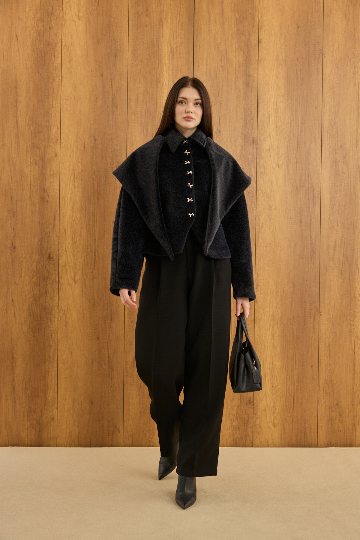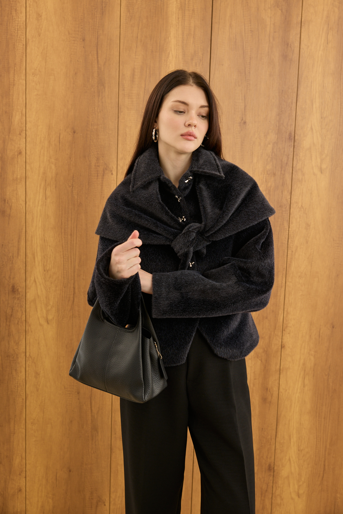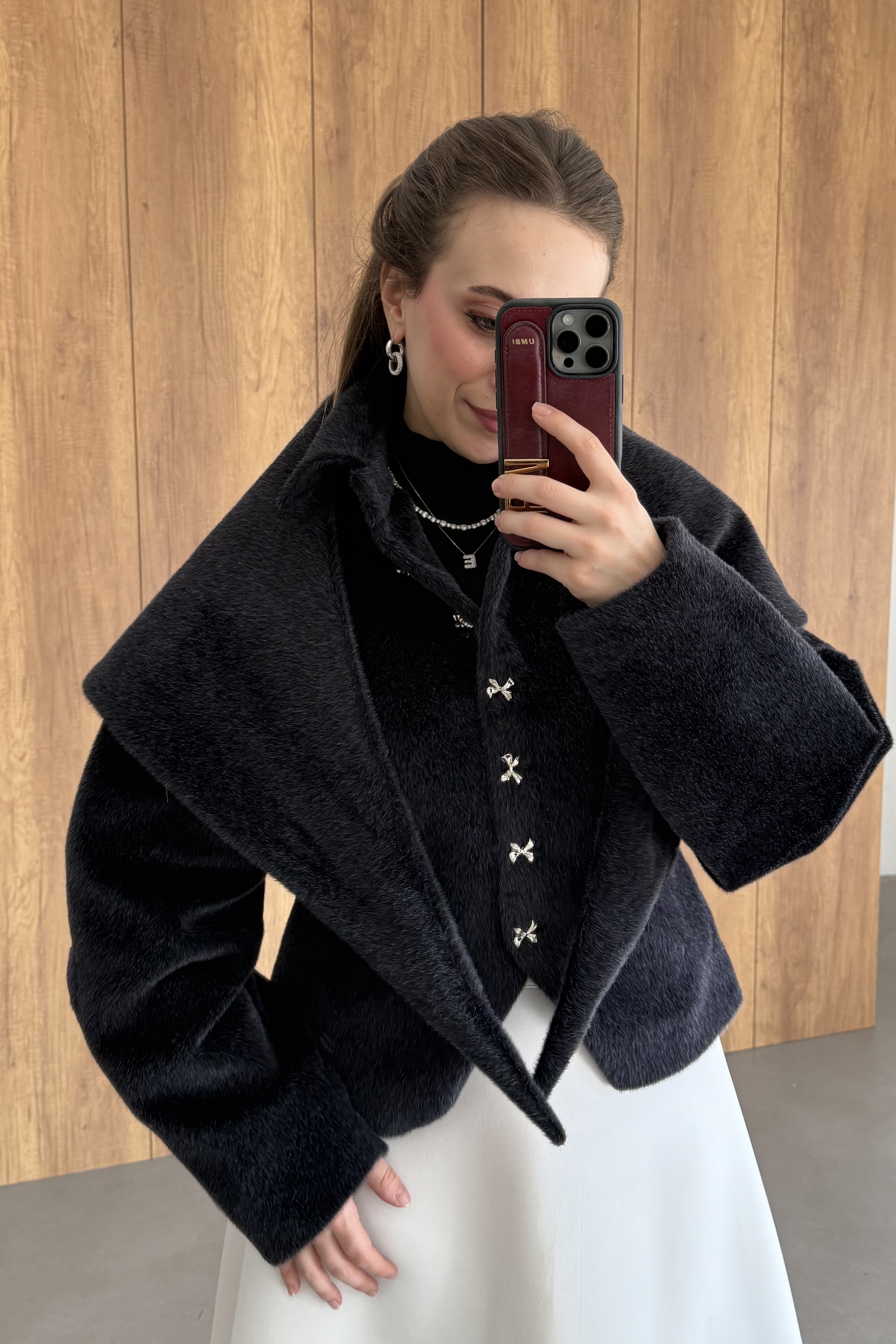 Belden oturtmalı kesimi ve fiyonklu düğme detayıyla feminen bir siluet yaratan fox kaban, çıkarılabilir atkı detayı sayesinde sofistike bir dokunuş sunuyor. Lüks dokusu ve modern tasarımı, soğuk günlerde sıcaklık sağlarken şıklığınızı ve zarif duruşunuzu ön plana çıkarıyor.