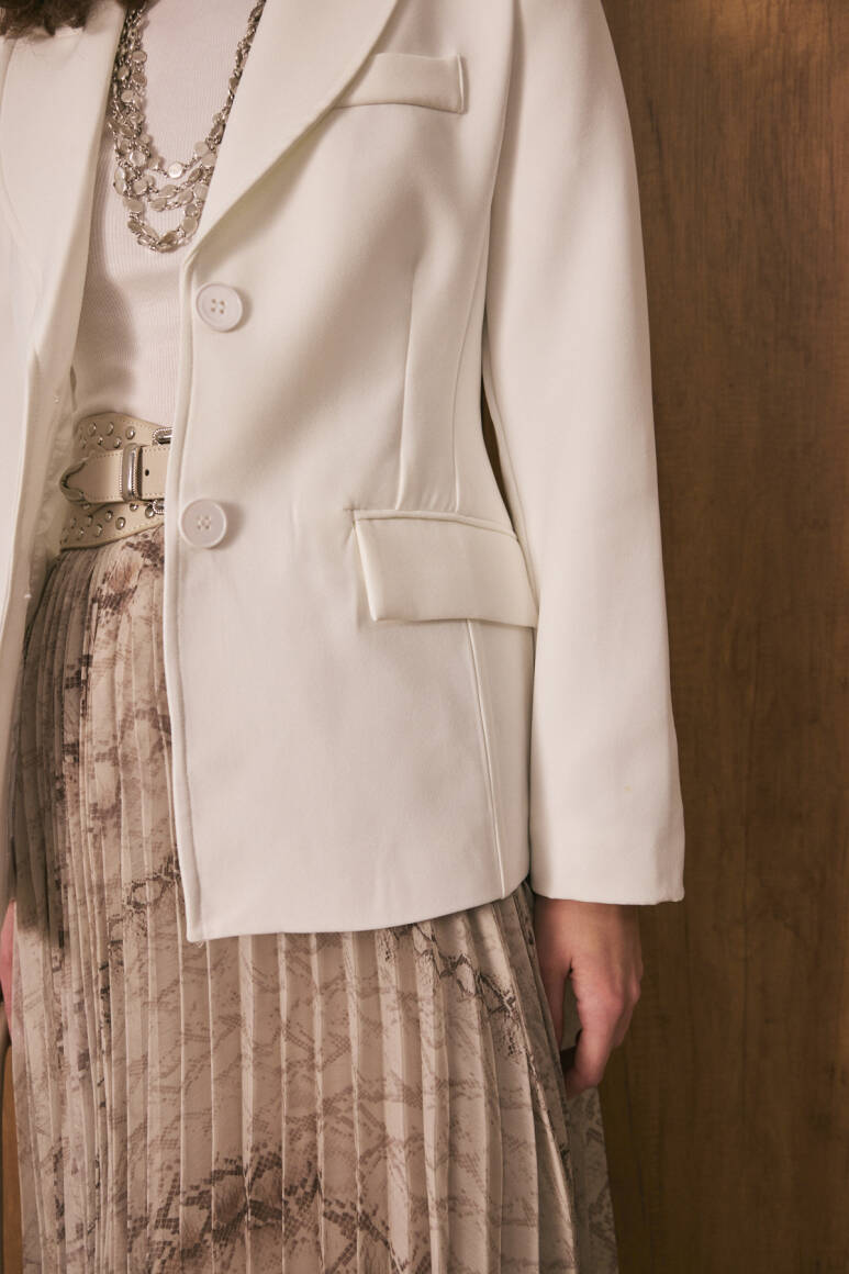 Belden oturtmalı yapı ve modern kesim,Premium kumaş,İki düğmeli önü ve kapaklı cep detay.