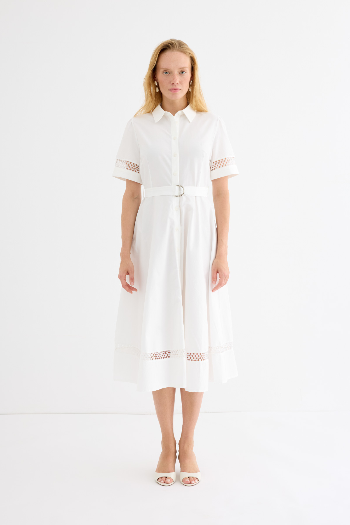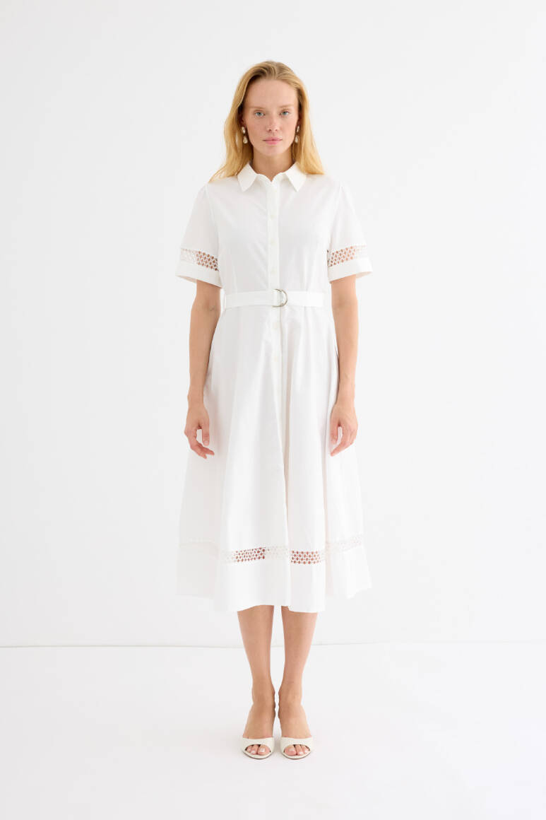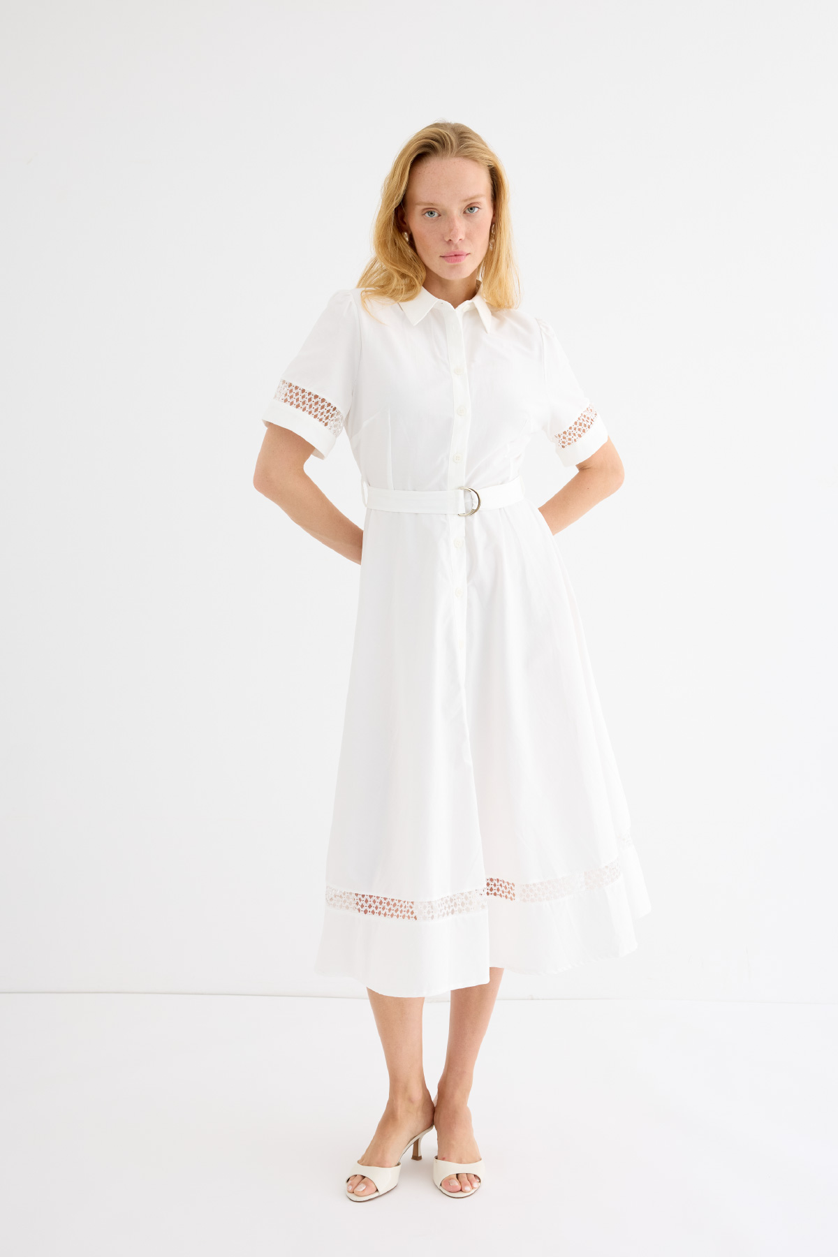 Yaz sezonunun vazgeçilmezi: brode detaylı gömlek elbise. Minimalist ve zarif duruşuyla hem gündüz hem de gece stilinize uyum sağlar. Brode detayları ve kemerli beli, siluetinize feminen bir dokunuş katarken, kumaşın hafifliğiyle gün boyu konfor sunar.