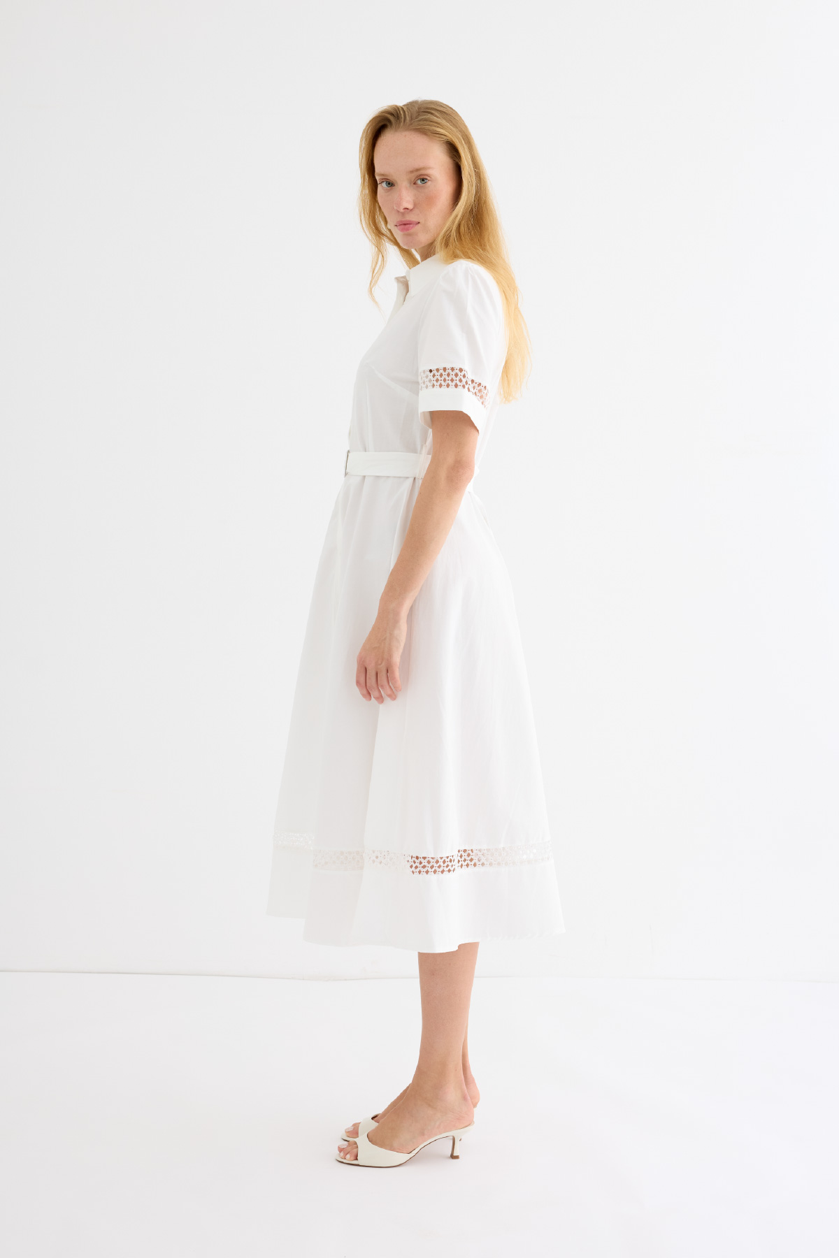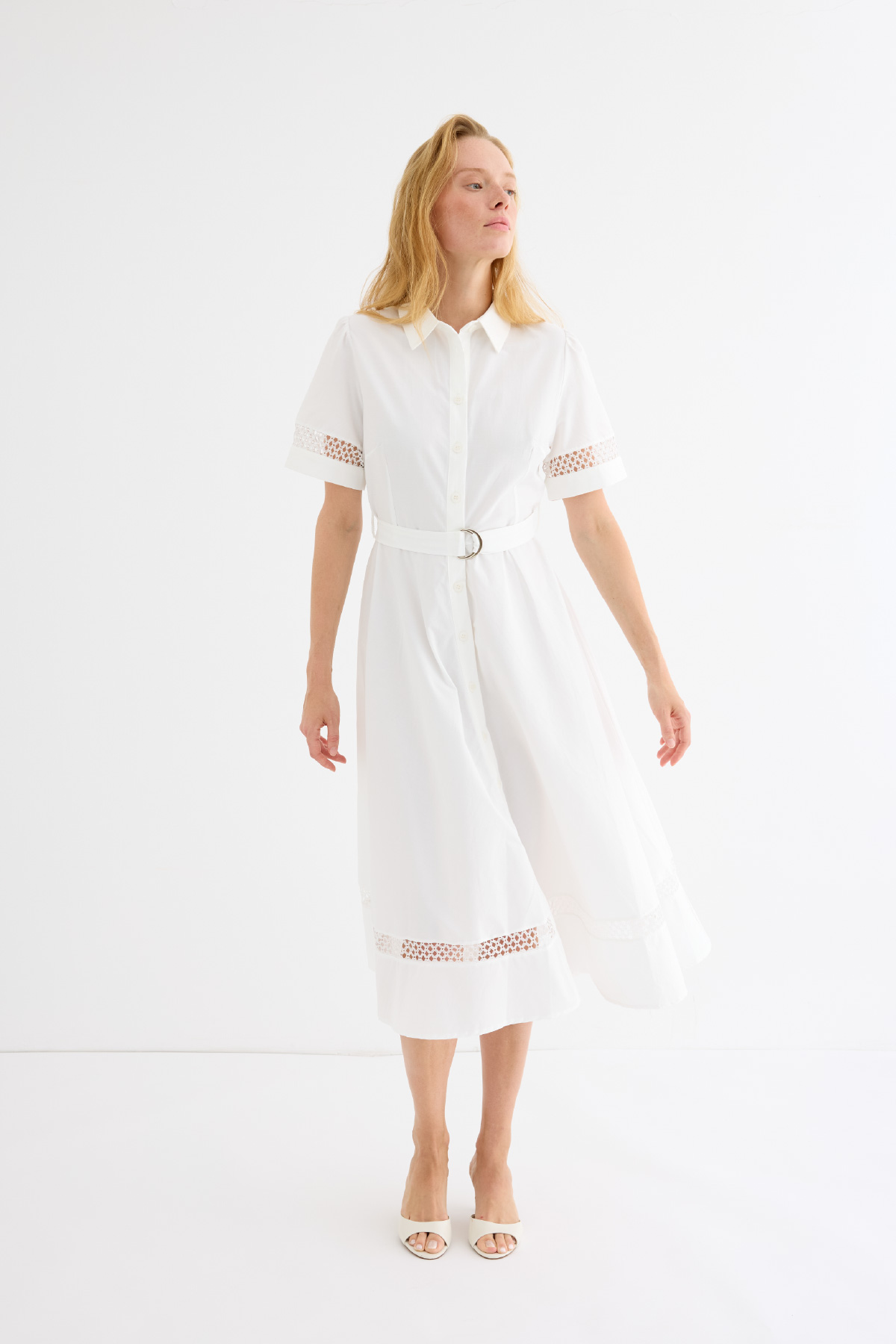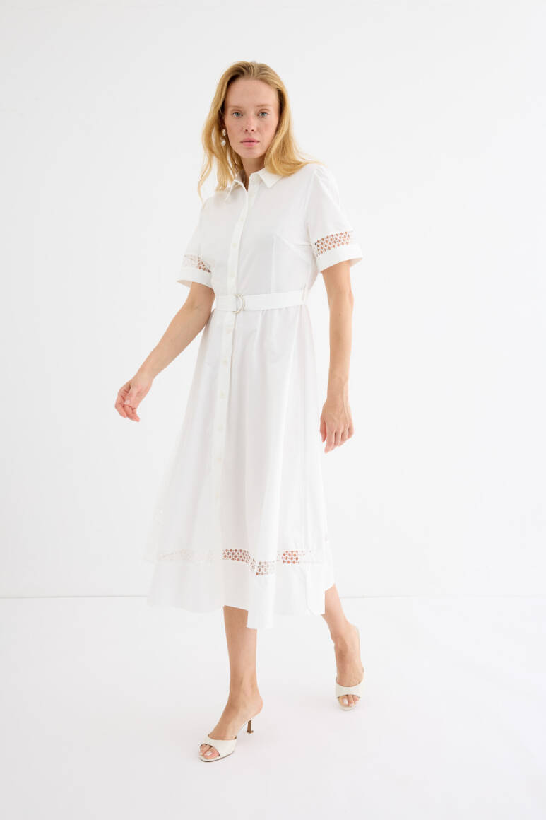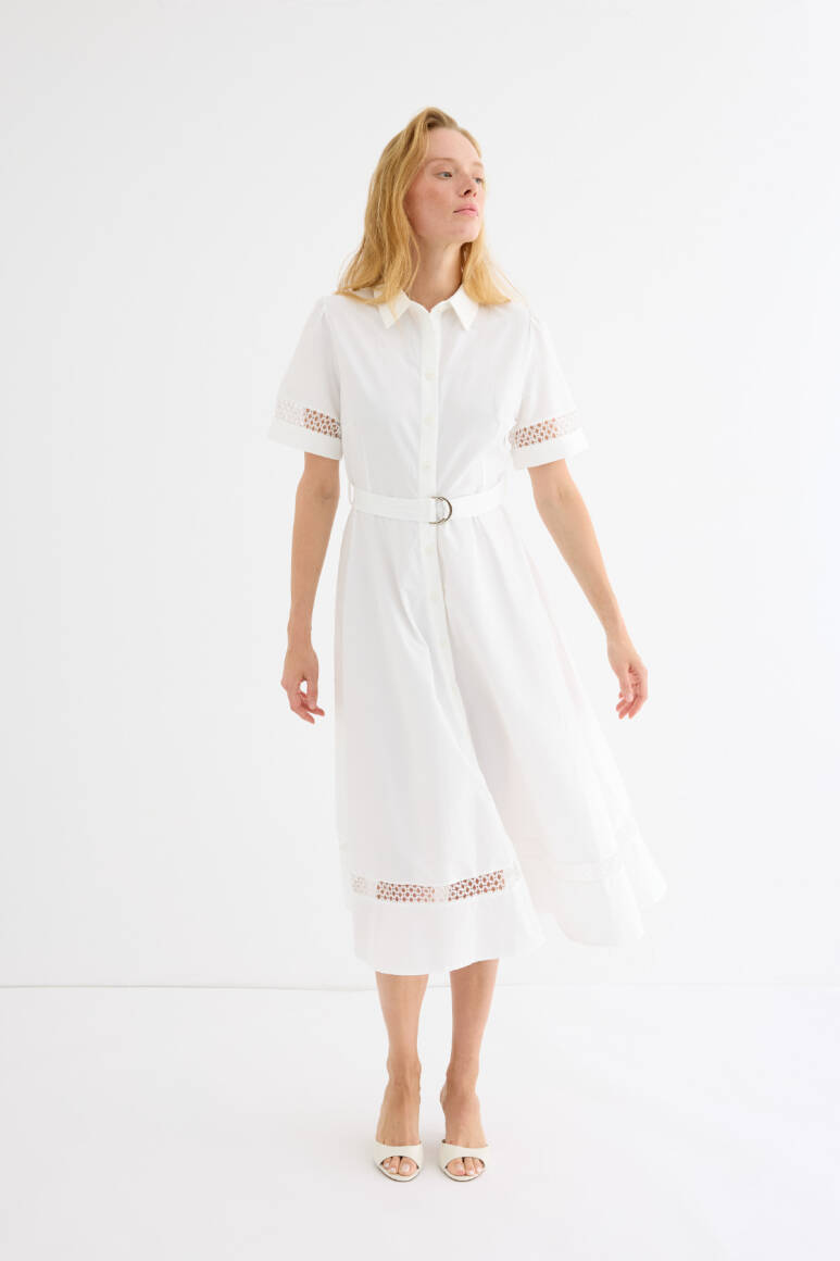 Yaz sezonunun vazgeçilmezi: brode detaylı gömlek elbise. Minimalist ve zarif duruşuyla hem gündüz hem de gece stilinize uyum sağlar. Brode detayları ve kemerli beli, siluetinize feminen bir dokunuş katarken, kumaşın hafifliğiyle gün boyu konfor sunar.