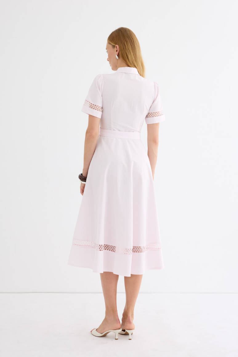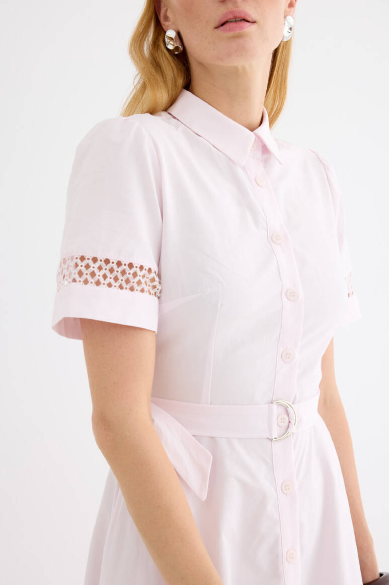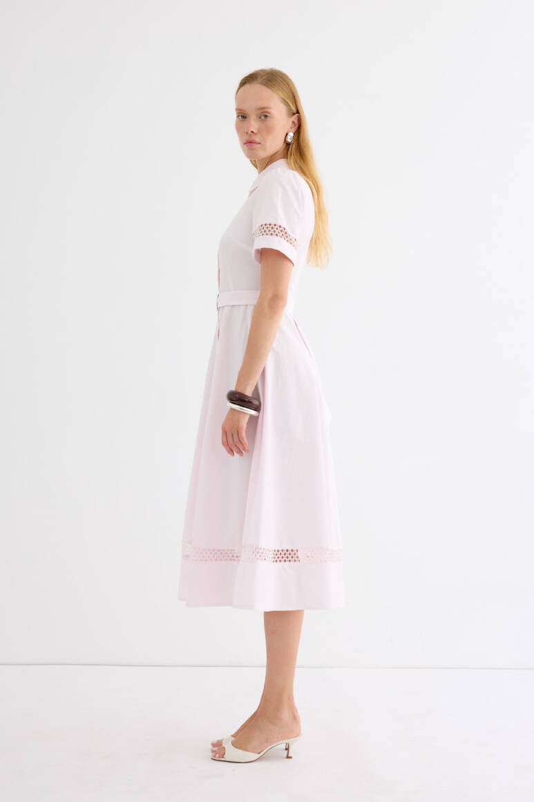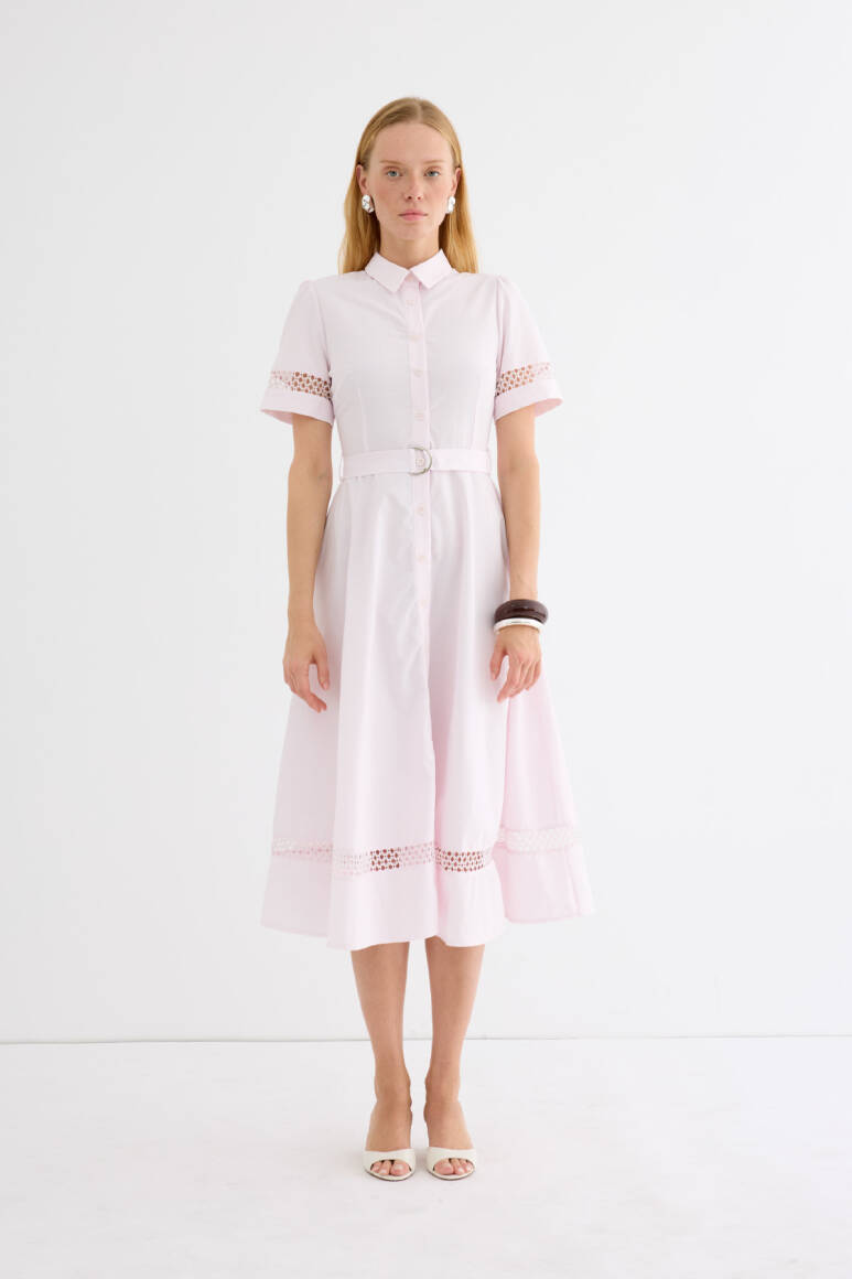Yaz sezonunun vazgeçilmezi: brode detaylı gömlek elbise. Minimalist ve zarif duruşuyla hem gündüz hem de gece stilinize uyum sağlar. Brode detayları ve kemerli beli, siluetinize feminen bir dokunuş katarken, kumaşın hafifliğiyle gün boyu konfor sunar.