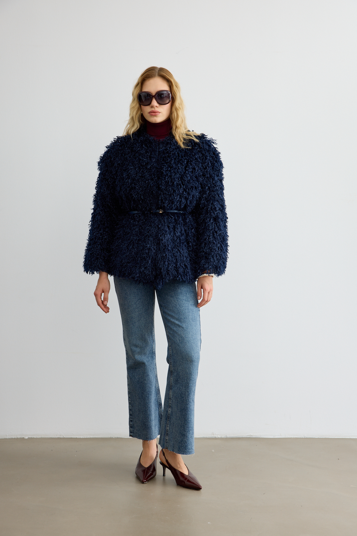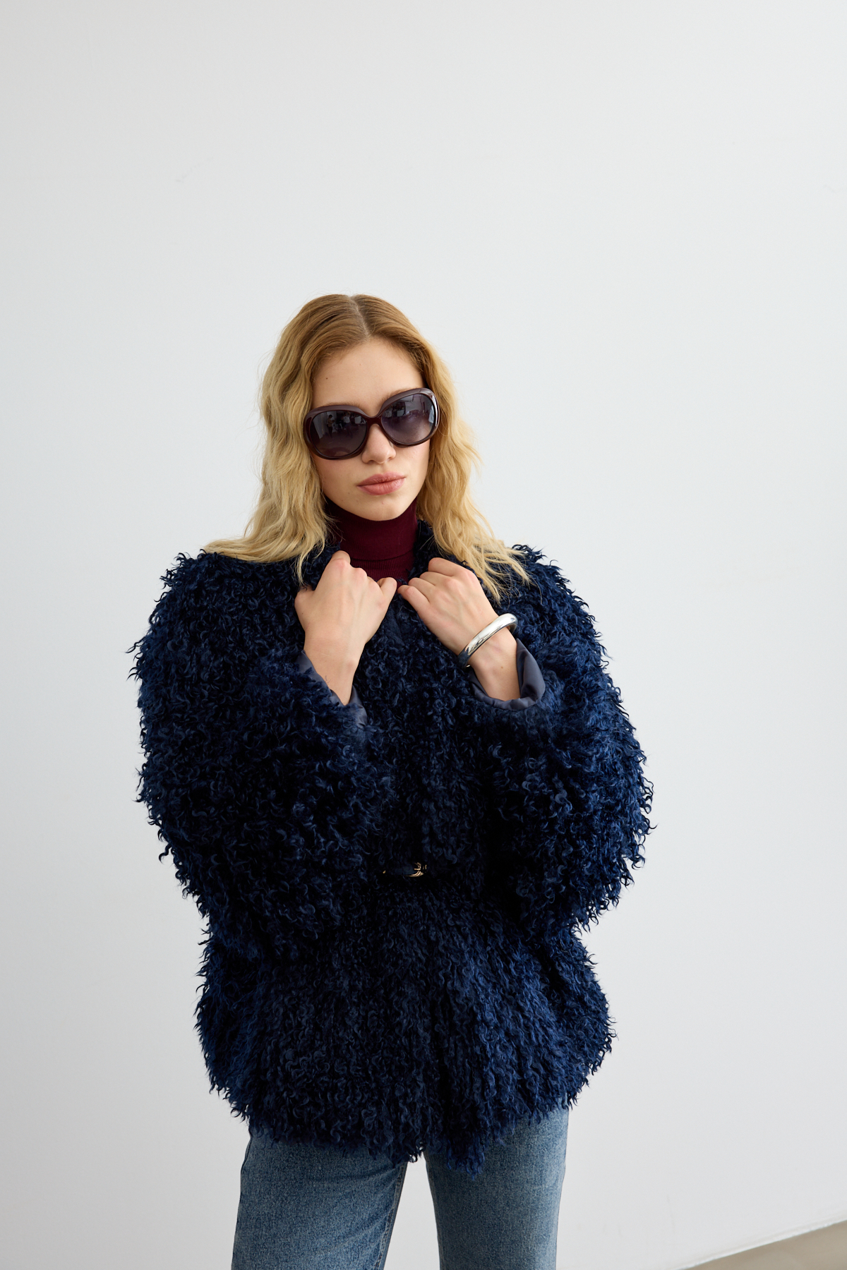 Modern dokusu ve hacimli görünümüyle öne çıkan bu bürümcük kürk, stilinize özgün bir karakter katıyor. Yumuşak yapısı sayesinde sıcak tutarken, sofistike duruşuyla her kombine zarif bir tamamlayıcı oluyor.