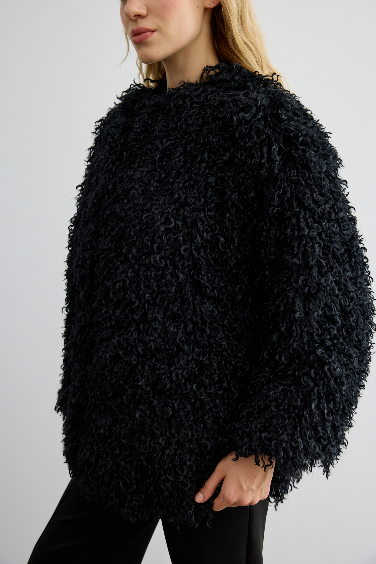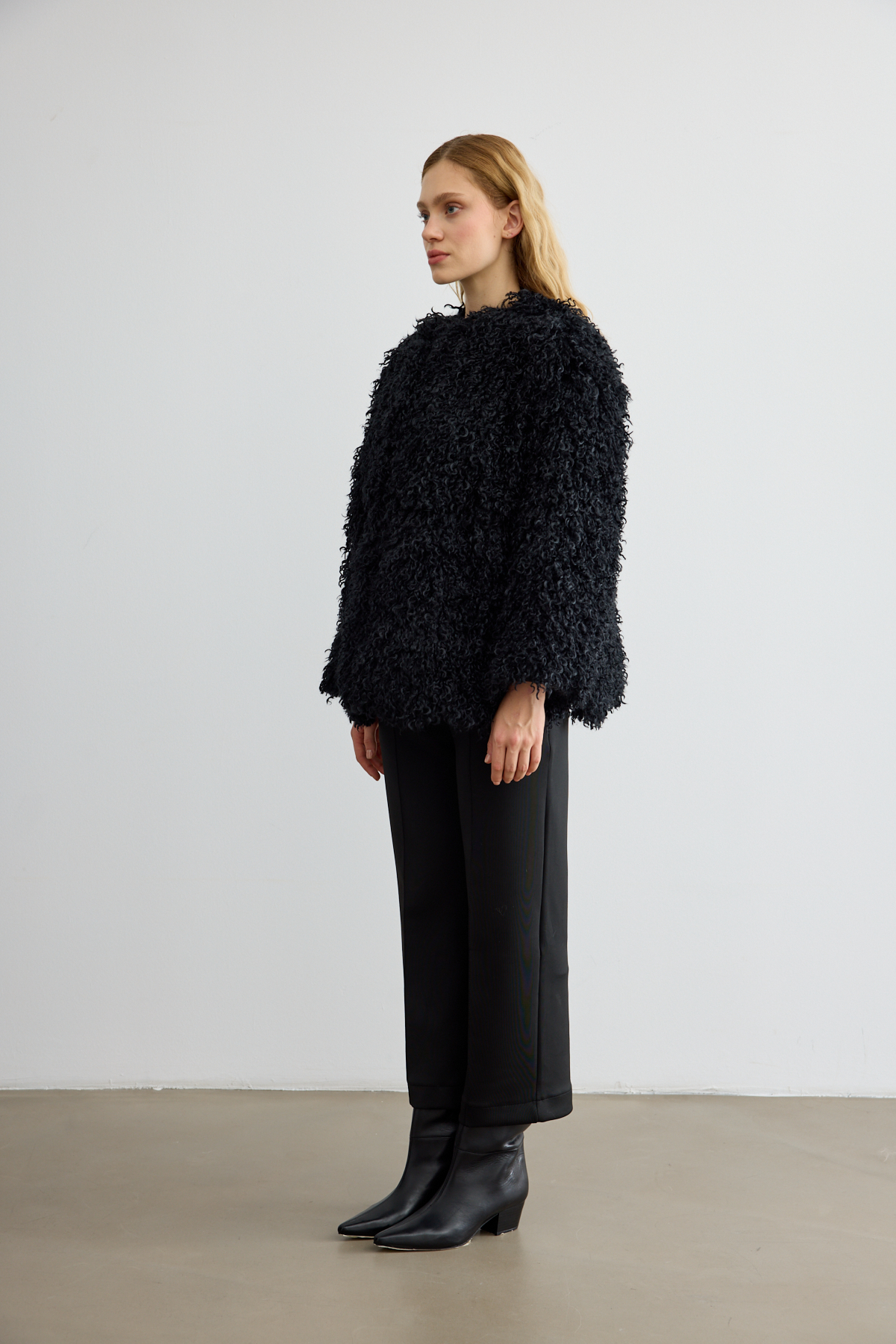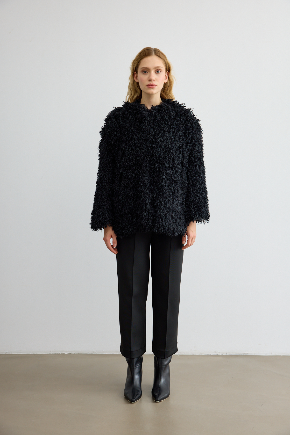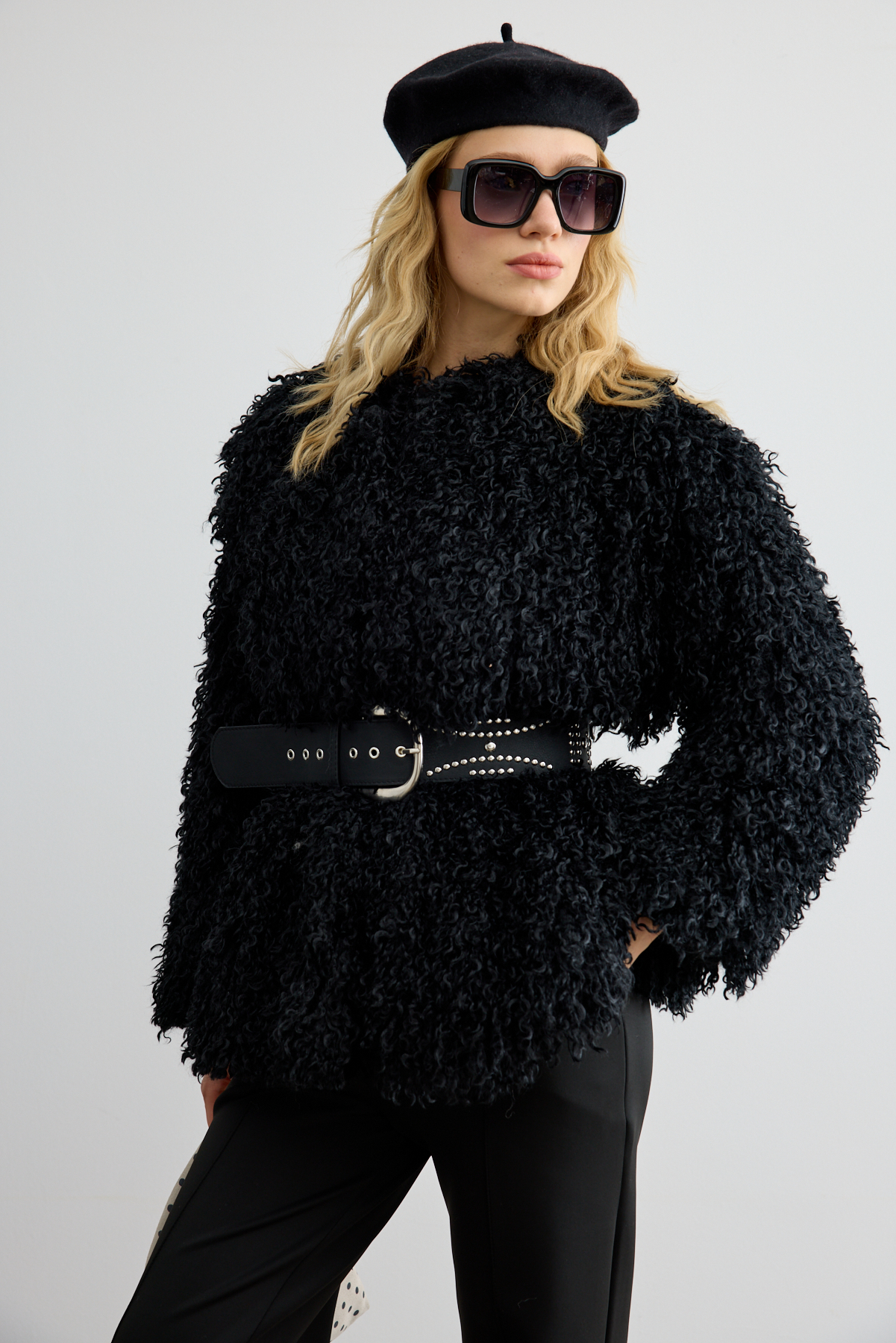Modern dokusu ve hacimli görünümüyle öne çıkan bu bürümcük kürk, stilinize özgün bir karakter katıyor. Yumuşak yapısı sayesinde sıcak tutarken, sofistike duruşuyla her kombine zarif bir tamamlayıcı oluyor.