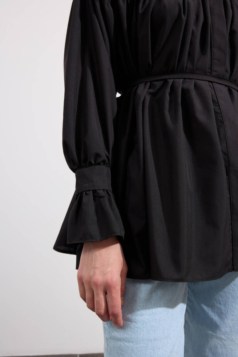 Büzgülü Poplin Gömlek Siyah - 4