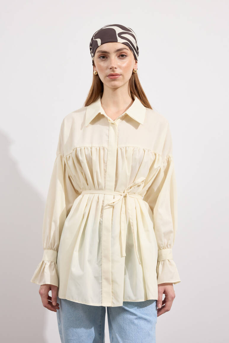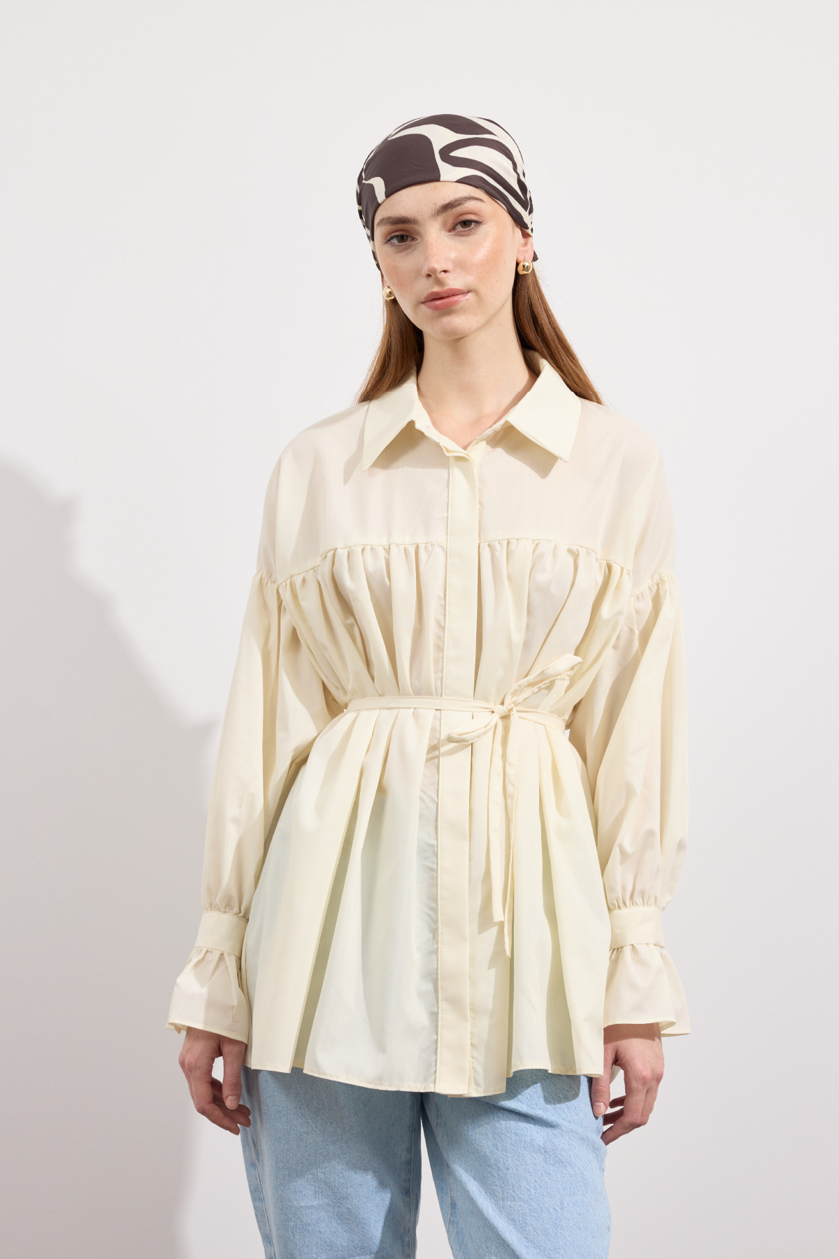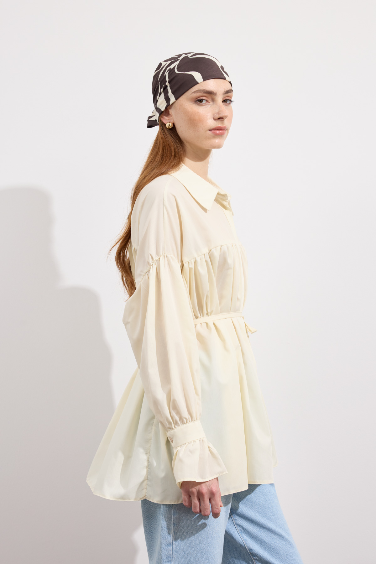 Büzgülü Poplin Gömlek Soft Sarı - 1