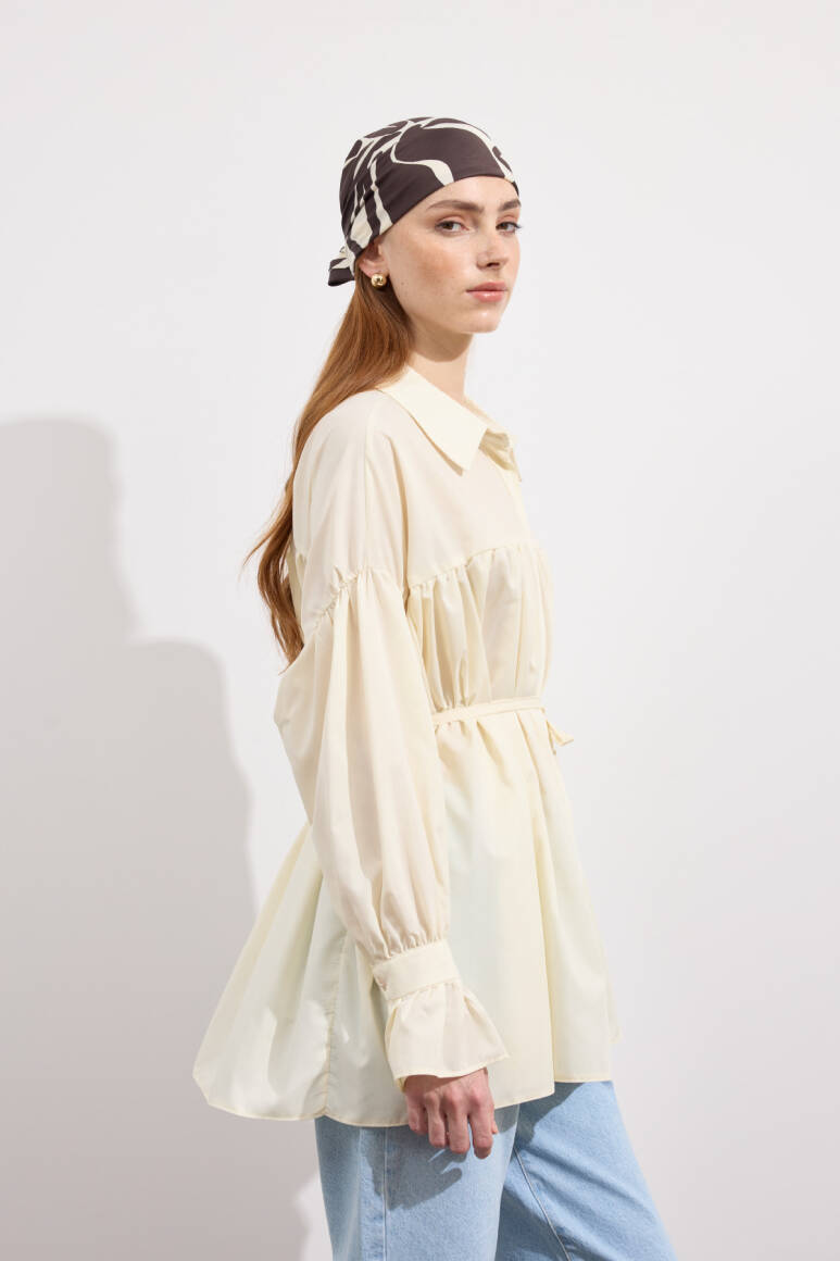 Büzgülü Poplin Gömlek Soft Sarı - 4