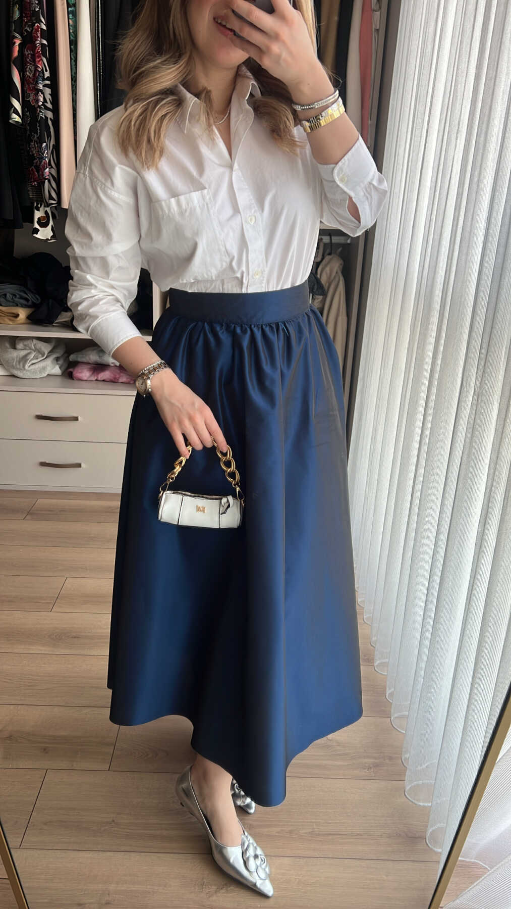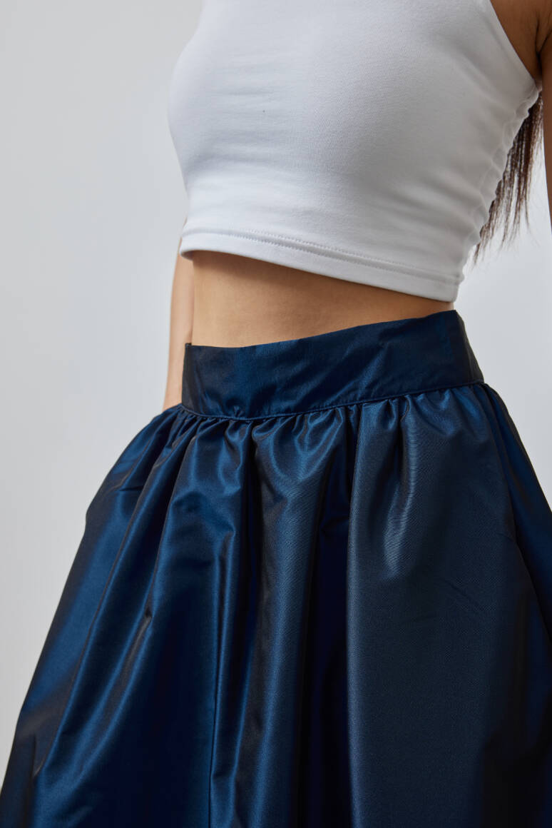 Büzgülü Premium Tafta Etek Lacivert - 6