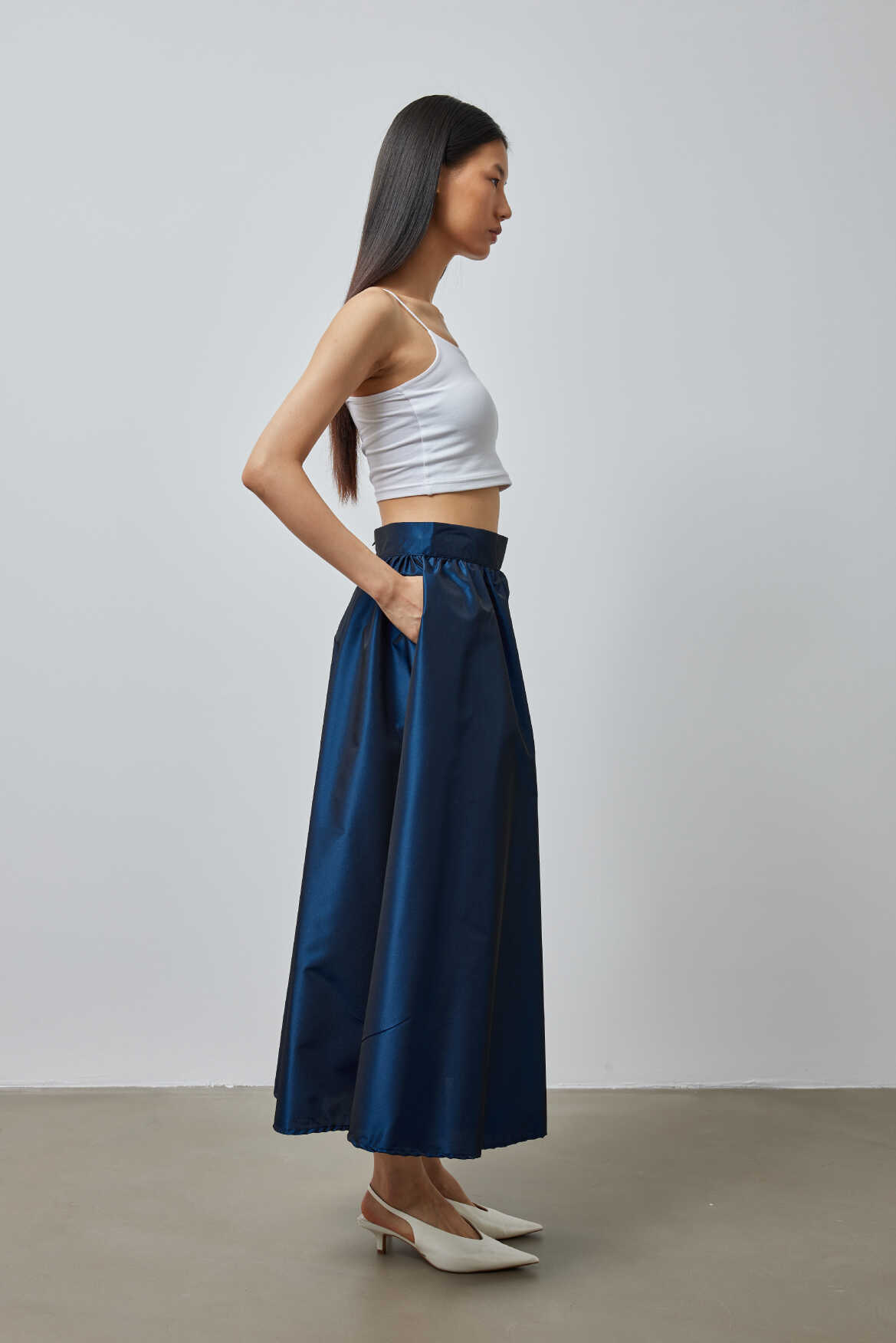Büzgülü Premium Tafta Etek Lacivert - 4