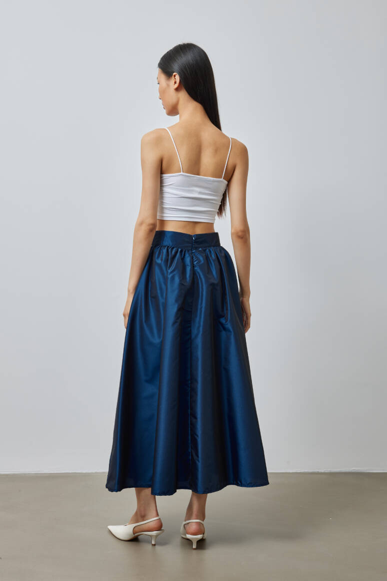 Büzgülü Premium Tafta Etek Lacivert - 2