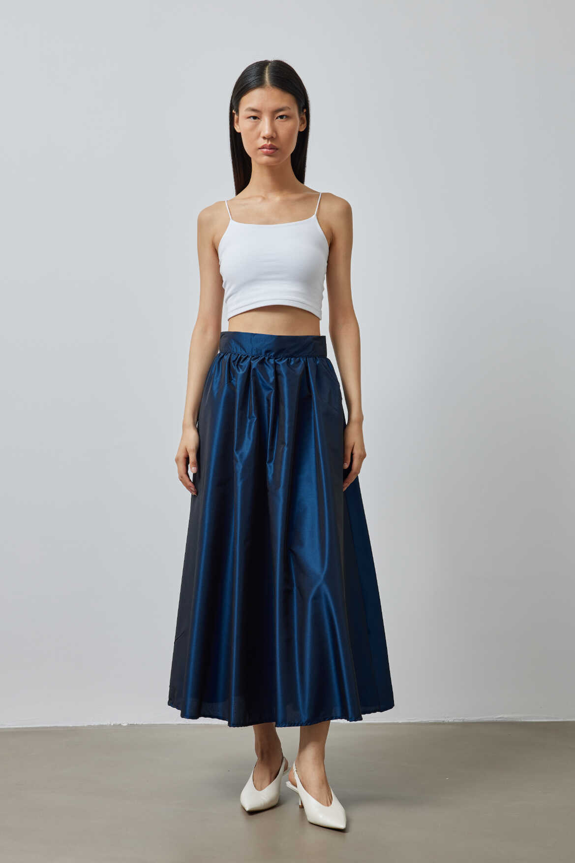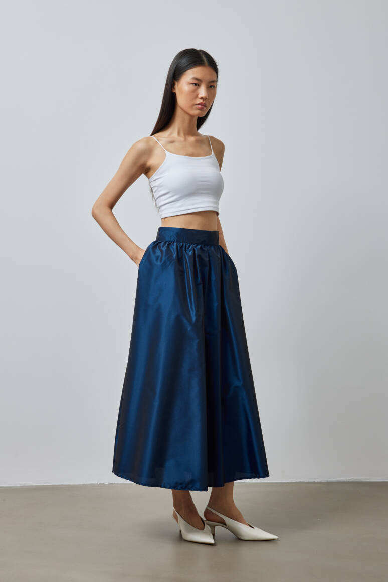 Büzgülü Premium Tafta Etek Lacivert