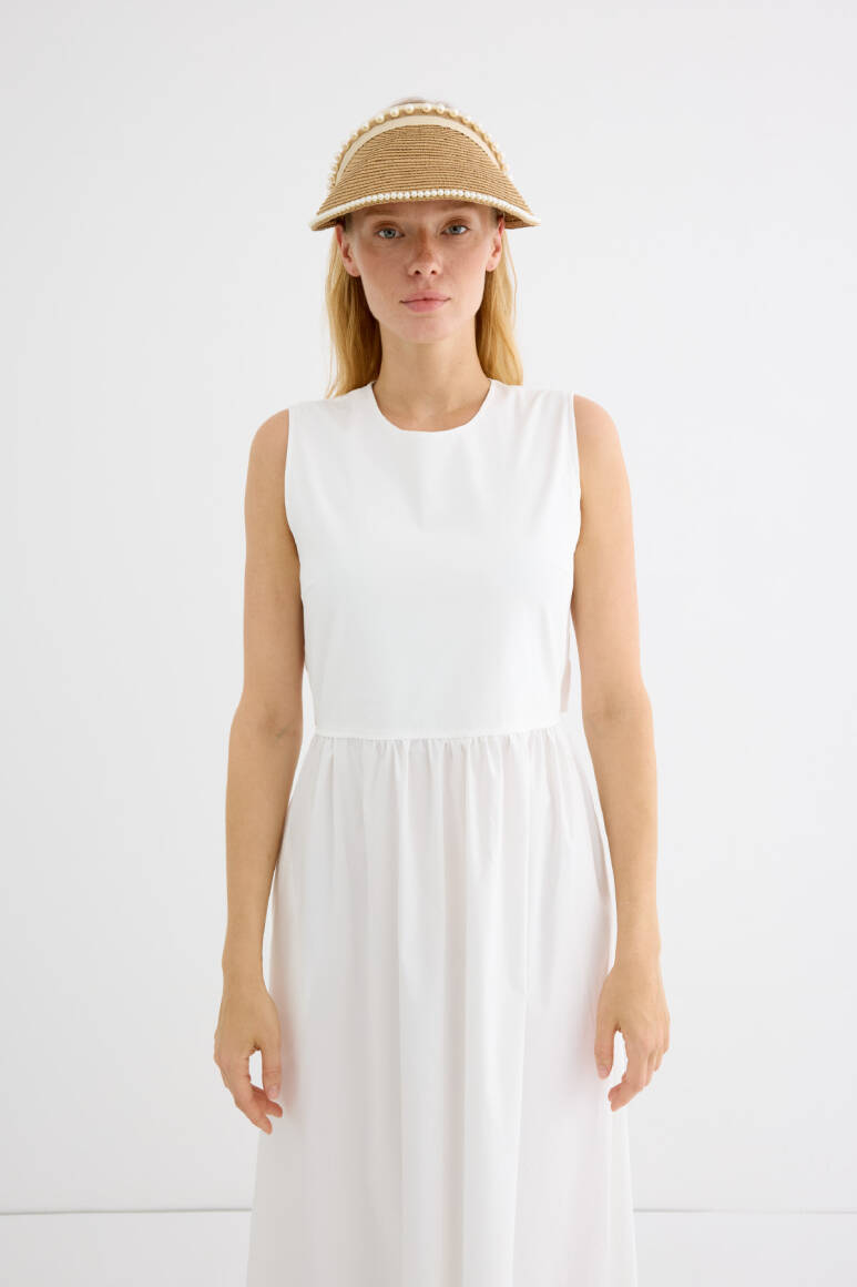 Modern çizgilere sahip, sade ve zarif tasarımıyla öne çıkan elbise. Üst kısmı bel pencereli görünümlü, alt kısmı yüksek bel, geniş kesimle tamamlanmıştır. Hafif ve akışkan kumaşı sayesinde gün boyu konfor sunar. Günlük şıklık veya özel davetler için ideal bir parça.