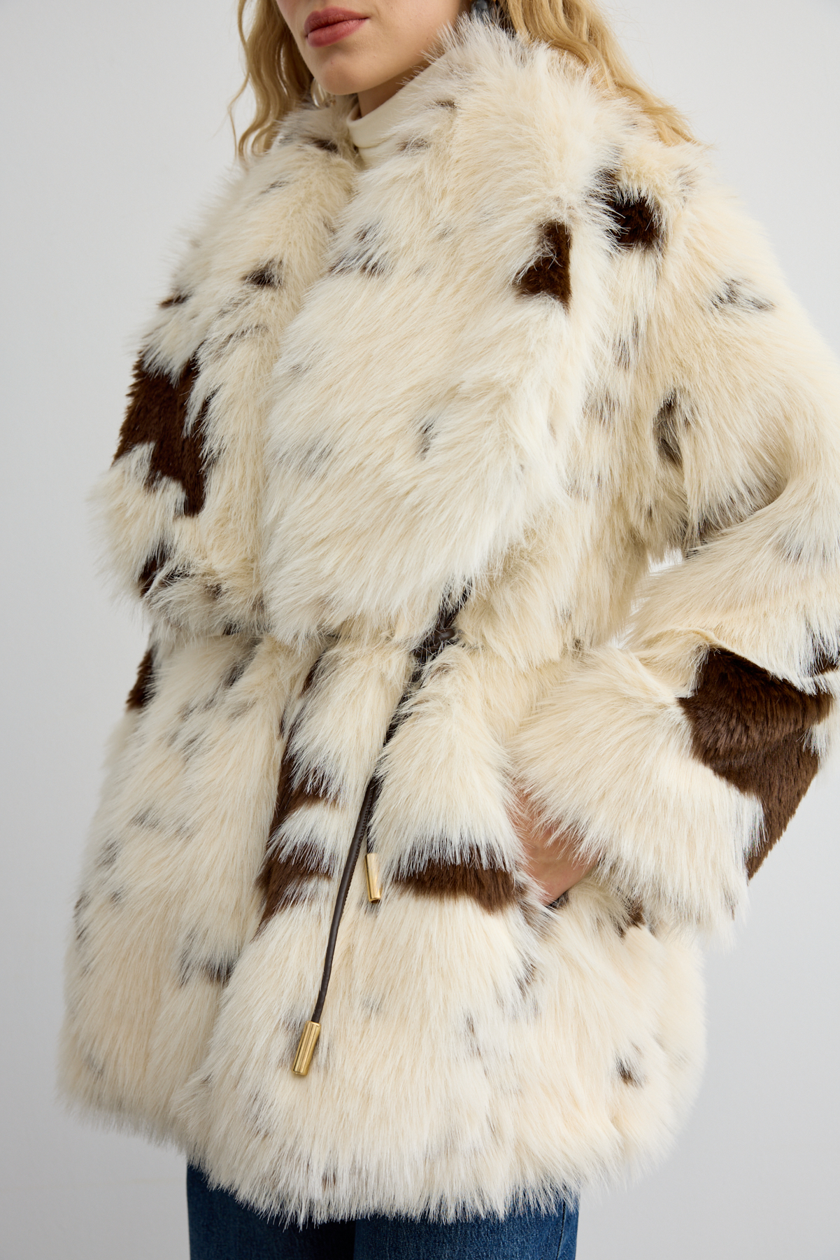 Lüks dokusu ve modern kesimiyle öne çıkan bu premium kürk, şık deri kemer detayıyla stilinize sofistike bir vurgu katıyor. Hafif hacimli ve feminen silueti ön plana çıkarırken soğuk günlerde konfor ve sıcaklık sağlıyor. Gündelik kombinlerden özel davetlere kadar her ortamda zarafetiyle dikkat çeken bir parça.