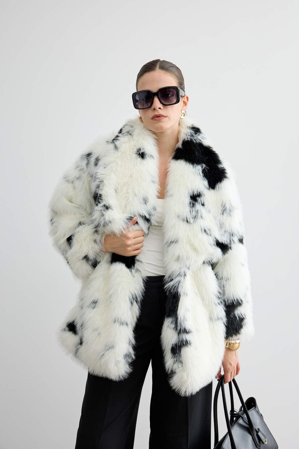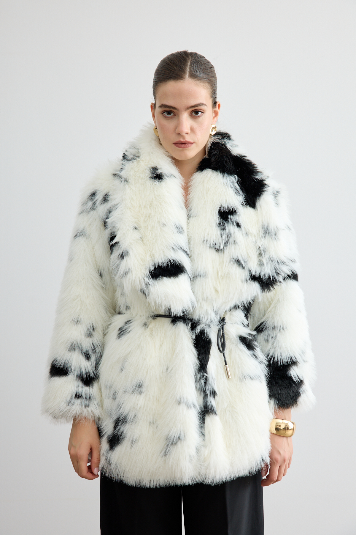 Lüks dokusu ve modern kesimiyle öne çıkan bu premium kürk, şık deri kemer detayıyla stilinize sofistike bir vurgu katıyor. Hafif hacimli ve feminen silueti ön plana çıkarırken soğuk günlerde konfor ve sıcaklık sağlıyor. Gündelik kombinlerden özel davetlere kadar her ortamda zarafetiyle dikkat çeken bir parça.