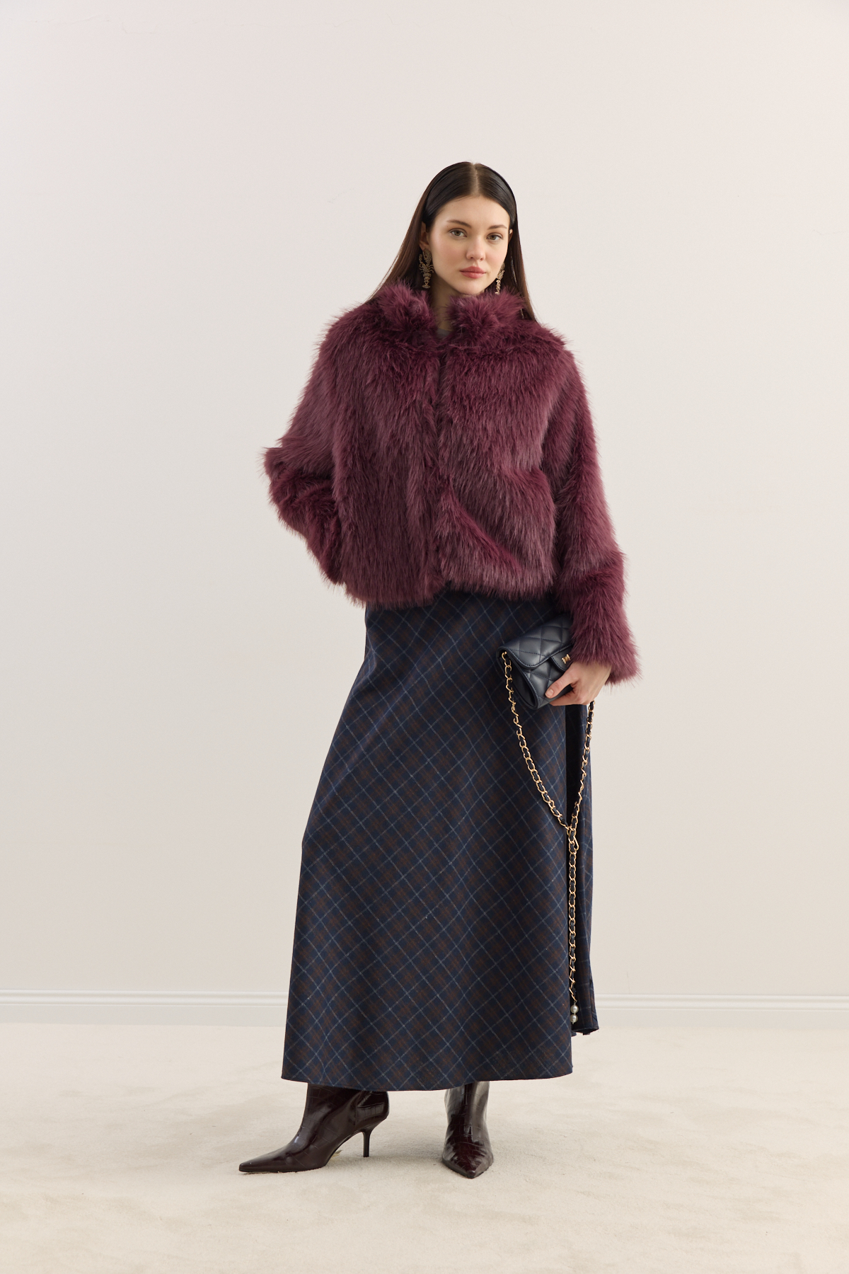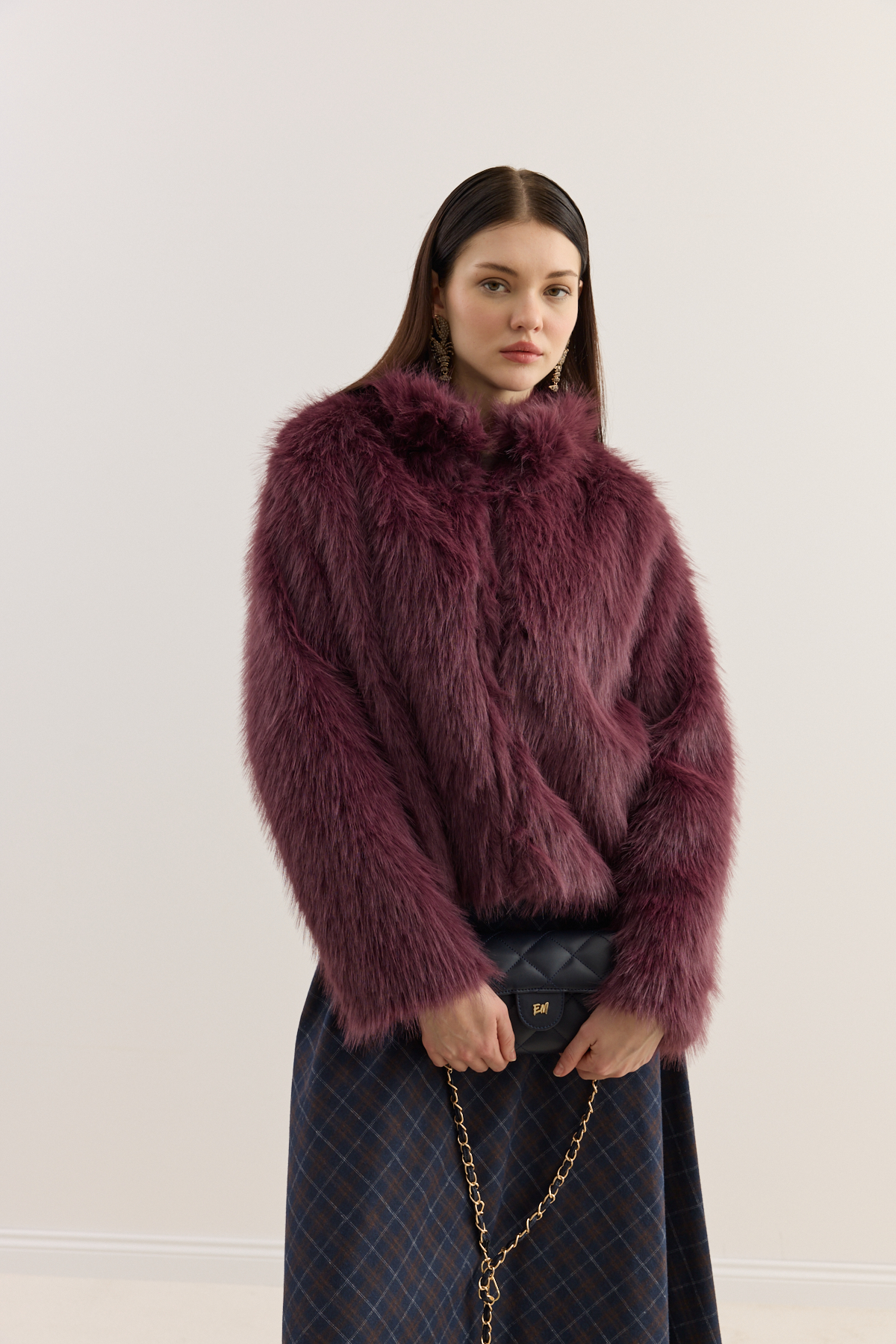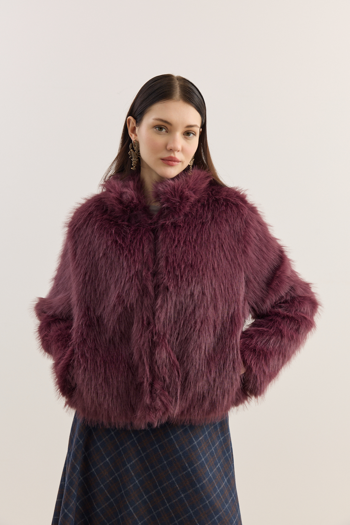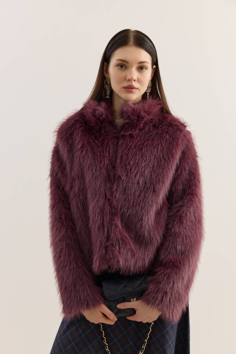 Dik Yakalı Premium Kürk Burgonya - 1