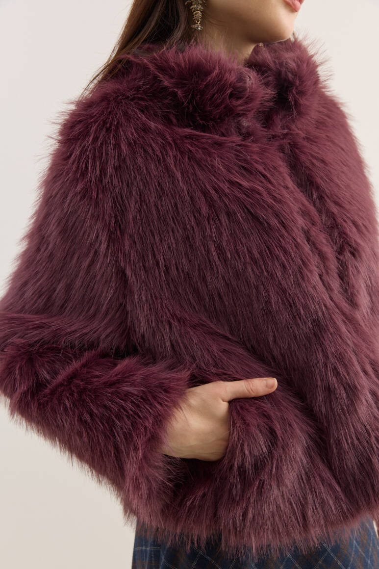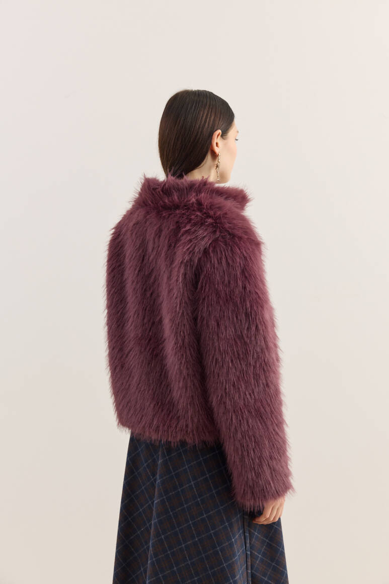 Dik Yakalı Premium Kürk Burgonya - 4