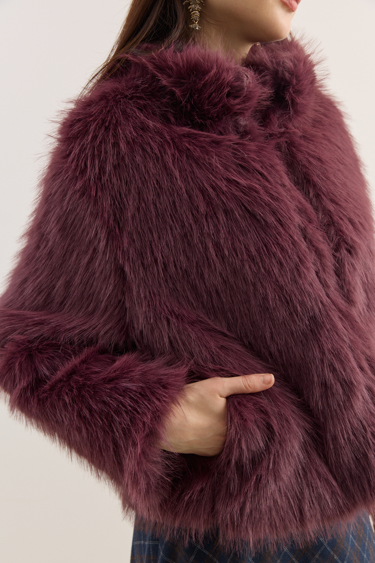 Dik Yakalı Premium Kürk Burgonya - 5