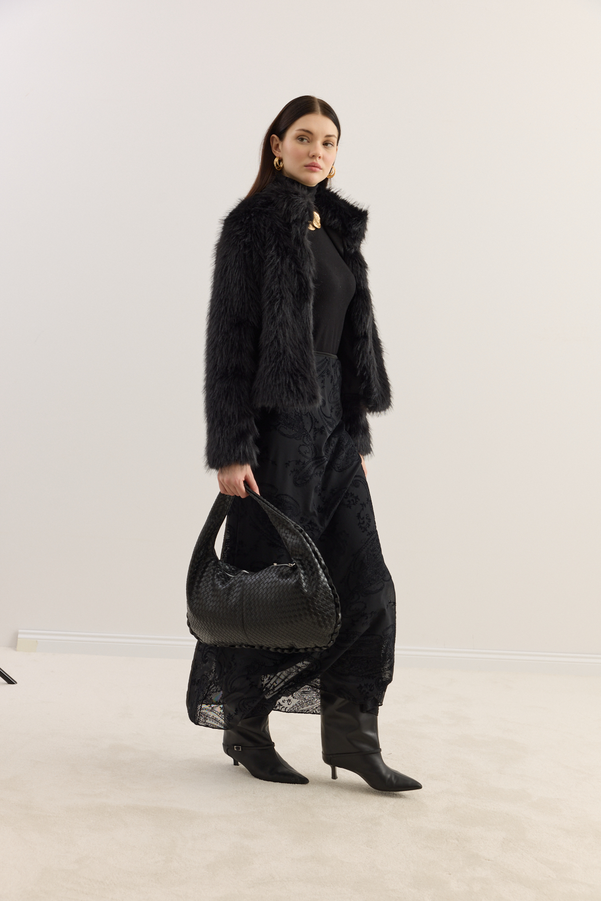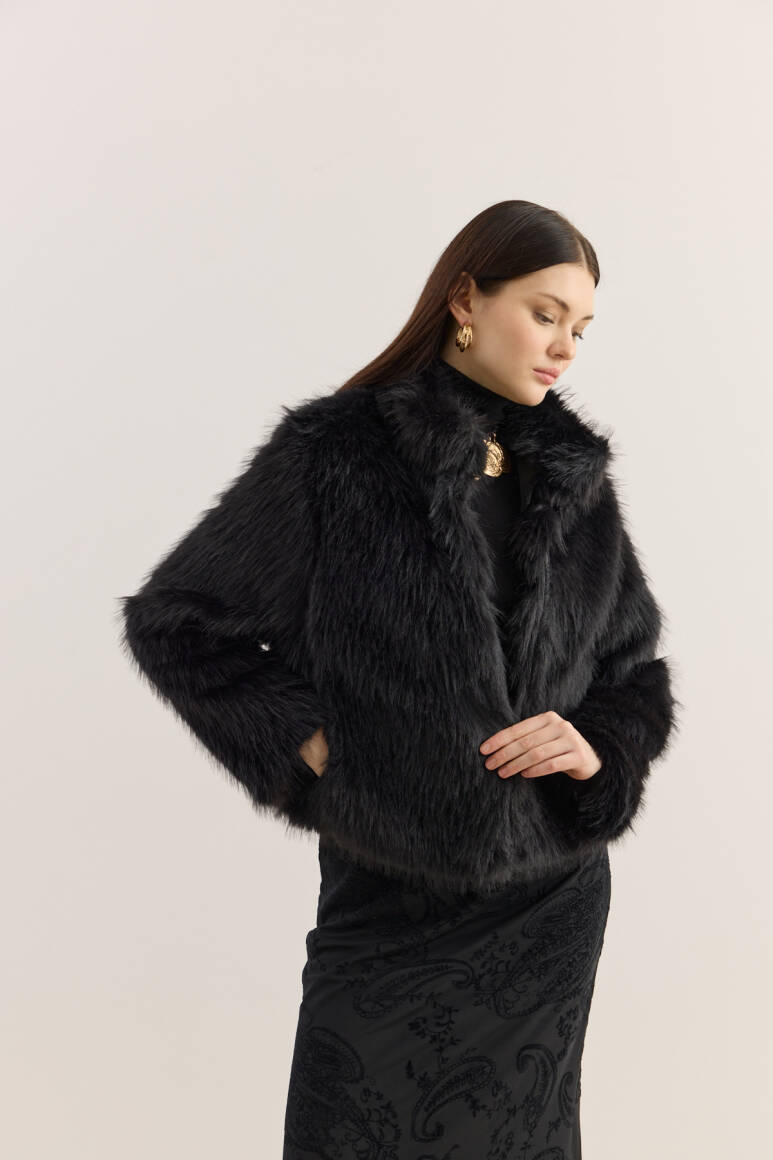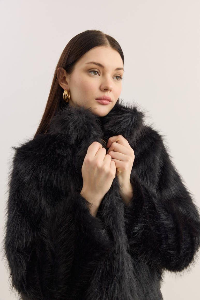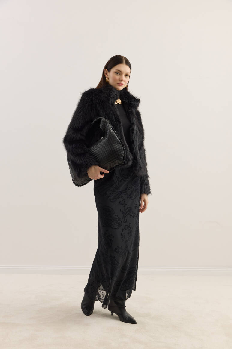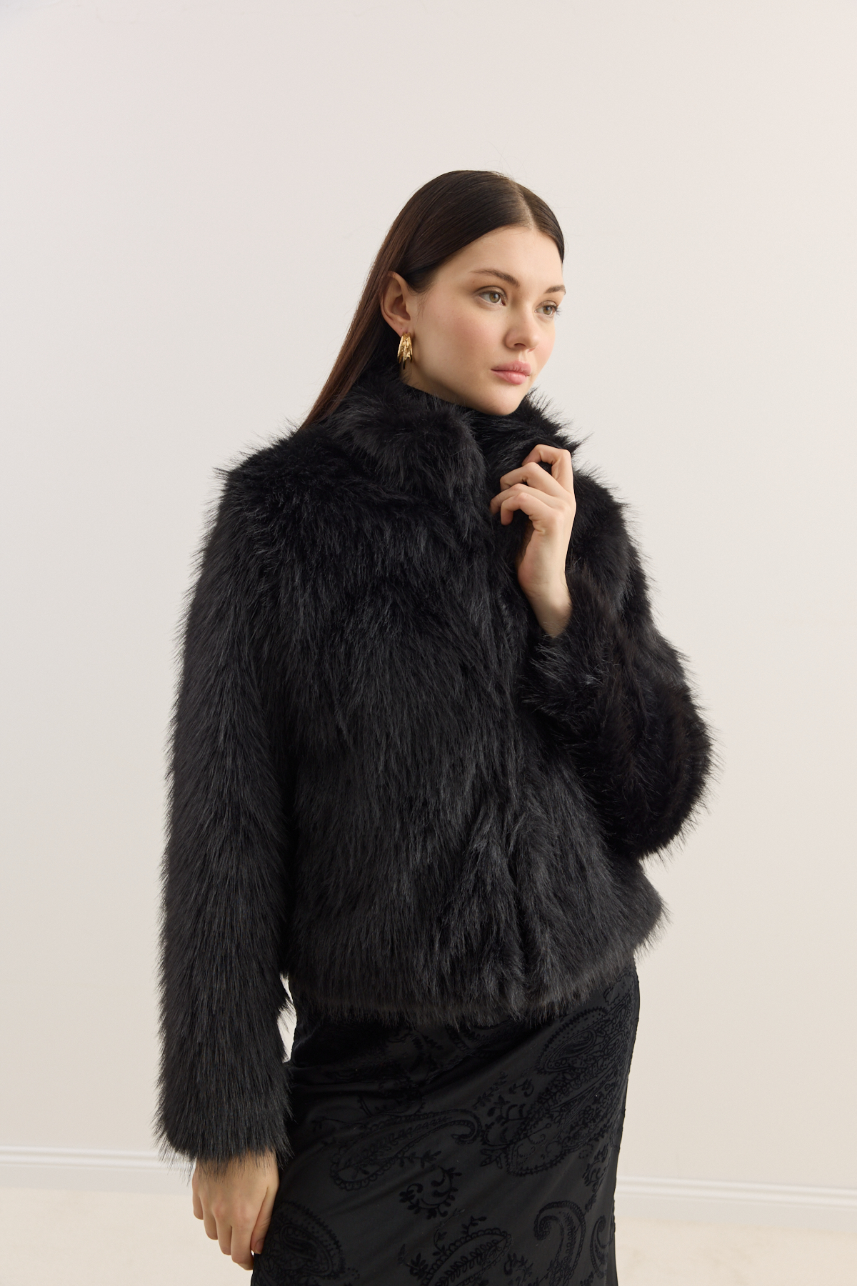 Zarif duruşu ve modern çizgileriyle öne çıkan dik yakalı premium kürk kaban. Yumuşak dokulu, hacimli kürk yapısı ile soğuk havalarda üstün sıcaklık sunarken; dik yaka detayı sofistike bir siluet oluşturur. İç kısmındaki tam astar konforu artırırken, gizli agraflı kapama detayı temiz ve kusursuz bir görünüm sağlar. Günlük şıklık ve özel davetler için güçlü bir tamamlayıcı.