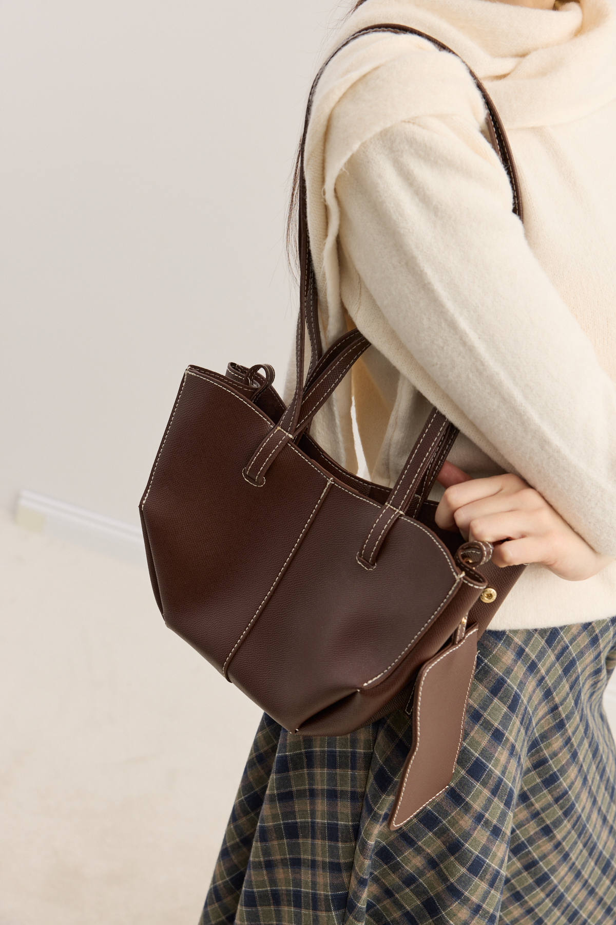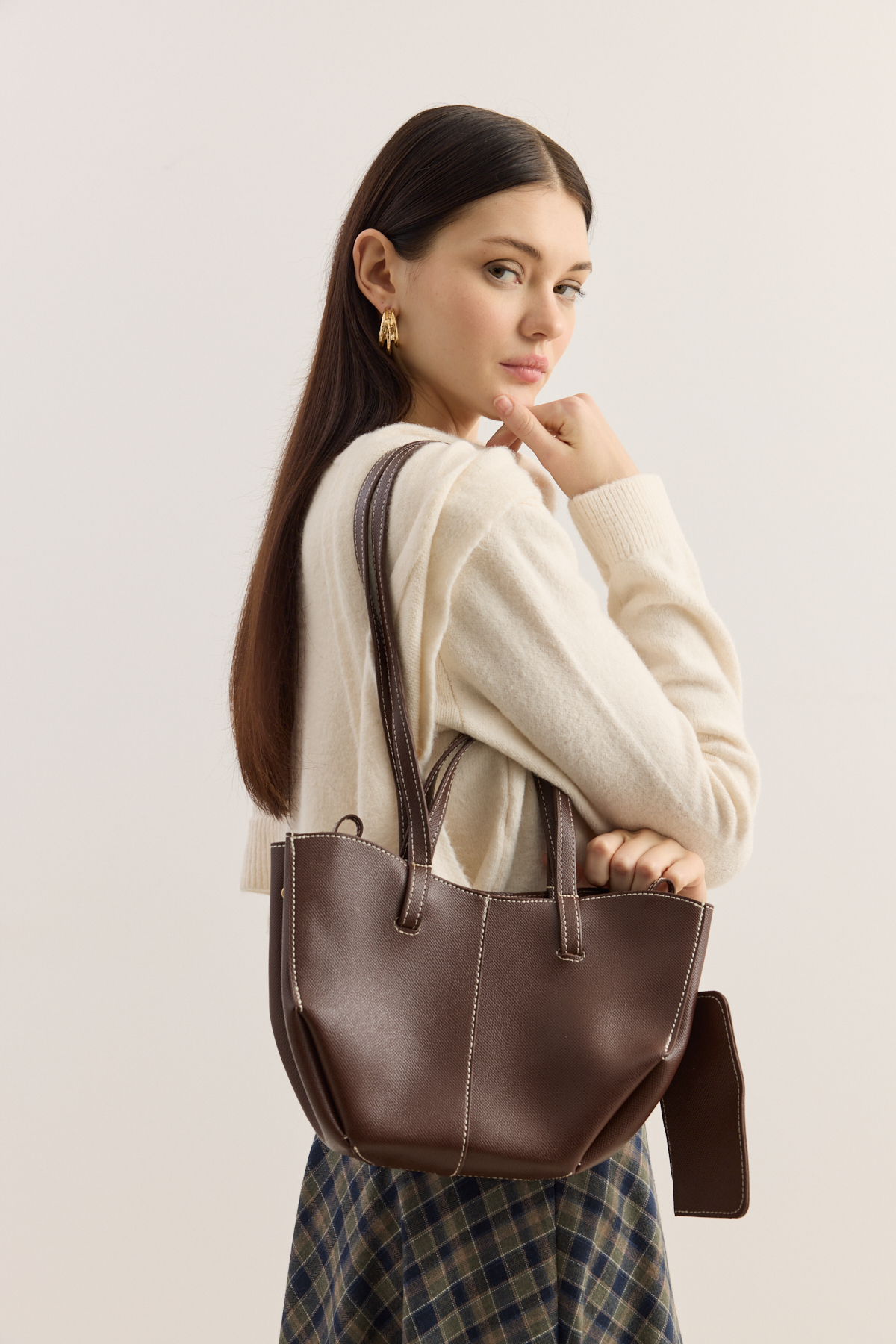 Zamansız tasarımıyla sade şıklığı yeniden tanımlayan tote çanta, modern stilin güçlü ama zahmetsiz bir yansıması. Çift askılı formu sayesinde elde ya da omuzda konforlu bir taşıma sunarken, dengeli yapısıyla gün boyu formunu korur. Çıt çıt kapamalı ana bölmesi pratik kullanım sağlarken, astarsız iç yapısı çantaya doğal, özgür ve hafif bir karakter kazandırır. Yan kısmında yer alan, küçük cüzdan detayı ise hem işlevsel hem de tasarıma ince bir zarafet katar; kartlarınız ve küçük eşyalarınız için şık bir alan sunar.