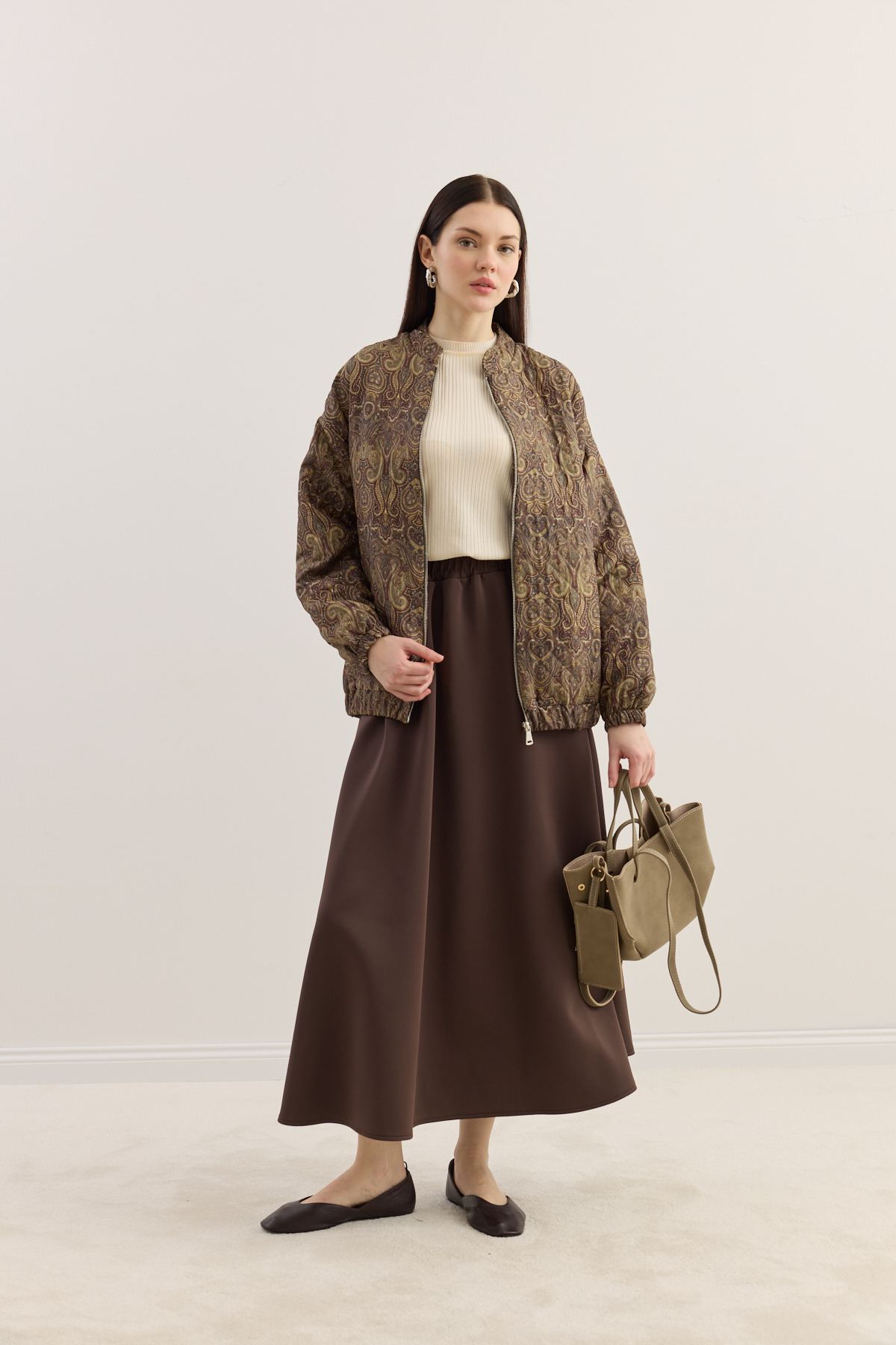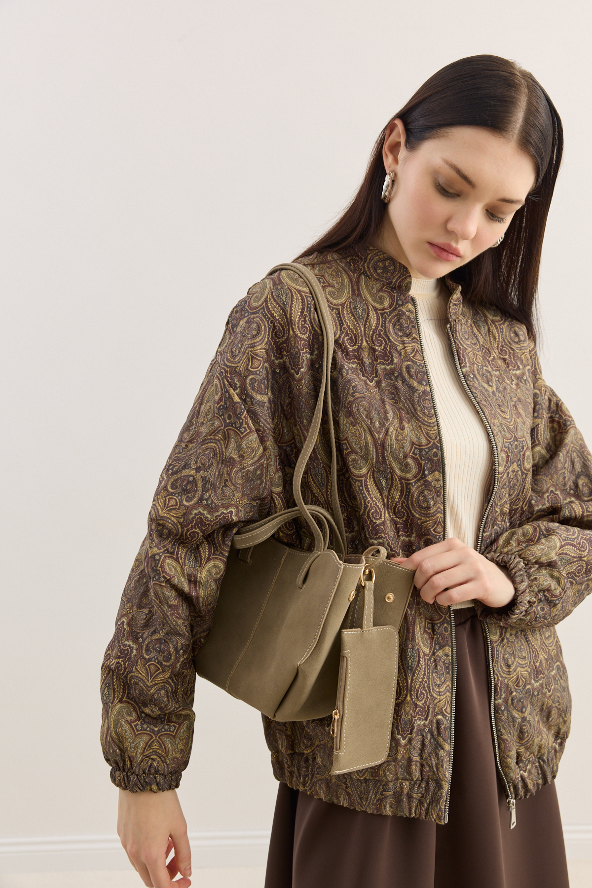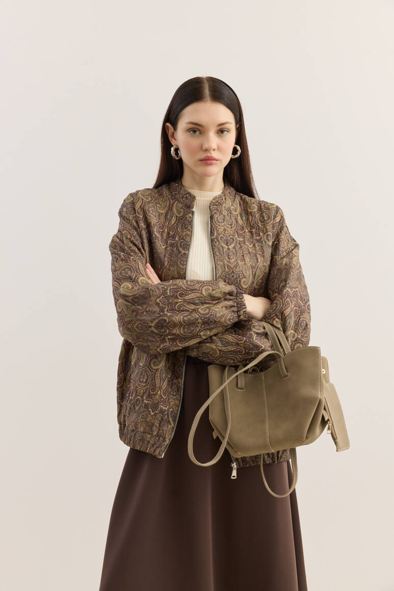 Zamansız tasarımıyla sade şıklığı yeniden tanımlayan tote çanta, modern stilin güçlü ama zahmetsiz bir yansıması. Çift askılı formu sayesinde elde ya da omuzda konforlu bir taşıma sunarken, dengeli yapısıyla gün boyu formunu korur. Çıt çıt kapamalı ana bölmesi pratik kullanım sağlarken, astarsız iç yapısı çantaya doğal, özgür ve hafif bir karakter kazandırır. Yan kısmında yer alan, küçük cüzdan detayı ise hem işlevsel hem de tasarıma ince bir zarafet katar; kartlarınız ve küçük eşyalarınız için şık bir alan sunar.