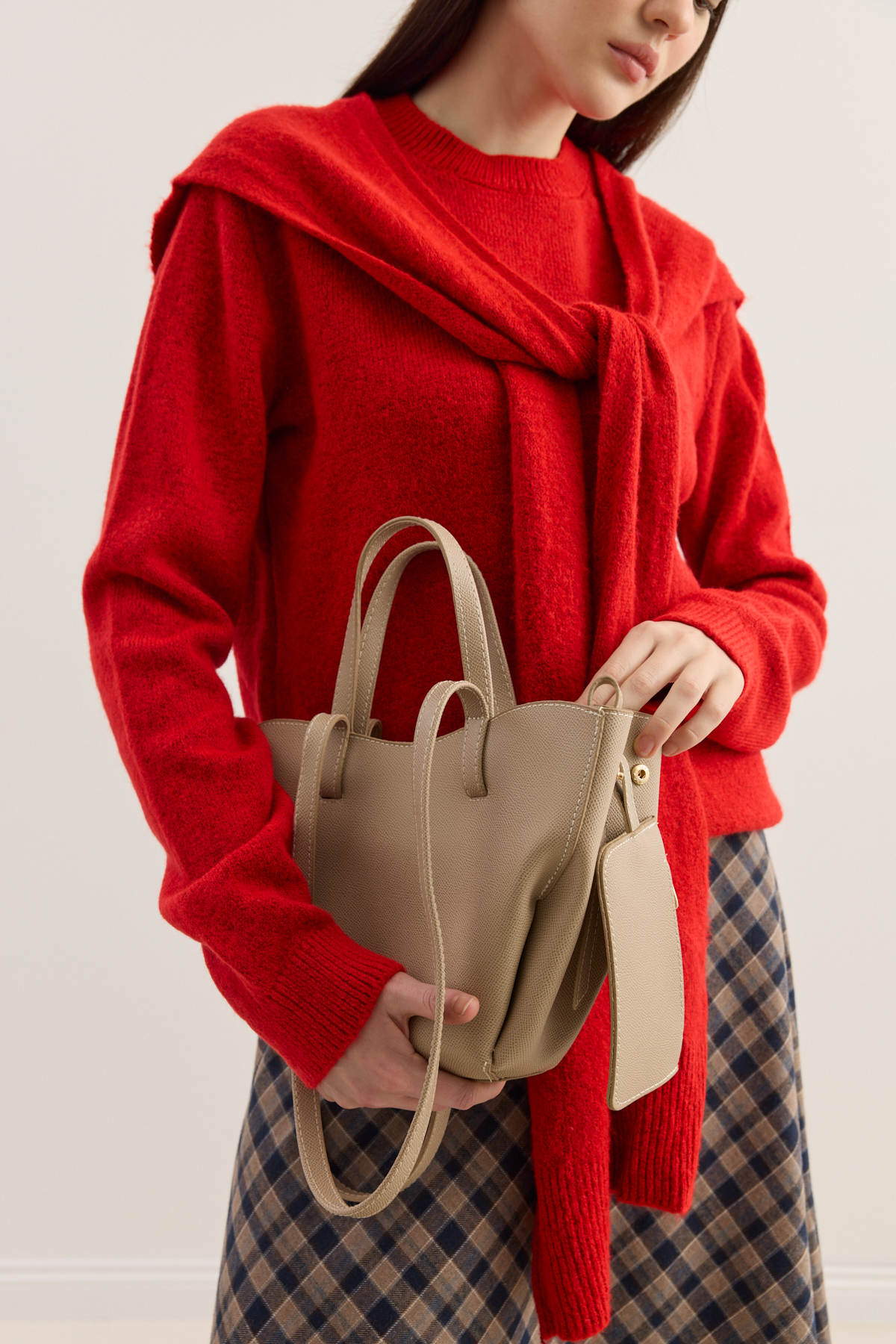 Dikiş Detaylı Mini Tote Çanta Vizon - 4