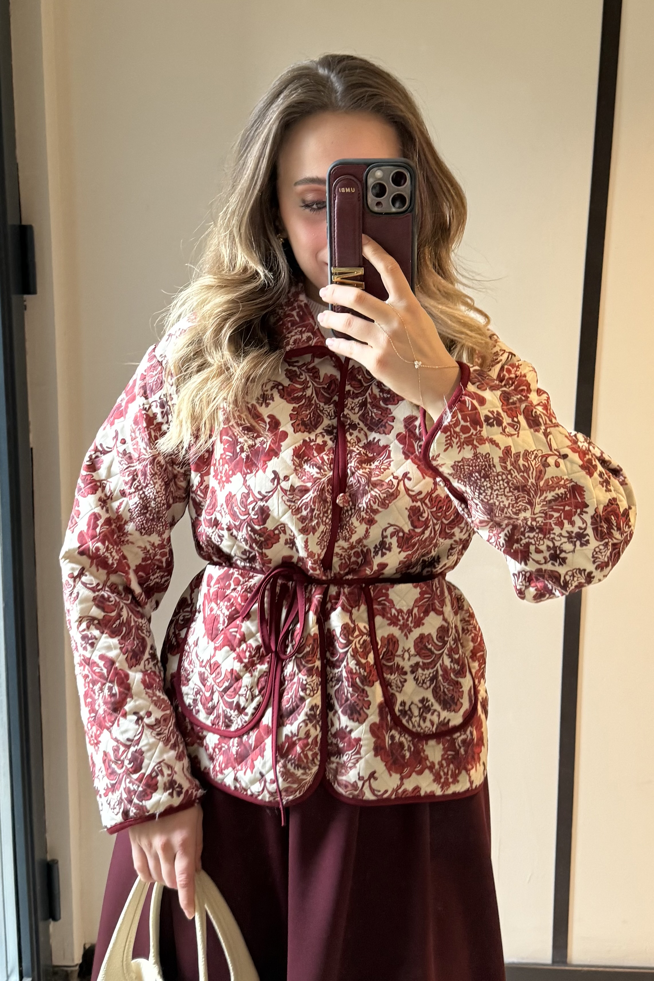 Etnik Desenli Kapitone Ceket Bordo - 1