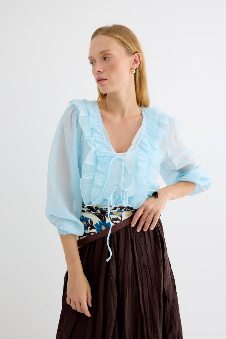 Fırfırlı Kimono Bluz Soft Mavi