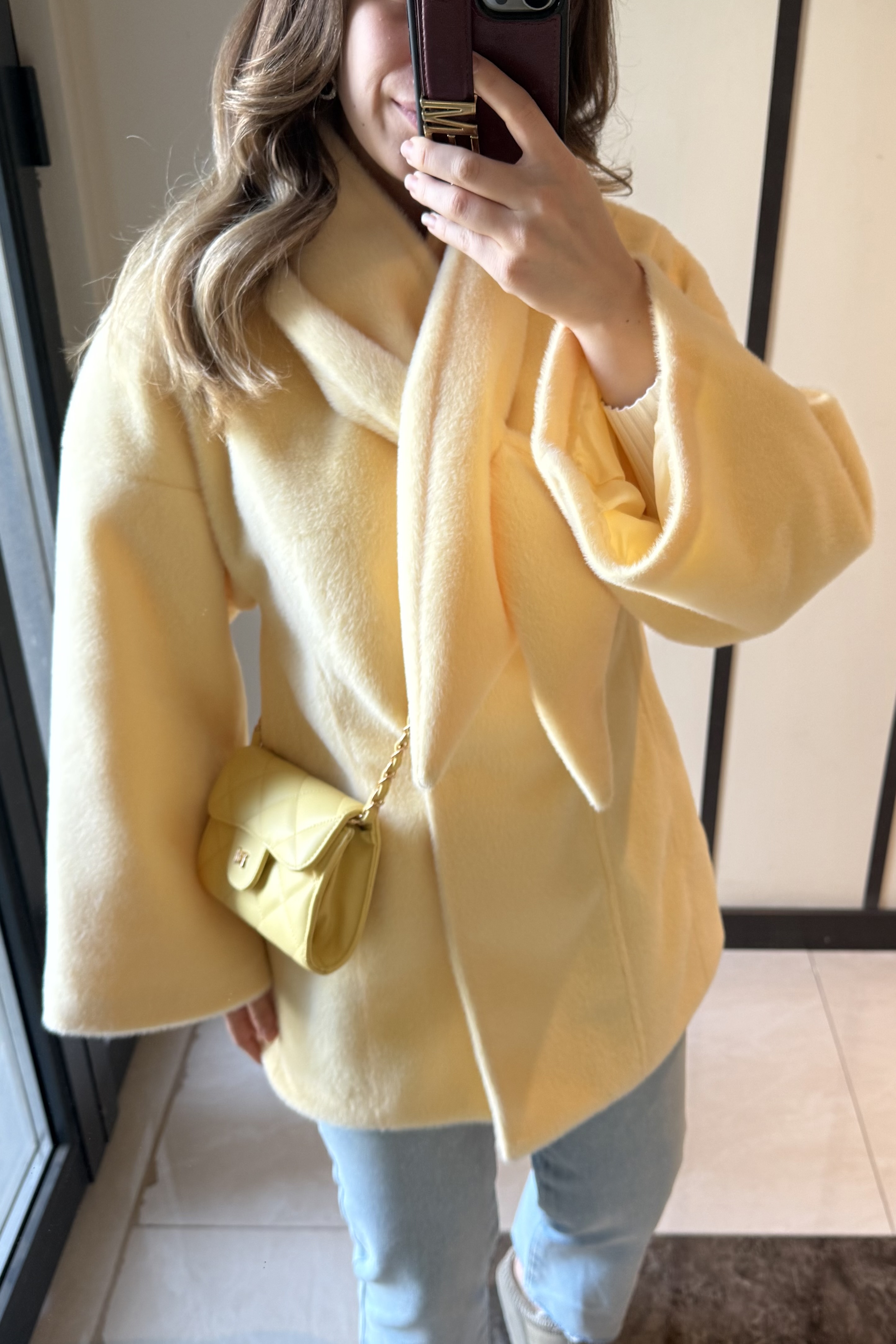 Fularlı Oturtmalı Midi Fox Kaban Soft Sarı - 9