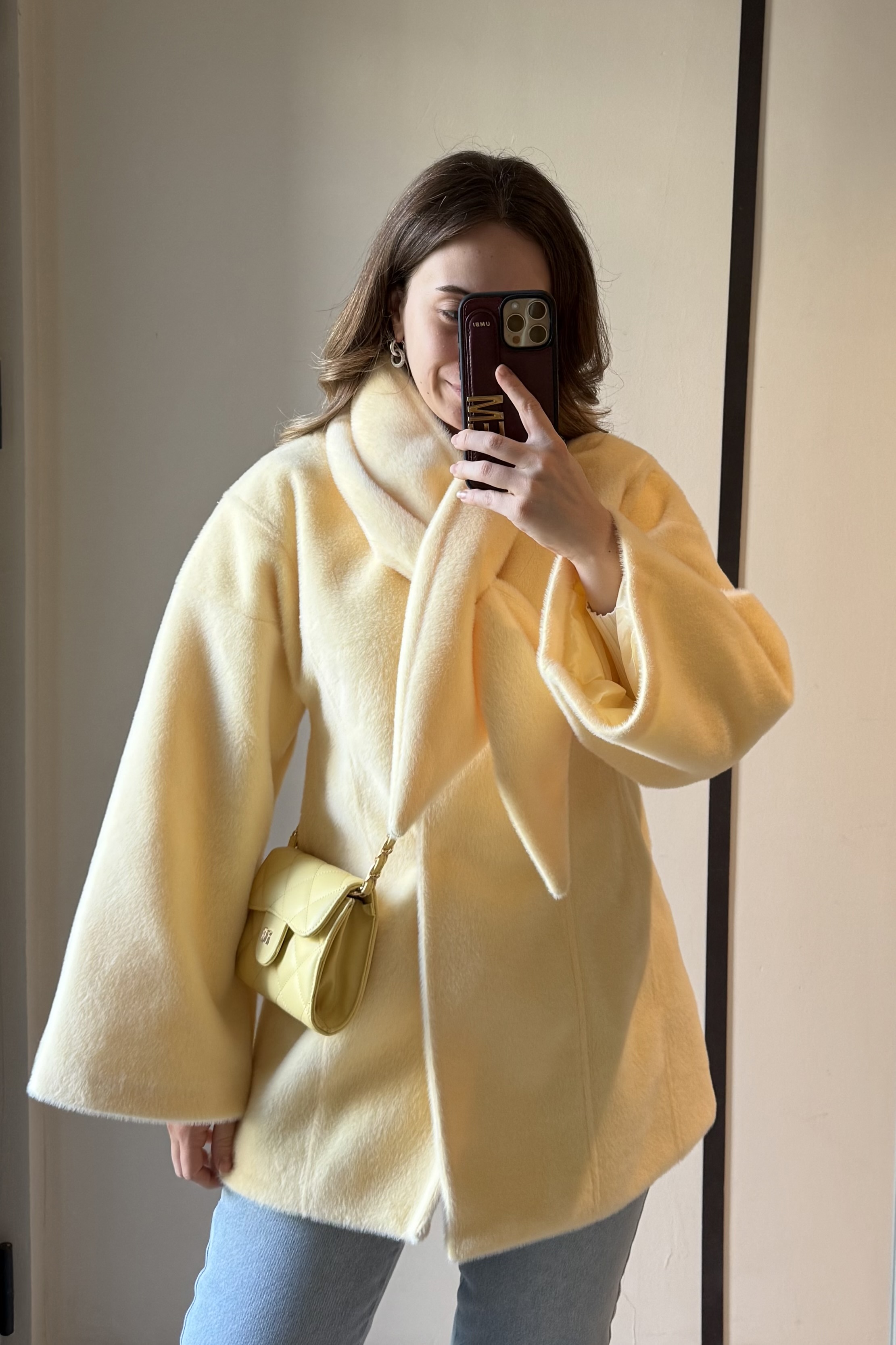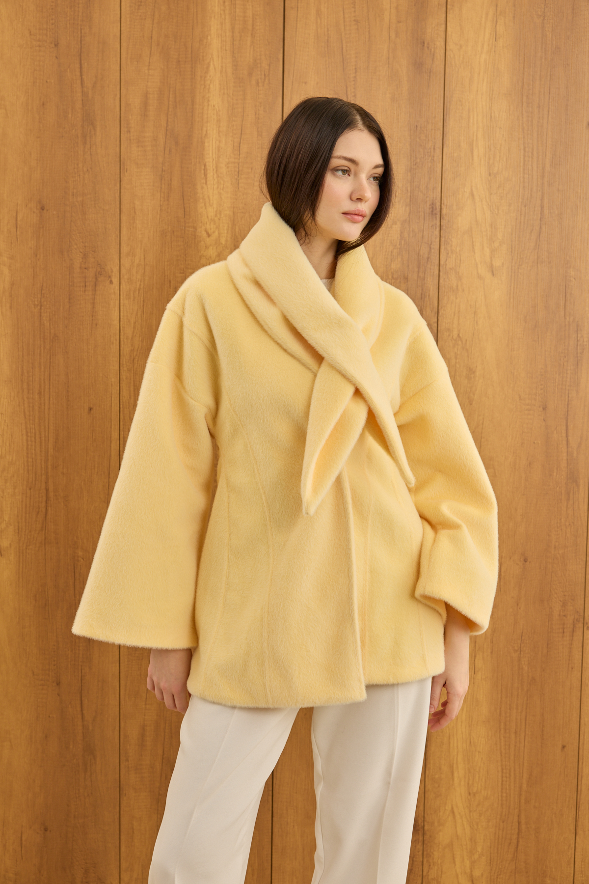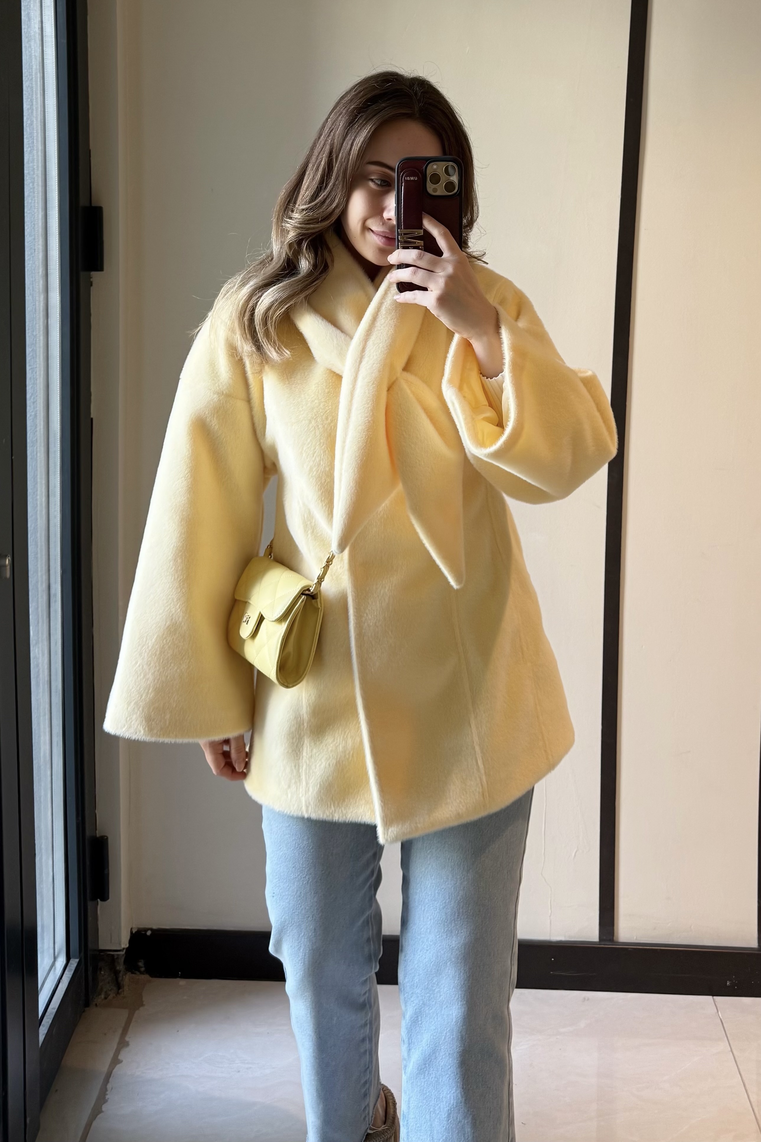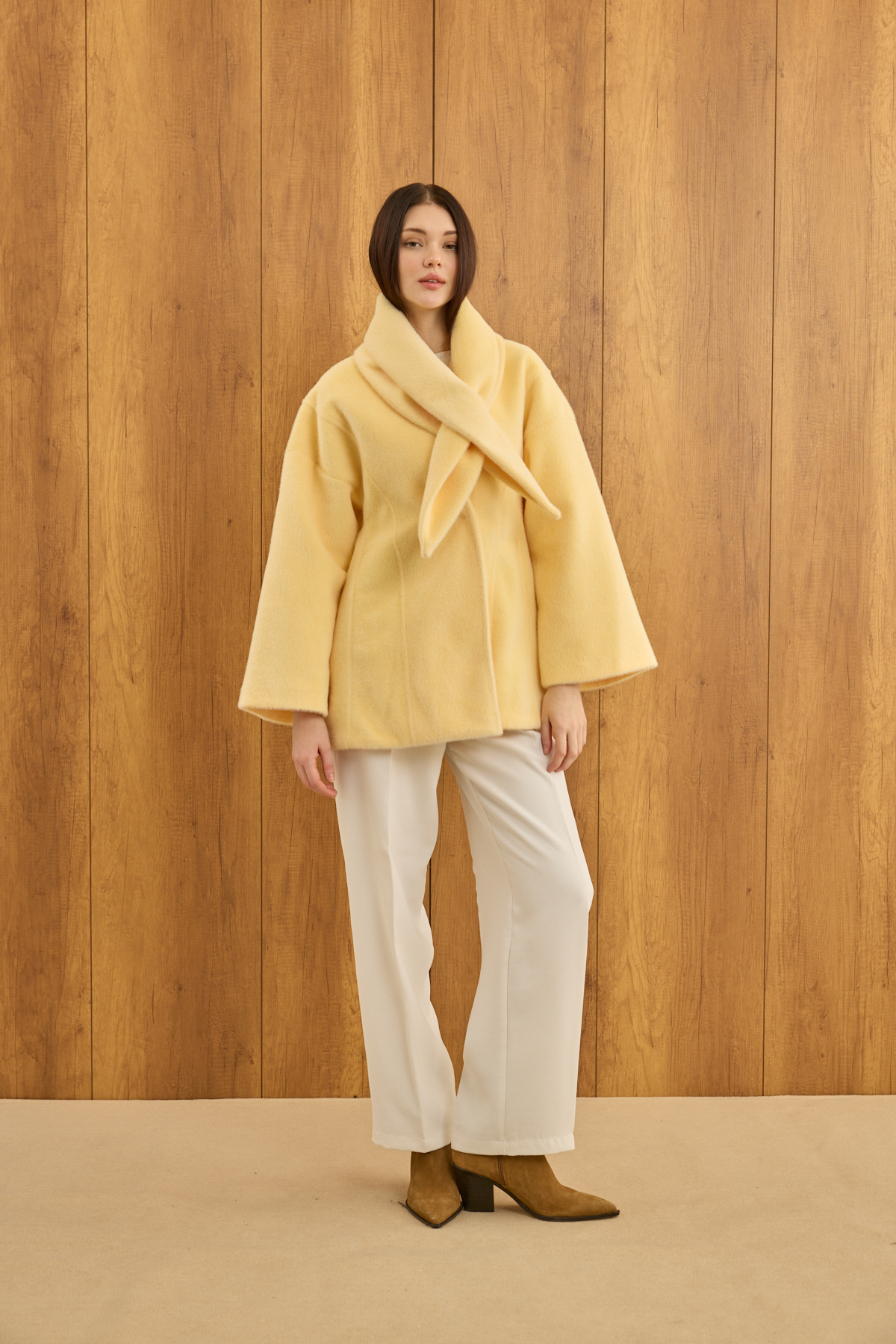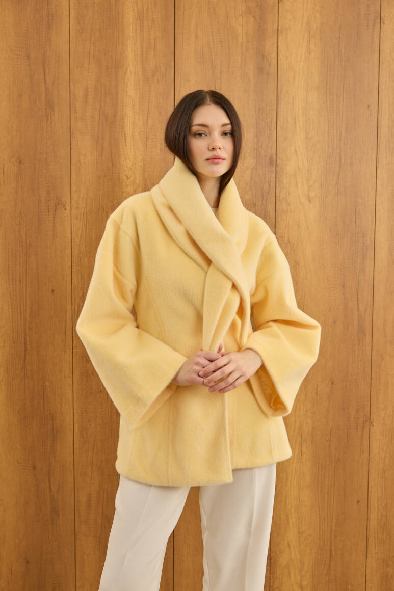 Fularlı Oturtmalı Midi Fox Kaban Soft Sarı - 12