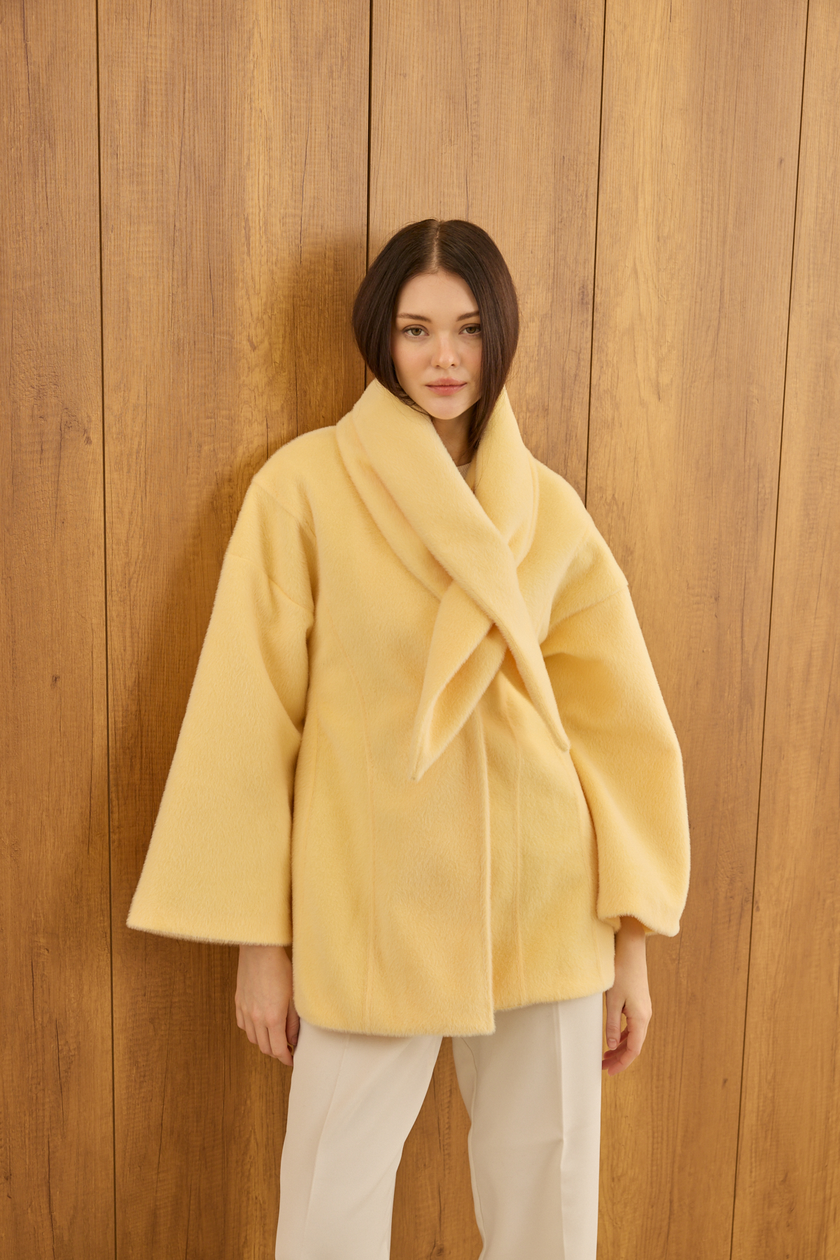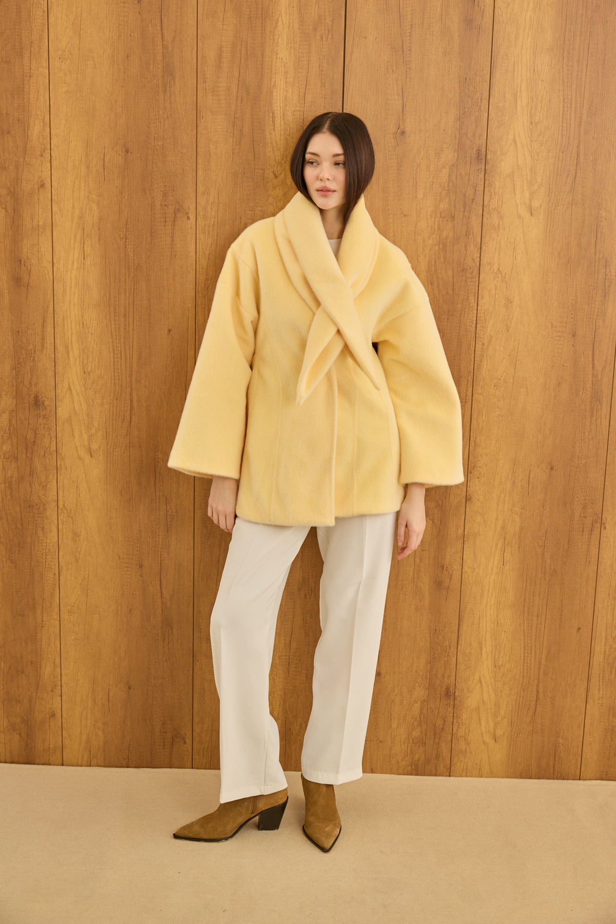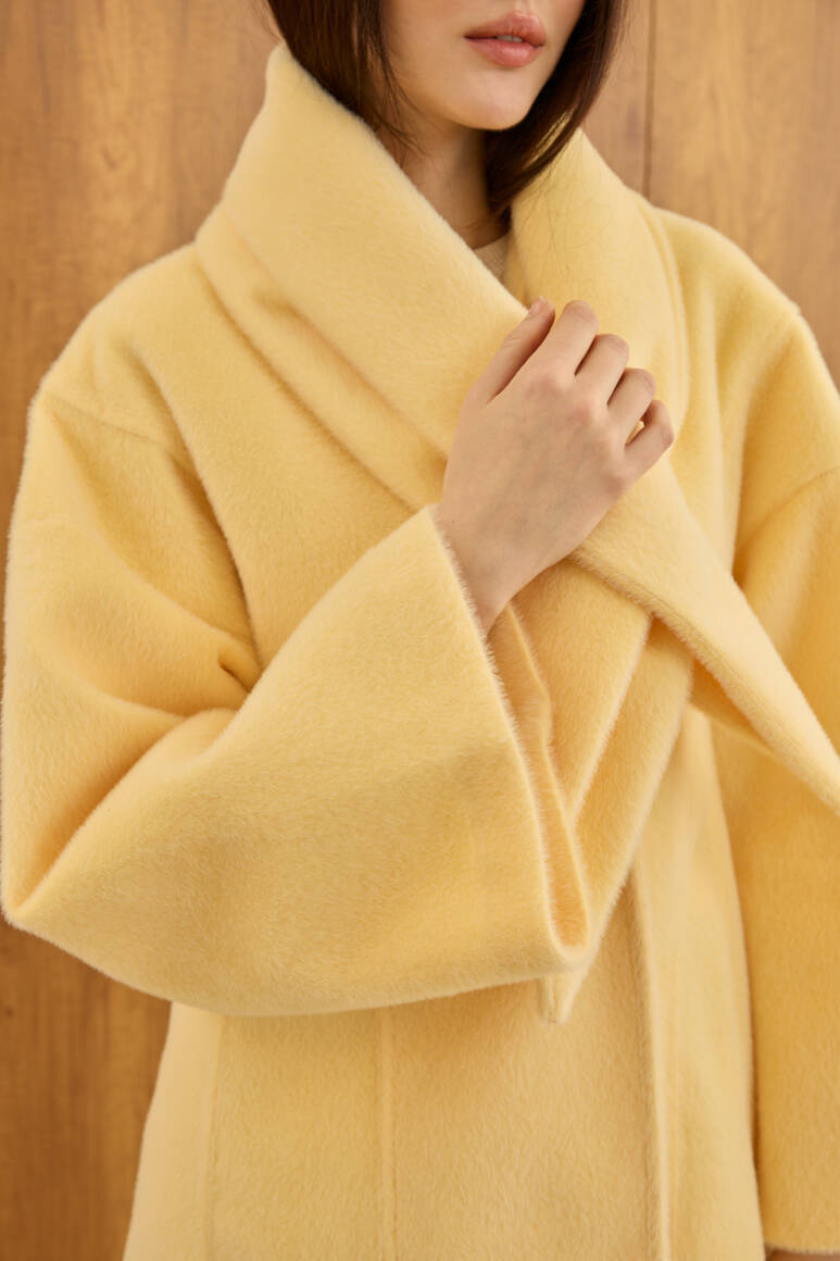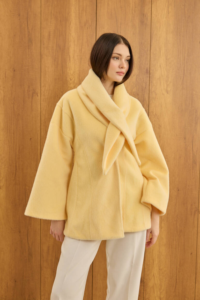 Fularlı Oturtmalı Midi Fox Kaban Soft Sarı - 4