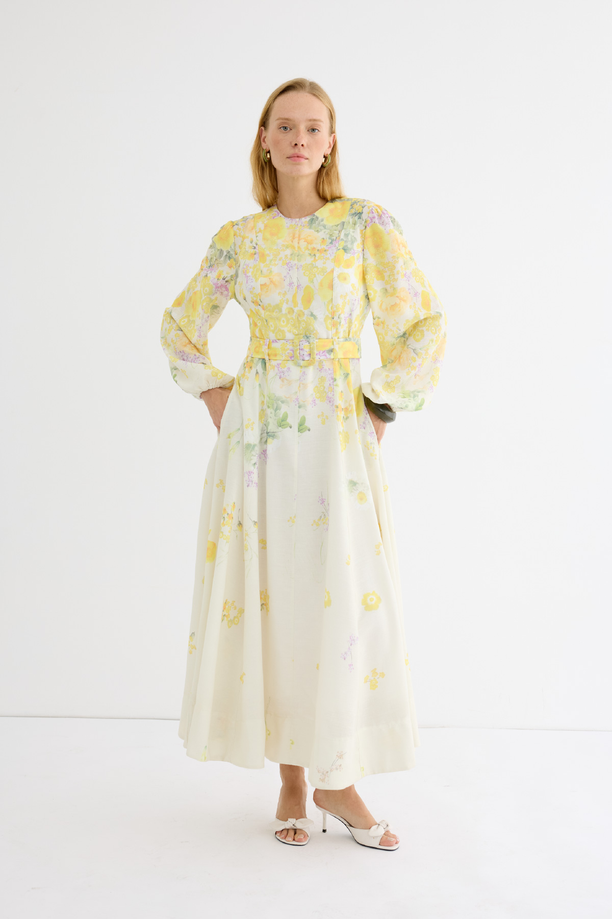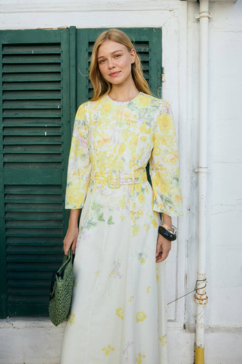 Zarafetin ve romantizmin buluştuğu bu çiçek desenli uzun elbise, yumuşak renk geçişleriyle bahar esintisini stilinize taşıyor. Hafif yapılı ve dökümlü kumaşı ile gün boyu konfor sunarken, kuşak detayıyla vücut formunu zarifçe vurgular. Balon formundaki uzun kolları ve belden oturtmalı kesimiyle feminen bir siluet oluşturur.