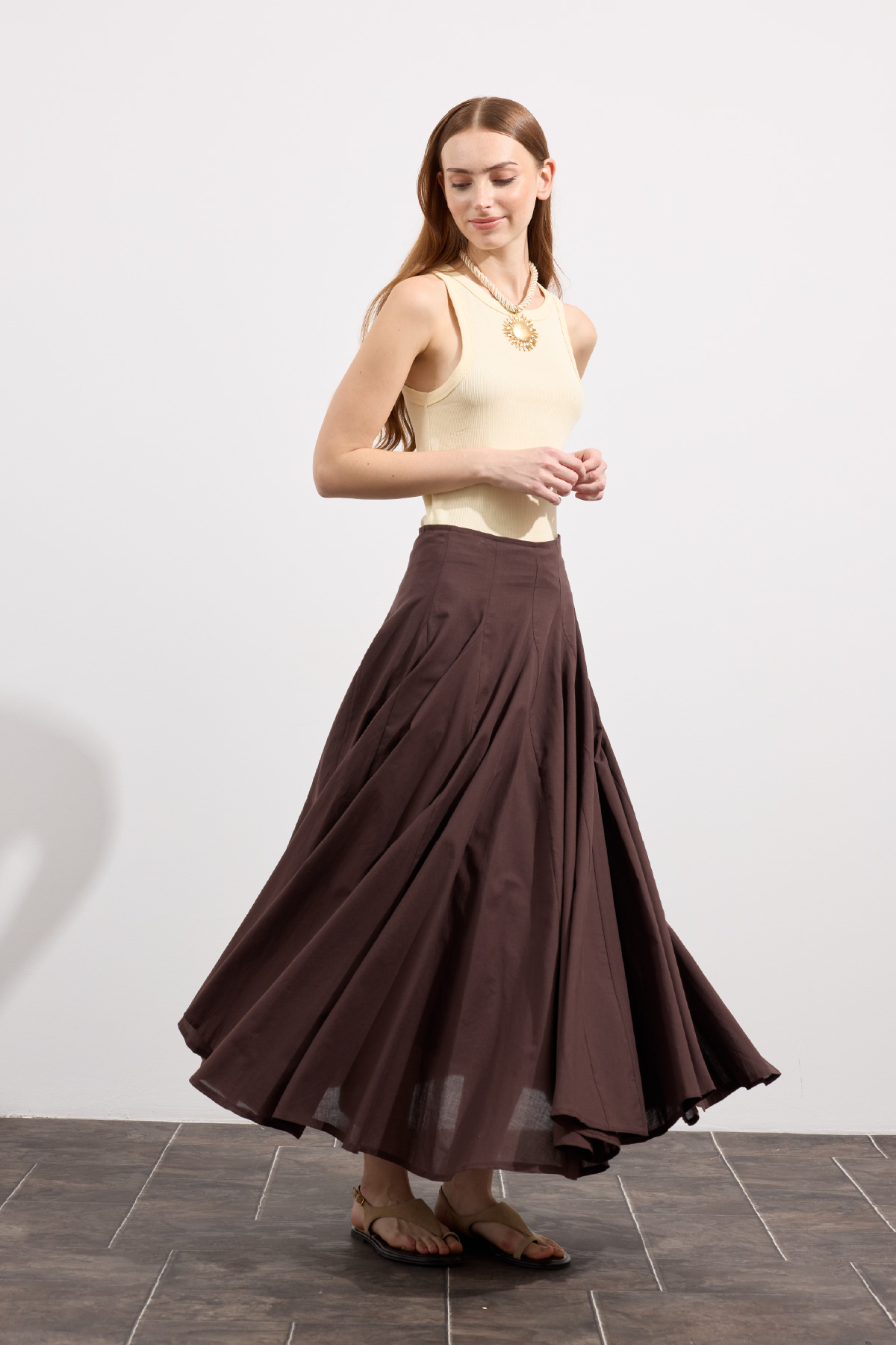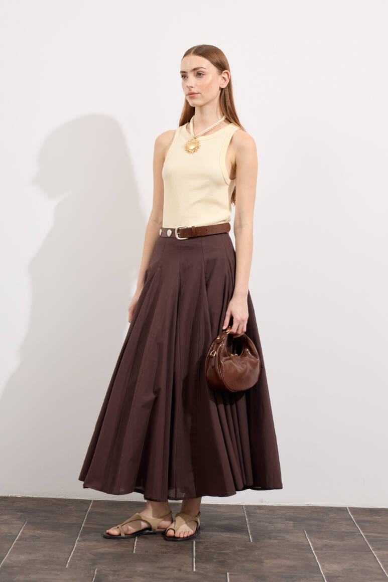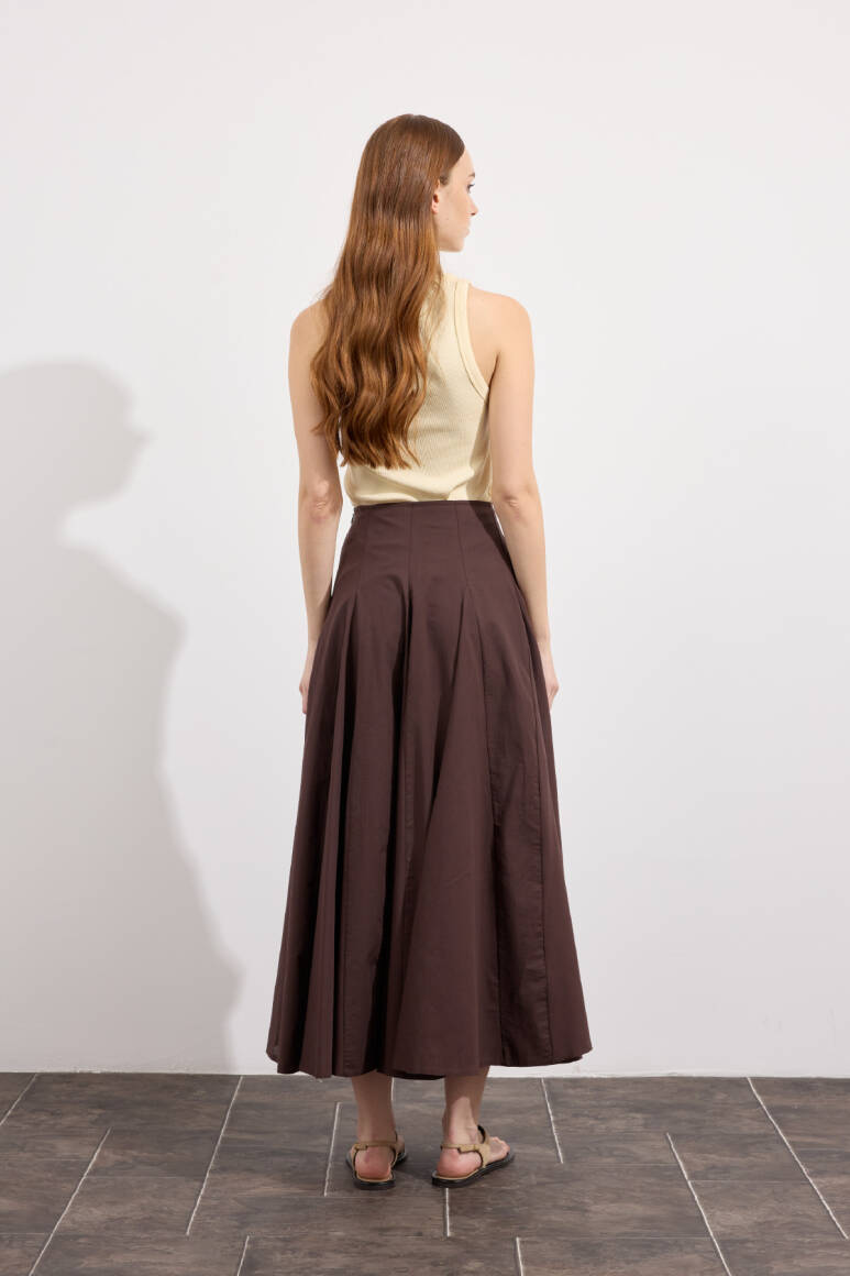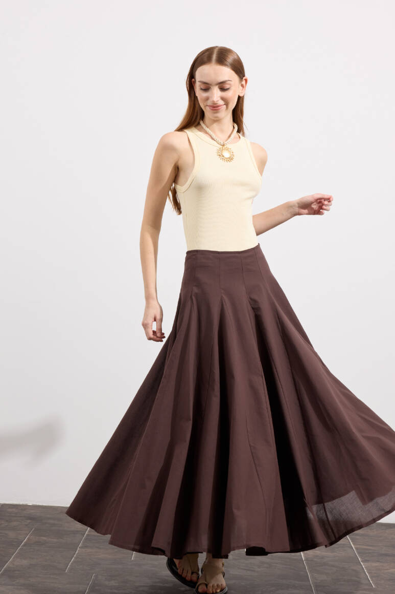 Tam tur özel kloş form, godeli dikiş, bel kısmı düz manşetli, fermuarlı, iç kısmı pamuk astarlı, hareketli ve hacimli doku, Günlük ya da özel gün kombinlerine uygun.
