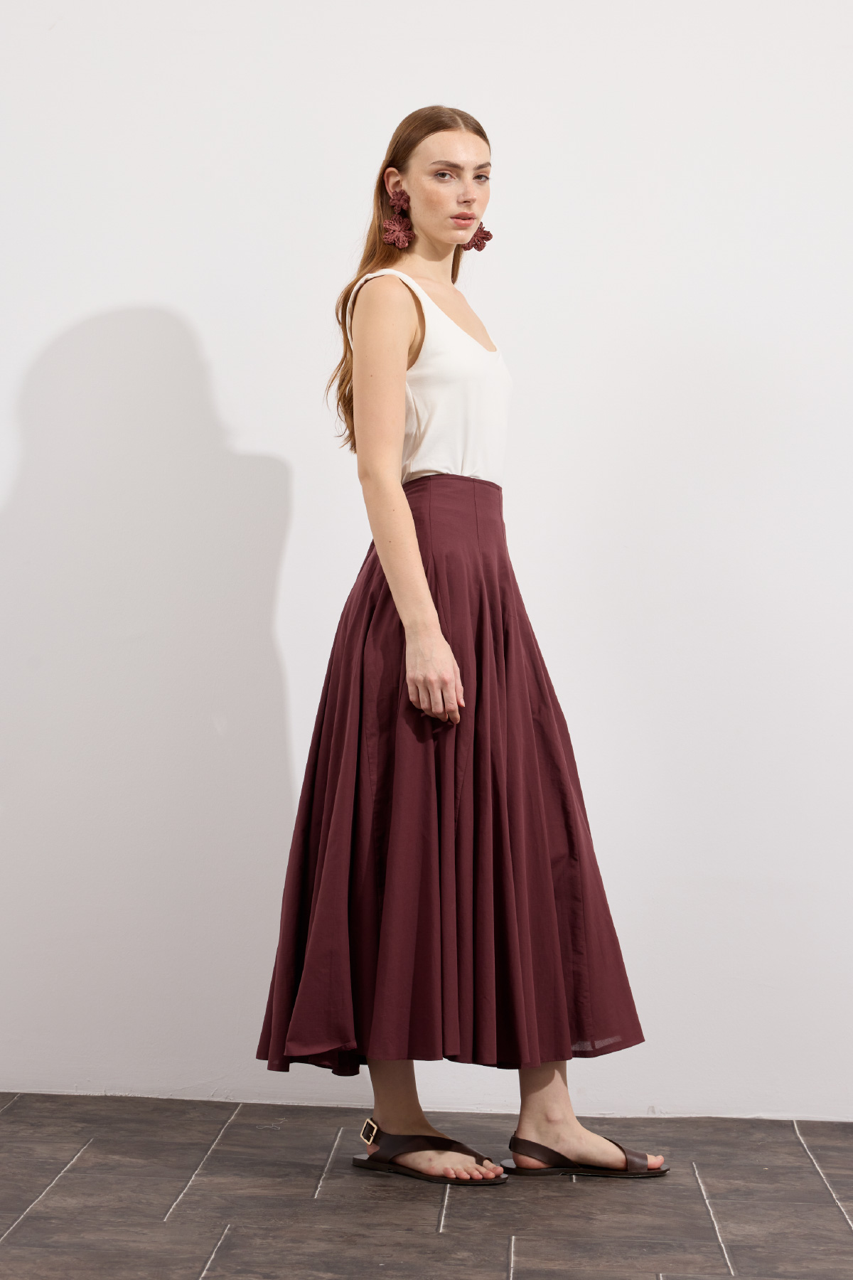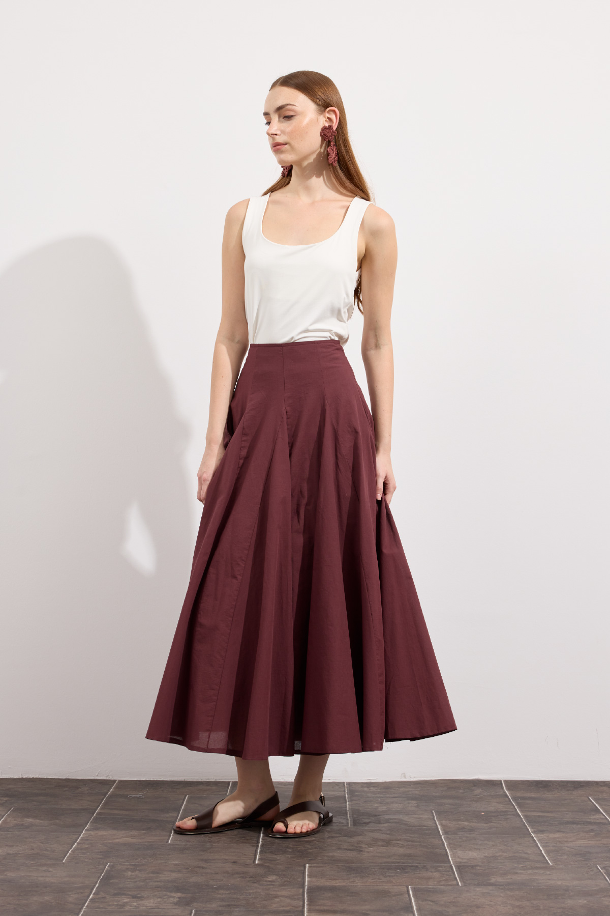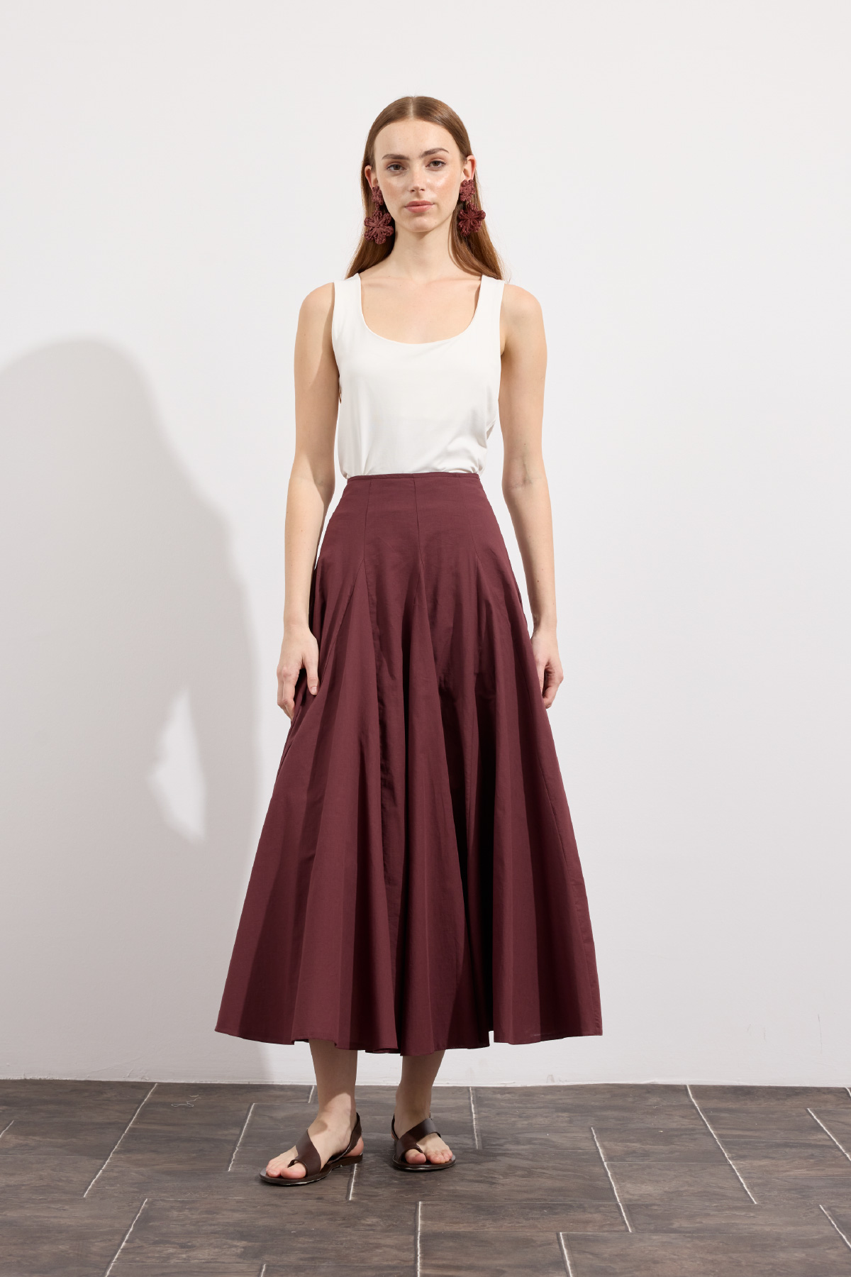 Tam tur özel kloş form, godeli dikiş, bel kısmı düz manşetli, fermuarlı, iç kısmı pamuk astarlı, hareketli ve hacimli doku, Günlük ya da özel gün kombinlerine uygun.
