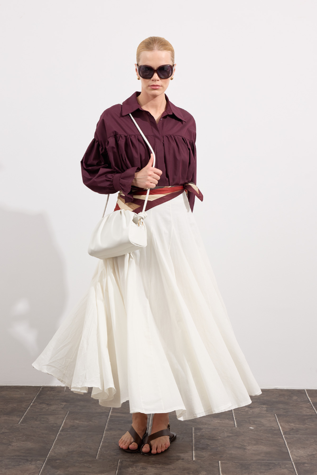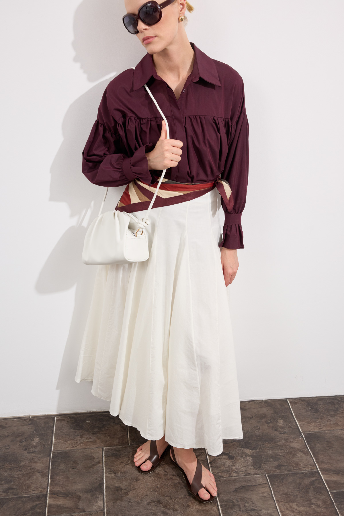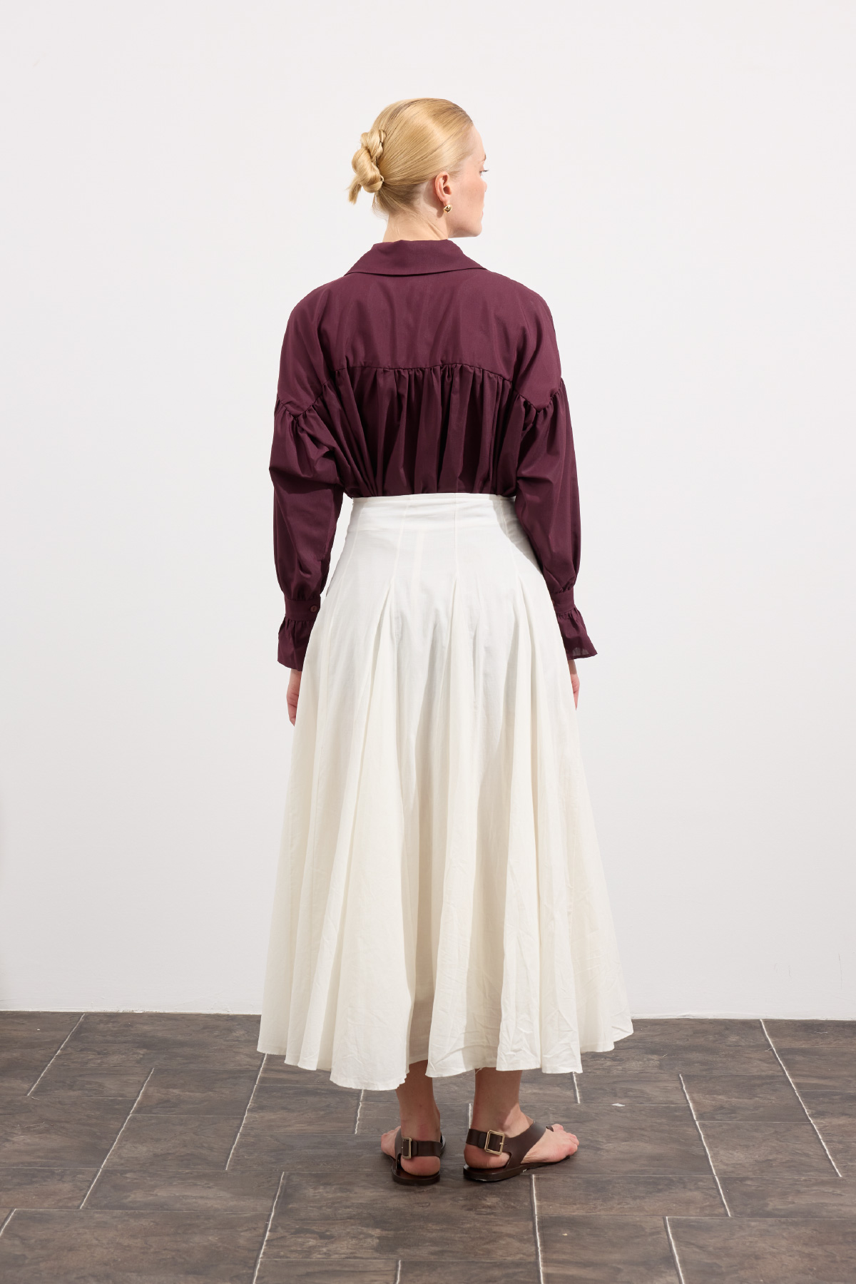 Tam tur özel kloş form, godeli dikiş, bel kısmı düz manşetli, fermuarlı, iç kısmı pamuk astarlı, hareketli ve hacimli doku, Günlük ya da özel gün kombinlerine uygun.