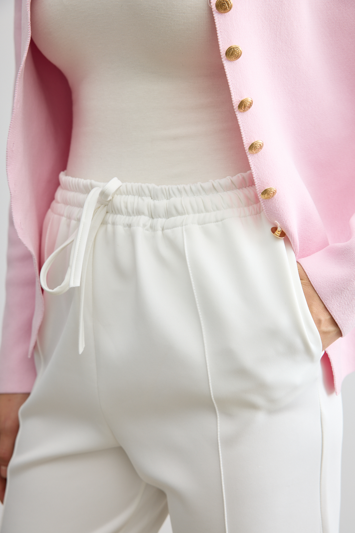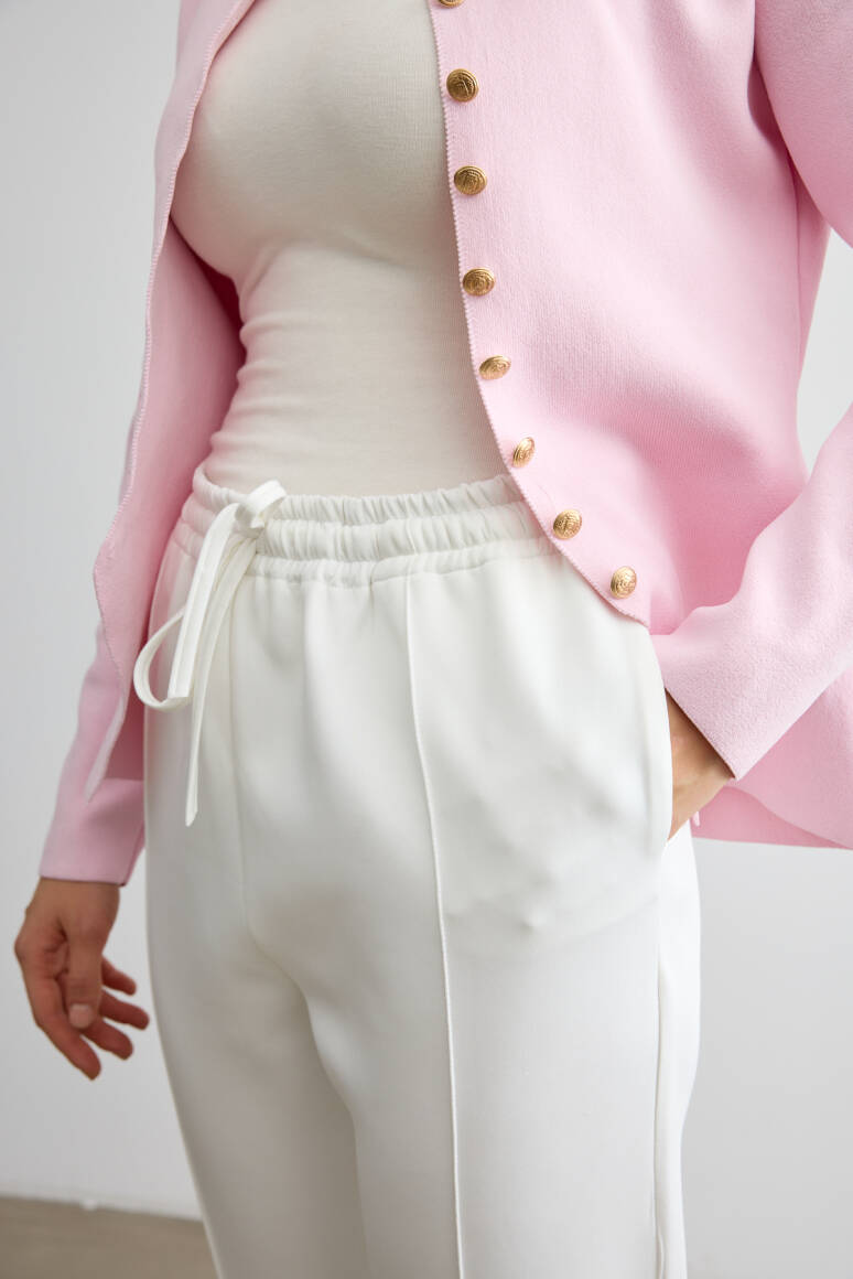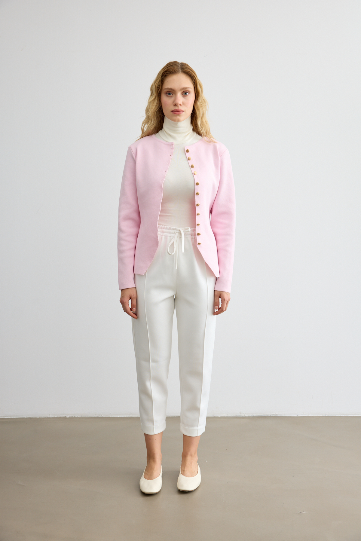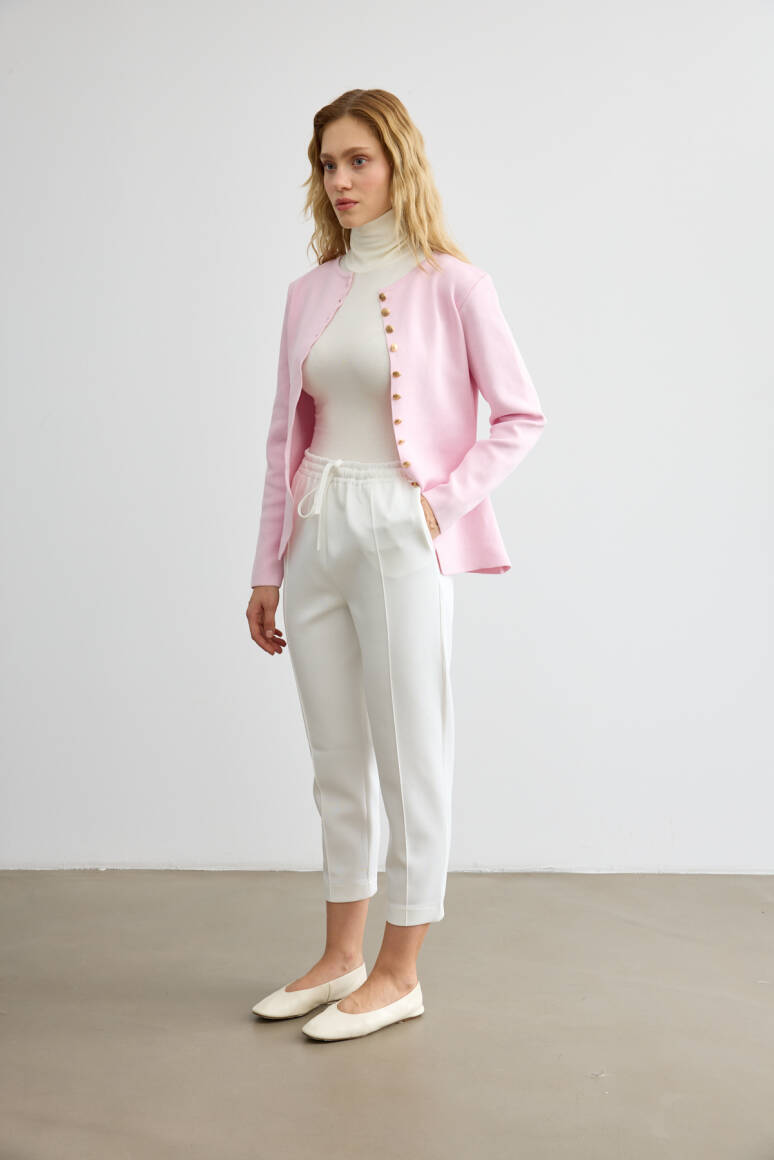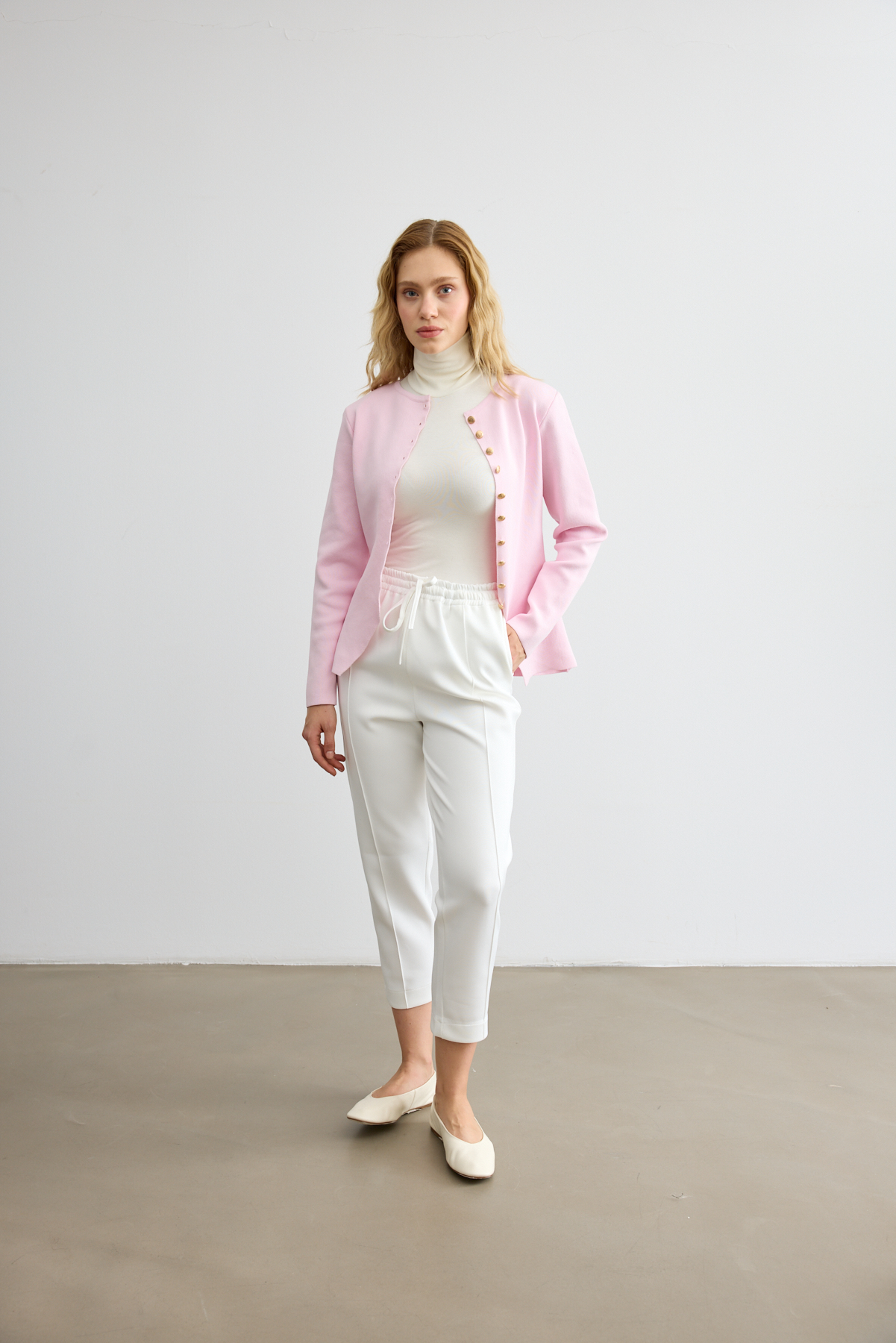 Yumuşak hatları ve hafif formu ile havuç kesim pantolon, rahatlığı şıklıkla buluşturuyor. Yüksek bel tasarımı ve daralan paçaları, modern bir siluet sunarken gündelik ve özel kombinlerde zarif bir duruş sağlıyor.