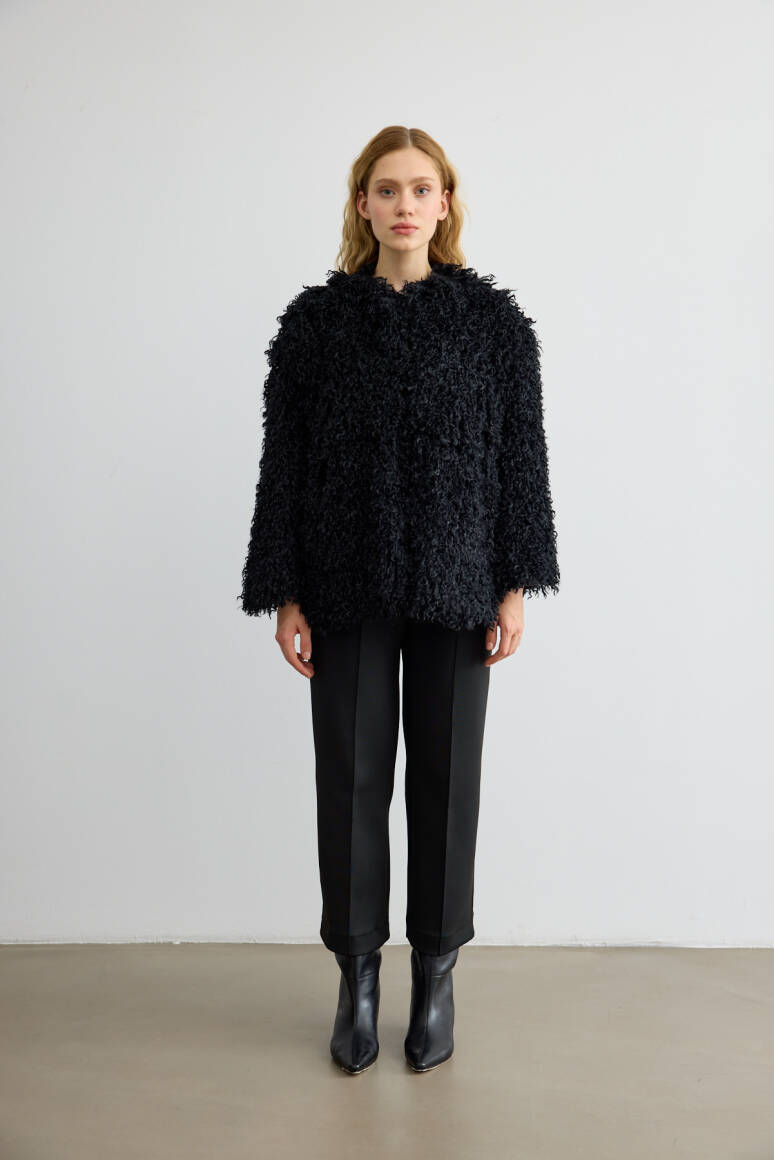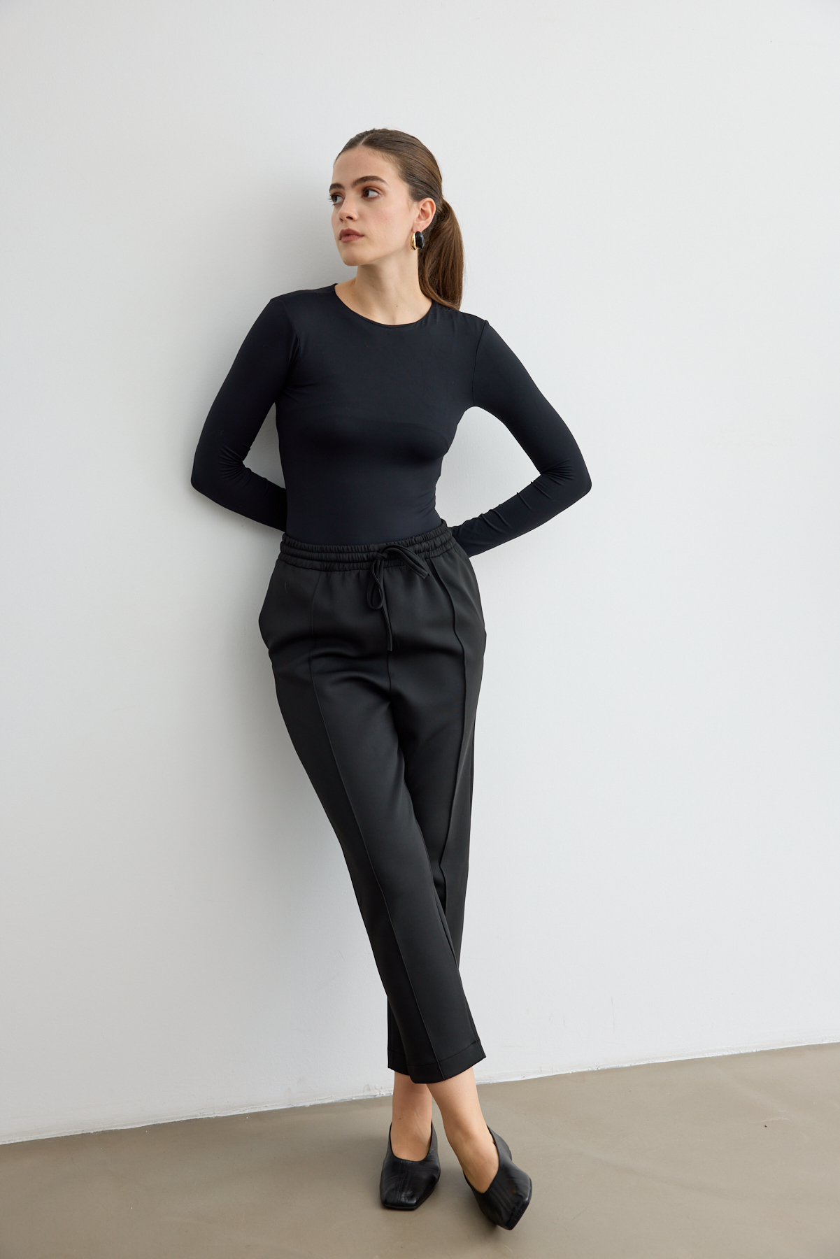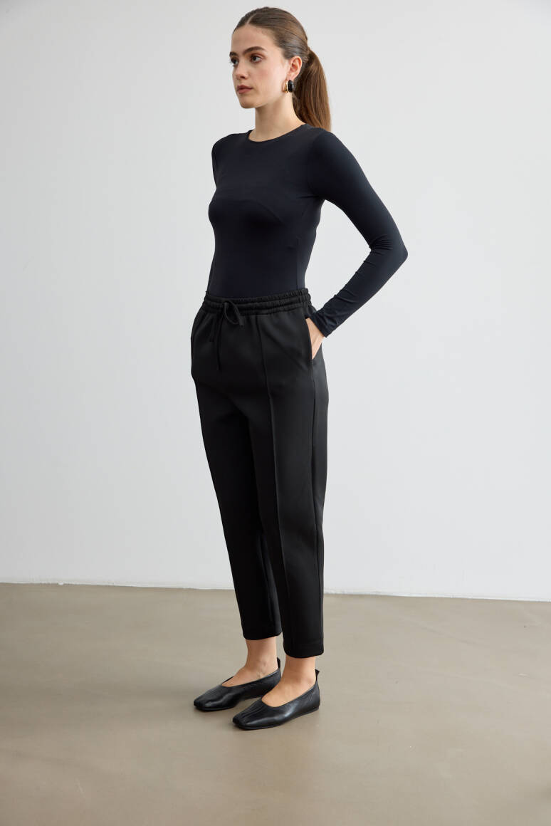 Yumuşak hatları ve hafif formu ile havuç kesim pantolon, rahatlığı şıklıkla buluşturuyor. Yüksek bel tasarımı ve daralan paçaları, modern bir siluet sunarken gündelik ve özel kombinlerde zarif bir duruş sağlıyor.