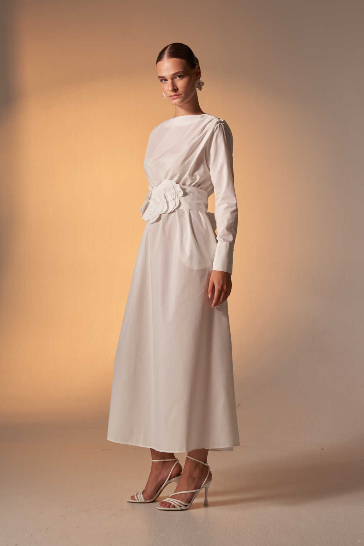 Ürün içeriğine kendi kumaşından kemeri dahildir.