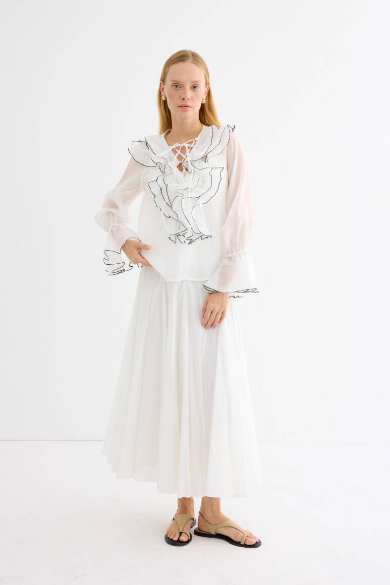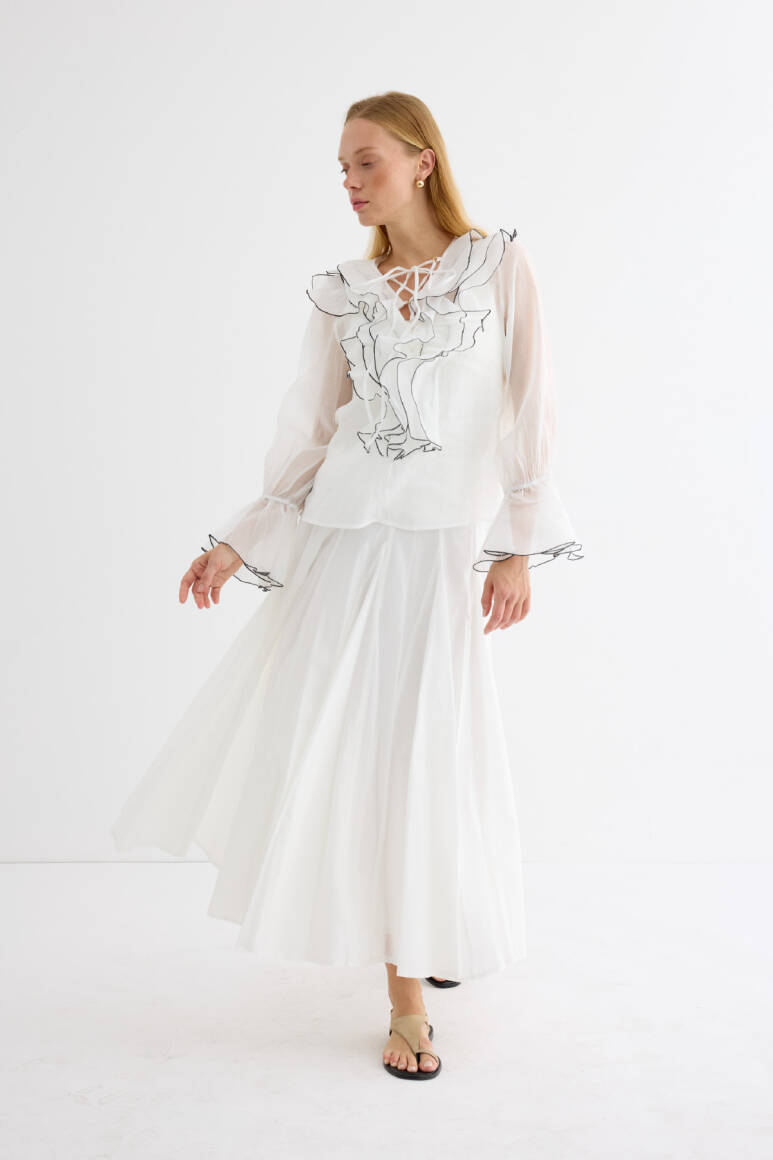7. Baskılı/Nakışlı Ürünleri Ütülemeden ve Yıkamadan Önce Ters Çevirin: Ürün bakımı süresince dikkat etmenizi önerdiğimiz bir diğer aşama ise baskılı, pullu ve nakışlı tasarımlara sahip ürünleri her işlem öncesi ters çevirmeniz olacak. Özellikle nakışlı ve işlemeli tasarımlar, genellikle el işçiliği kullanılarak hazırlanmaları sebebiyle ekstra hassaslık gerektirir. Ters çevirme yöntemi ile ürünlerinizin rengini ve desenini korurken işlemler esnasında oluşabilecek fiziksel hasarlara karşı da önlem almış olursunuz. Ters çevirme adımı ile ürünleriniz tasarımları ve dokuları değişmeden, ilk günkü gibi kullanabileceğiniz şekilde dolabınızda yer almaya devam edecektir.