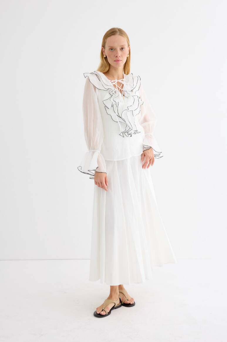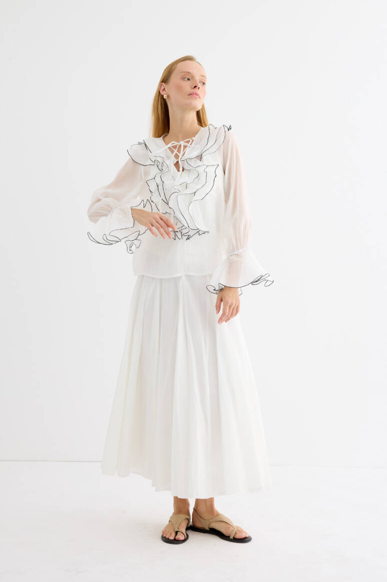 Romantik bir dokunuşla stilini hareketlendir. pembe bluz, fırfır detayları ve balon kollarıyla her kombine feminen bir hava katıyor. Hafif şifon kumaşı ve bağlamalı yaka detayı, modern ve zarif bir duruş sunar.