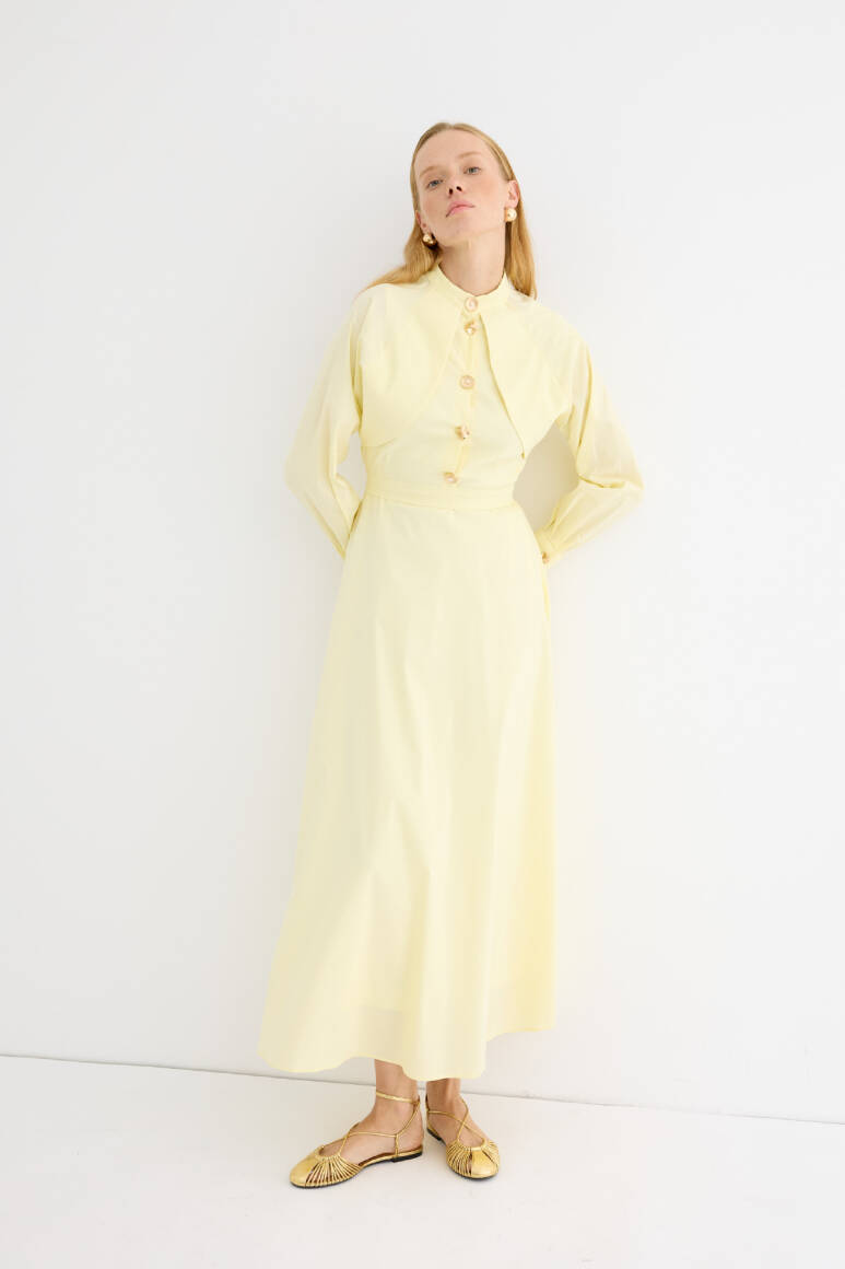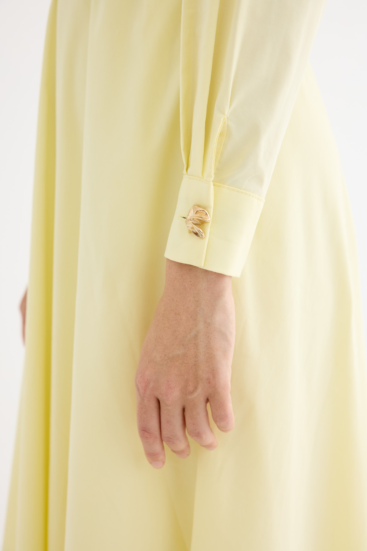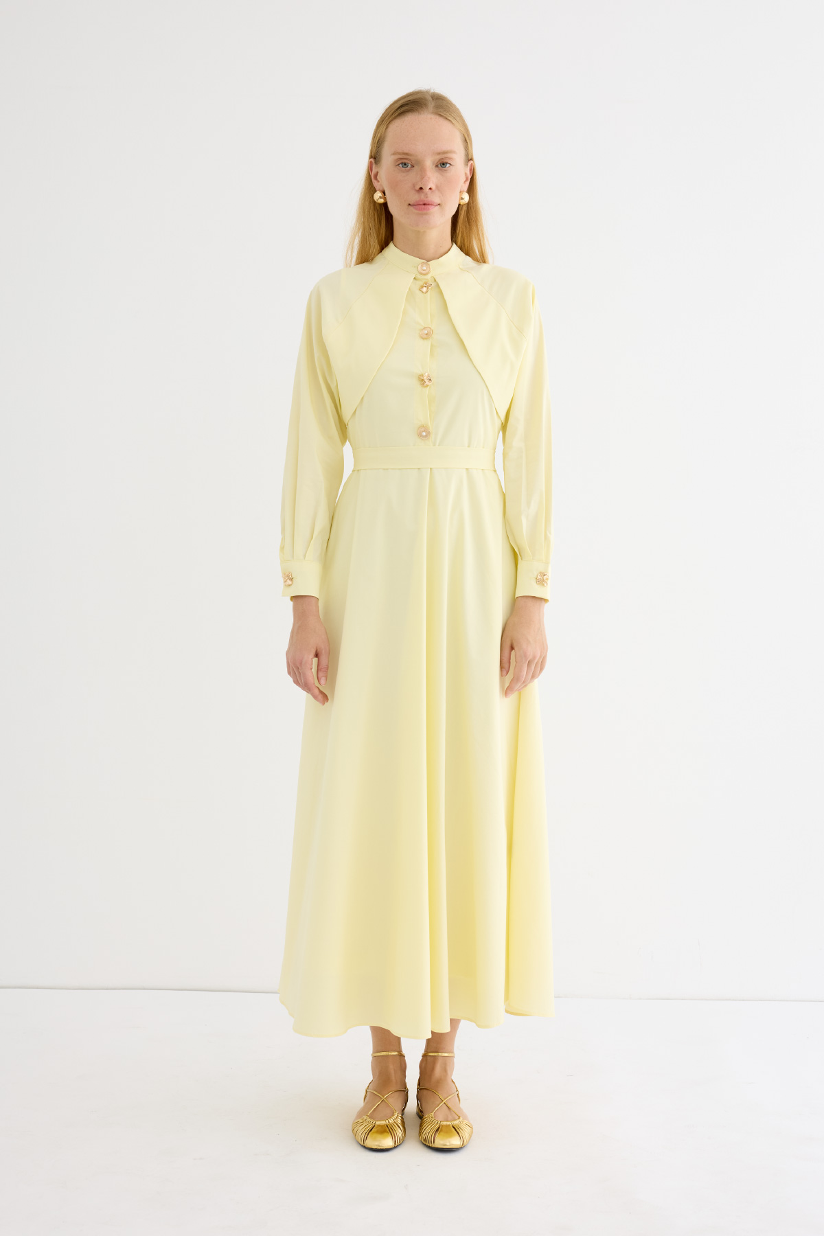 Bilek kısmında manşet ve düğme detayı, ön kısmında kapama detaylı dekoratif düğmeler, dik yaka, uzun kollu