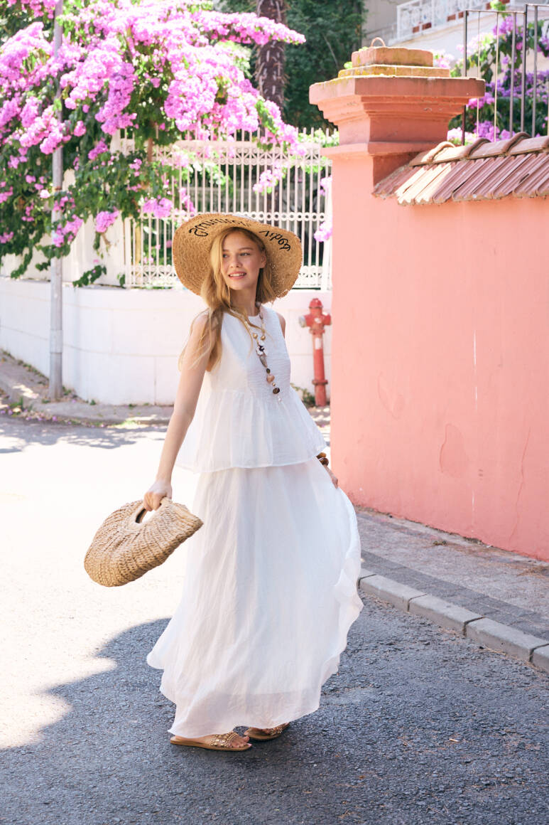 İki parçadan oluşan etekli takım.