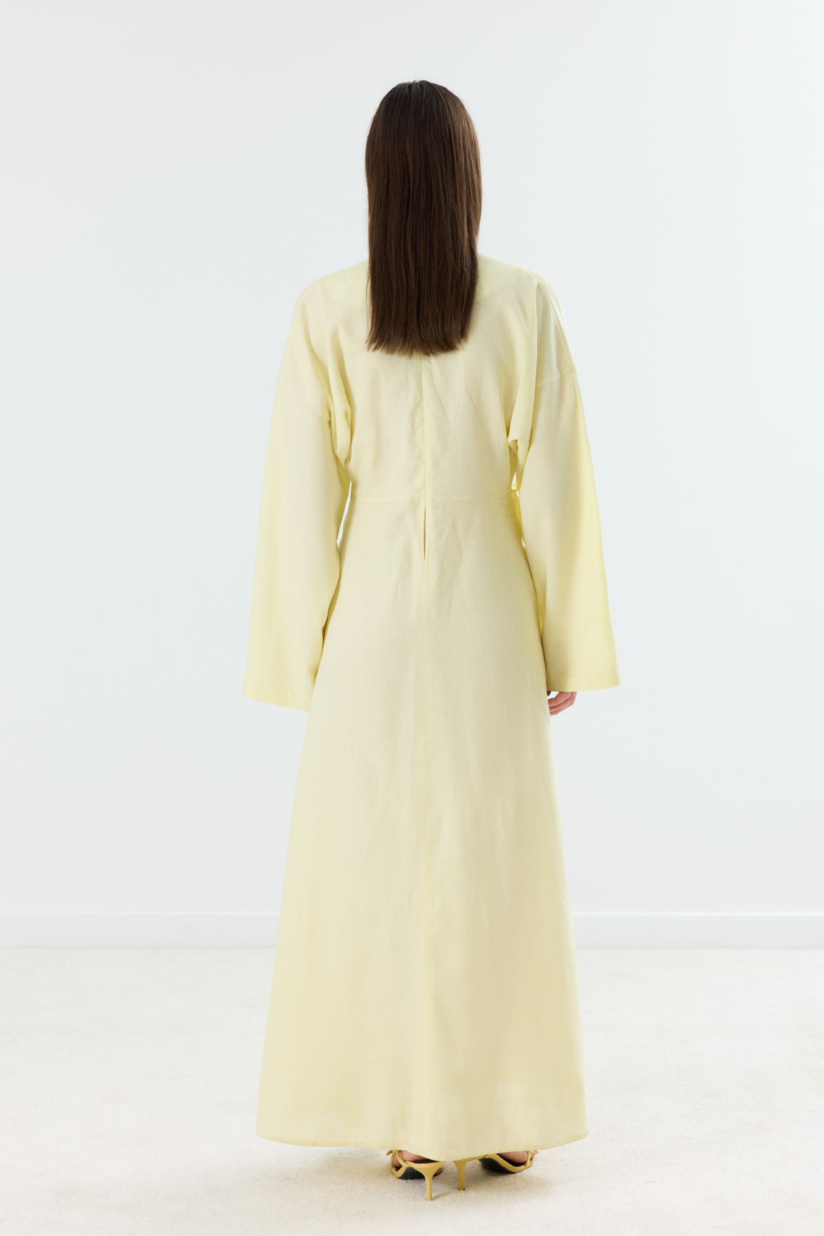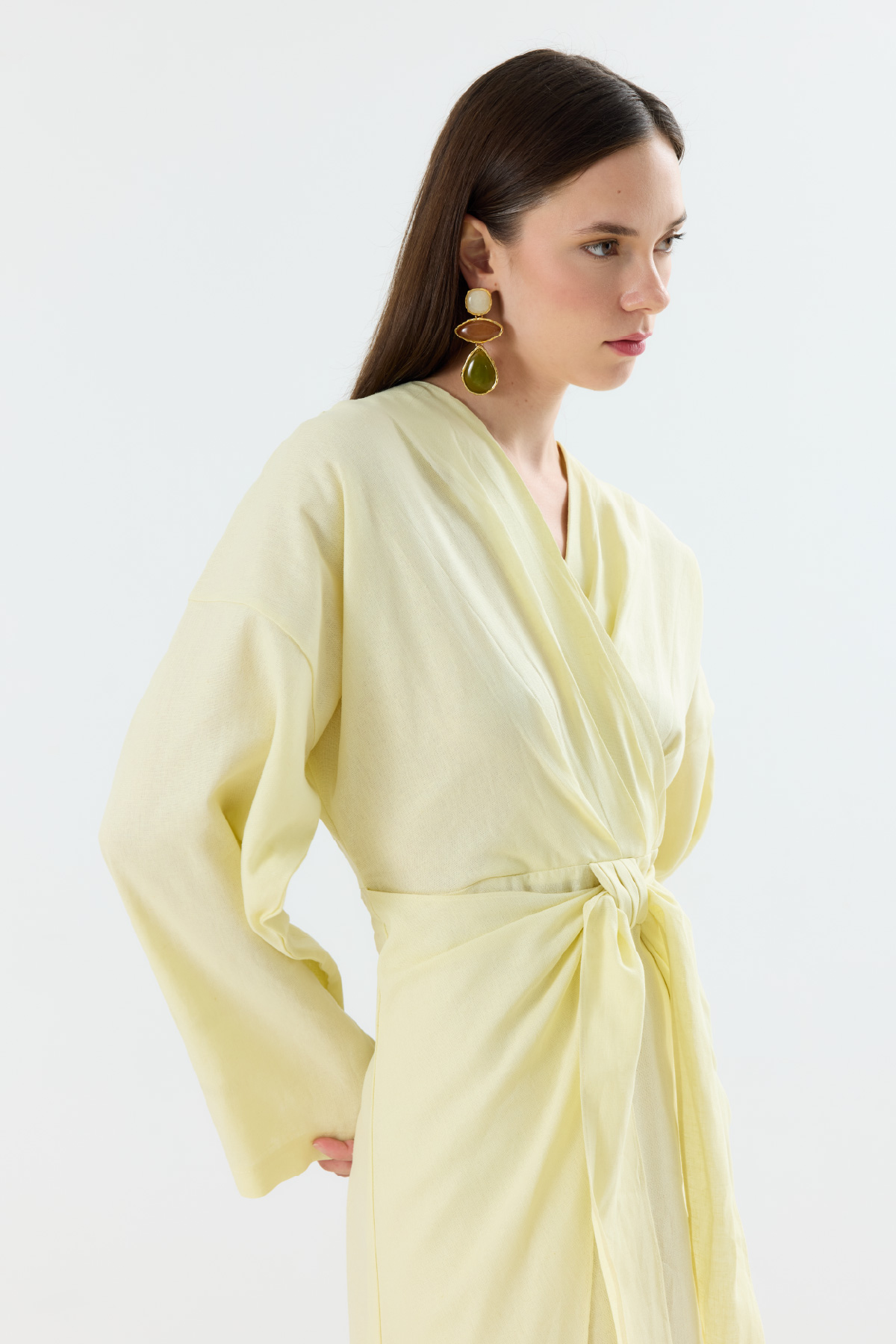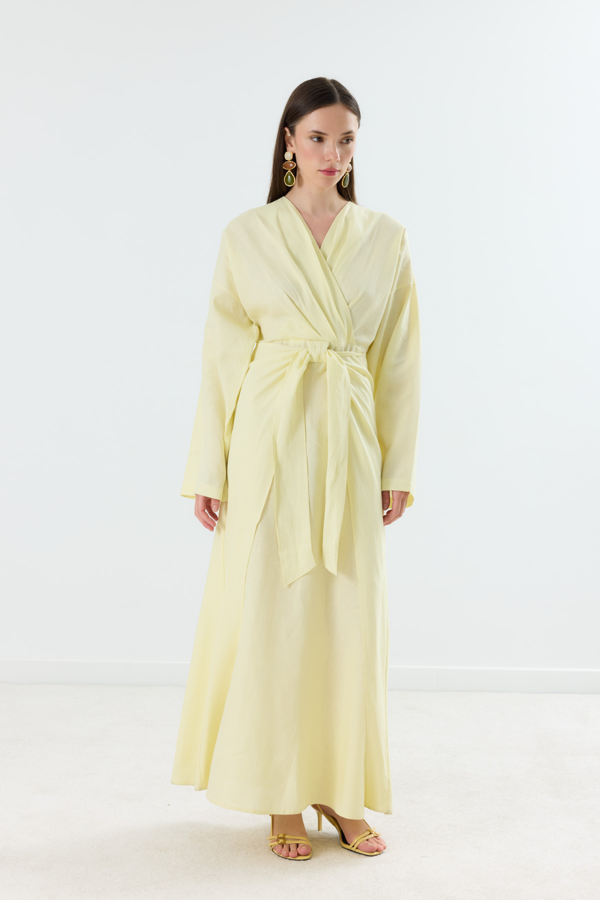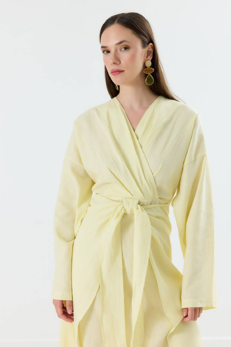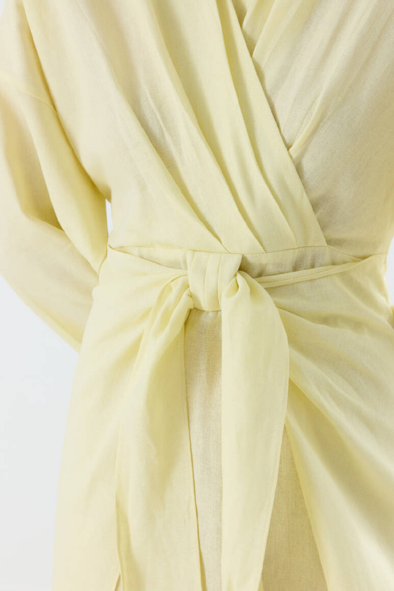 Mirella Kruvaze Bağlamalı Keten Elbise Sarı - 8
