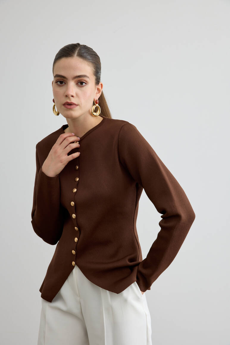 Noi Belden Oturtmalı Triko Hırka Acı Kahve - 1