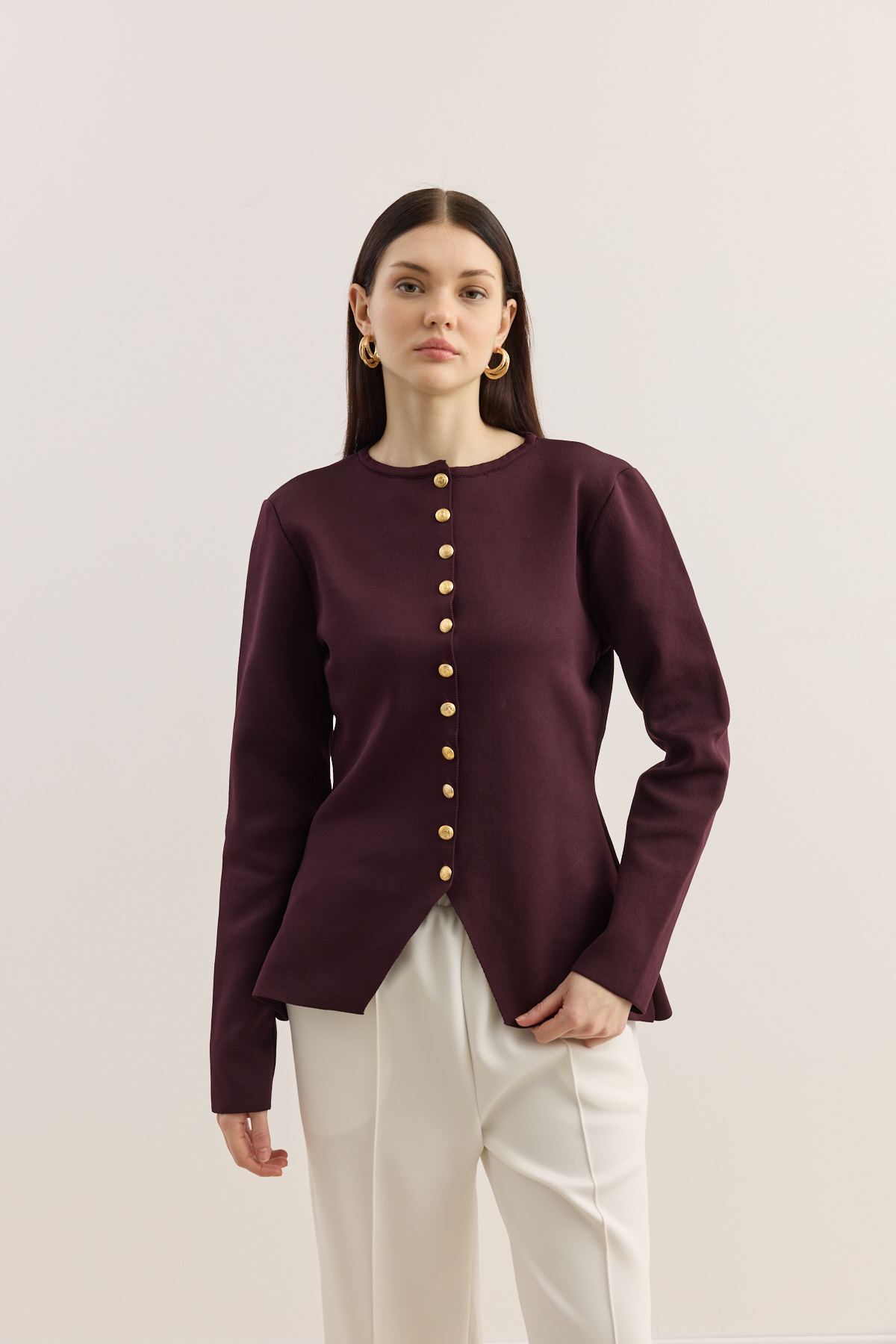 Noi Belden Oturtmalı Triko Hırka Burgonya - 1